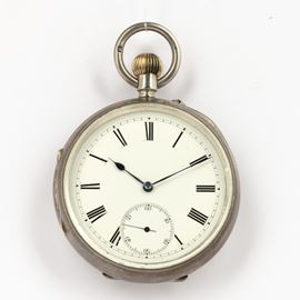 Orologio da tasca inglese, cassa in argento, quadrante in smalto bianco, movimento con scappamento ad ancora