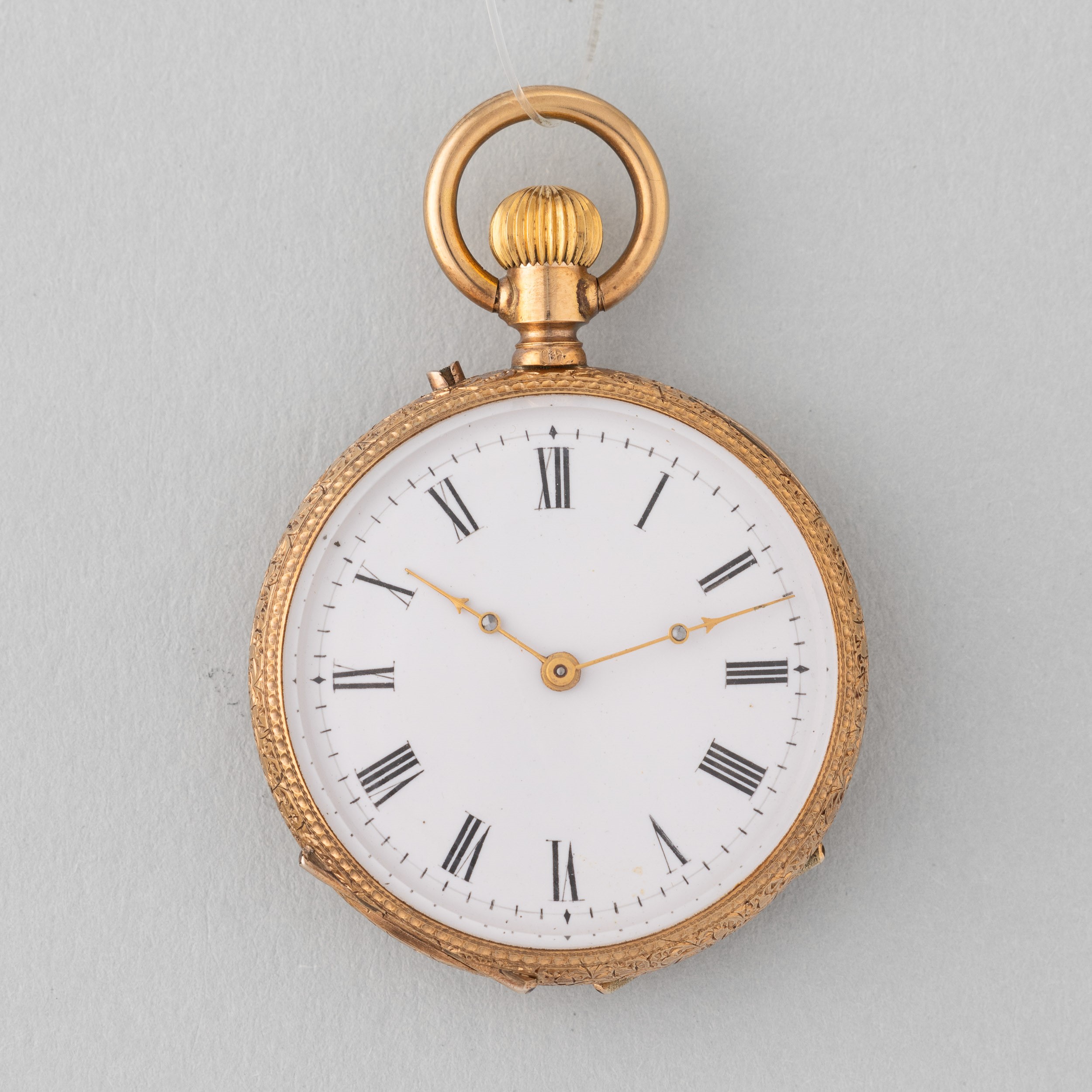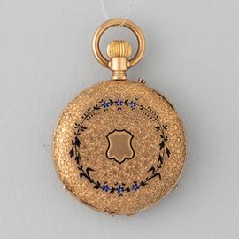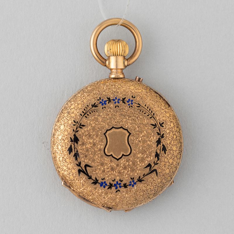 Cassa in oro 14 k, movimento con scappamento a cilindro, 1880/1890, quadrante in smalto bianco