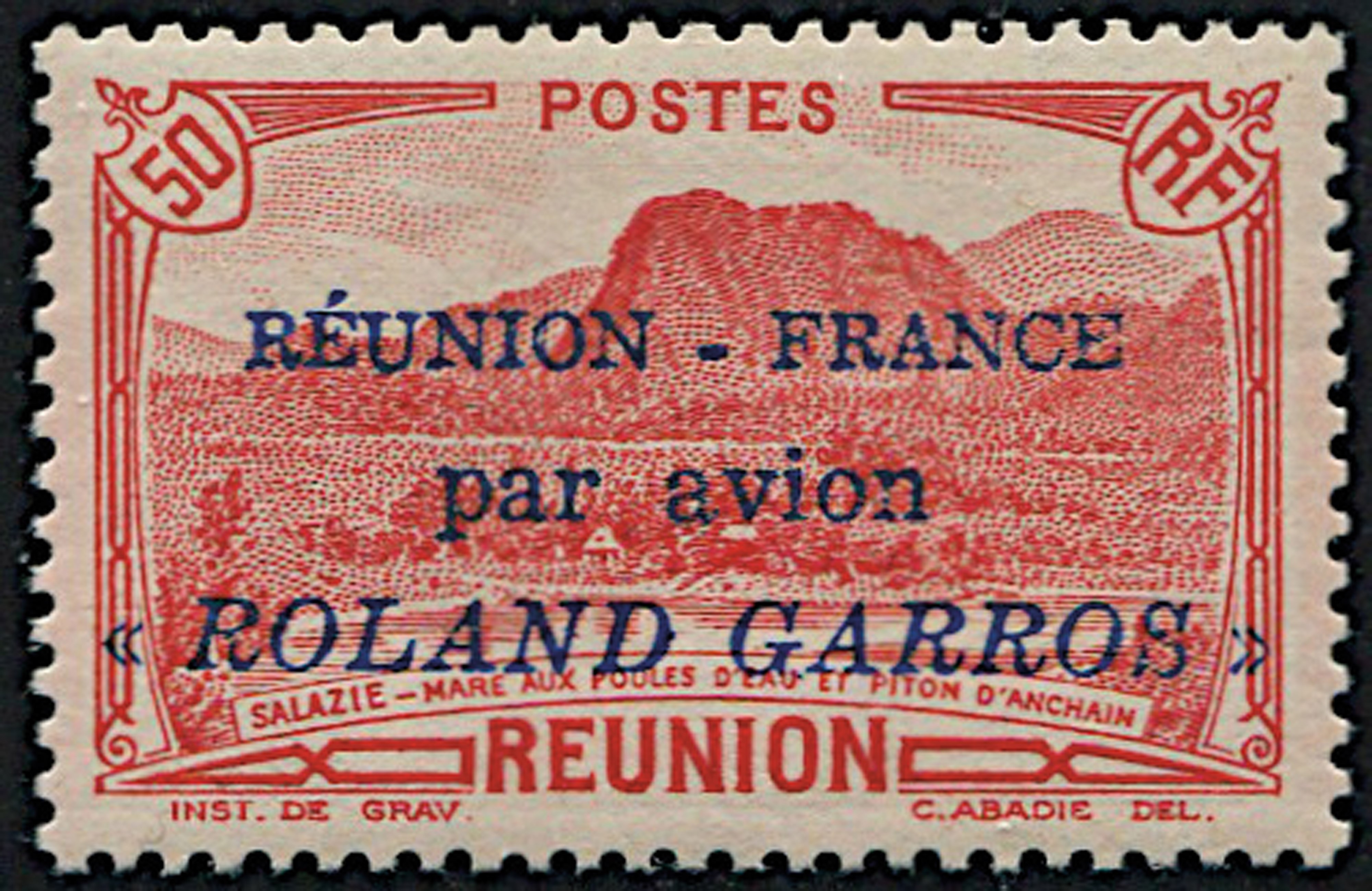 1937, Reunion, air post, ovpt. “Reunion-France/par avion/ ROLAND GARROS”