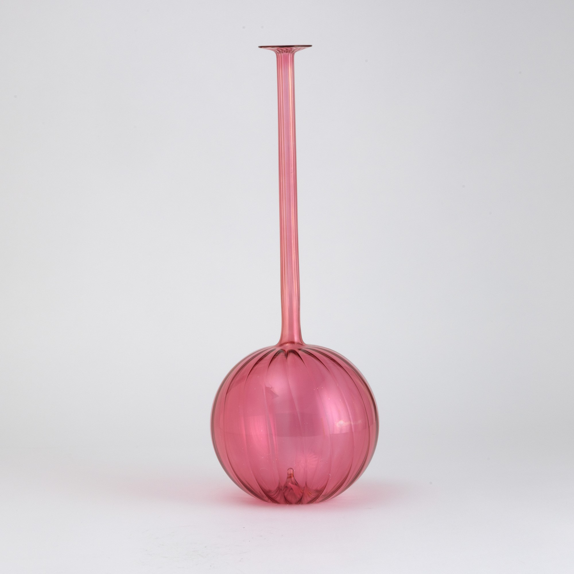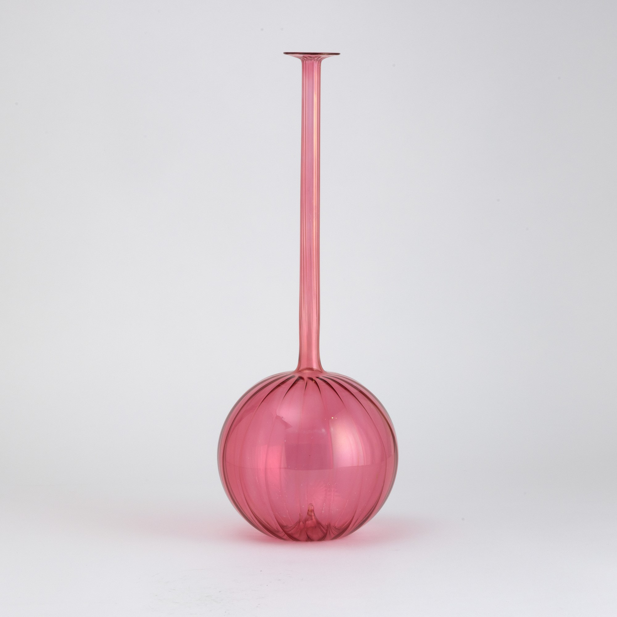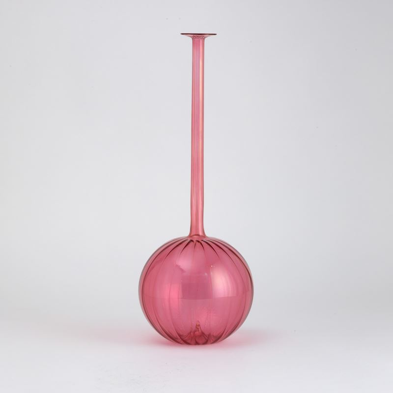 An epoxydic blown glass vase with a ribbed decor