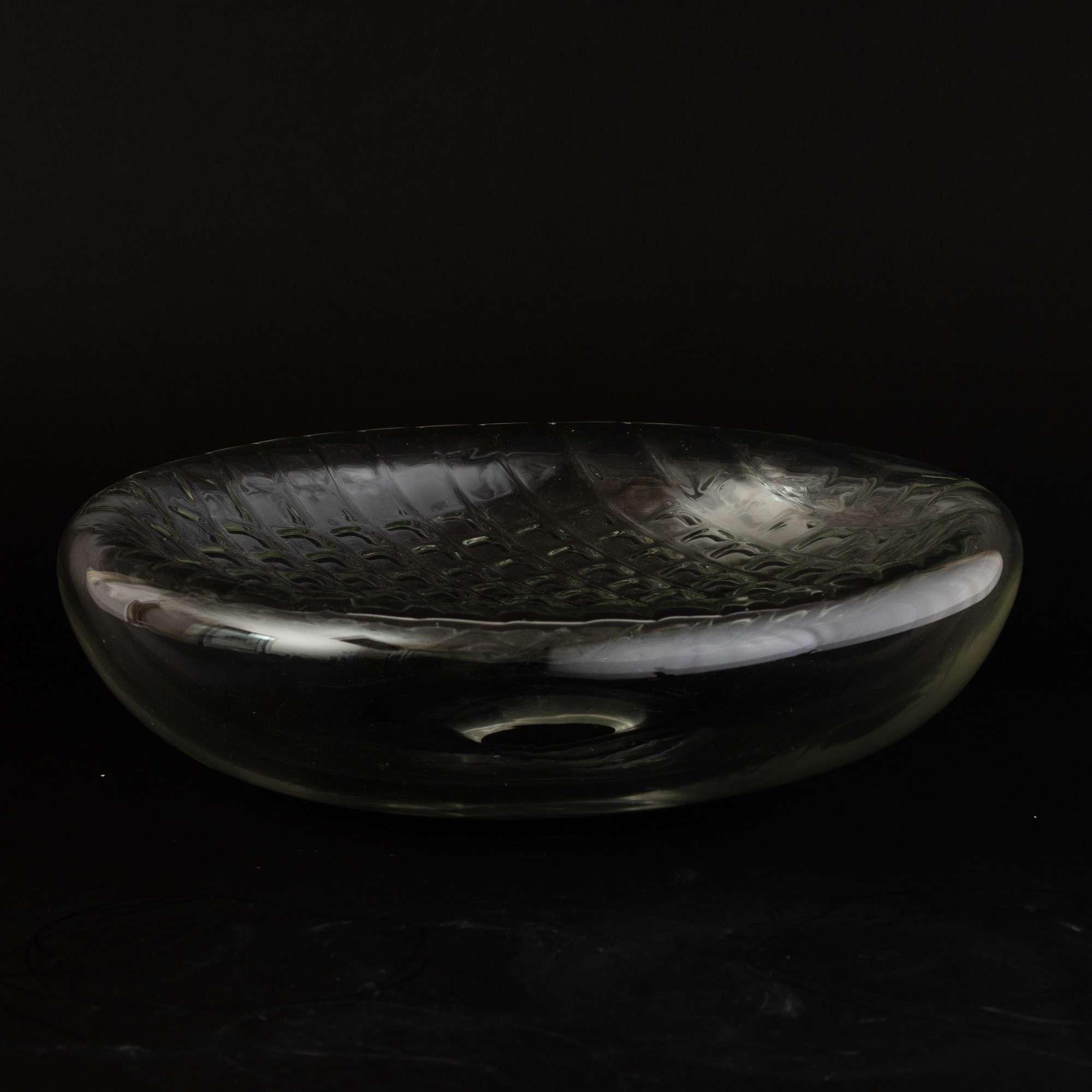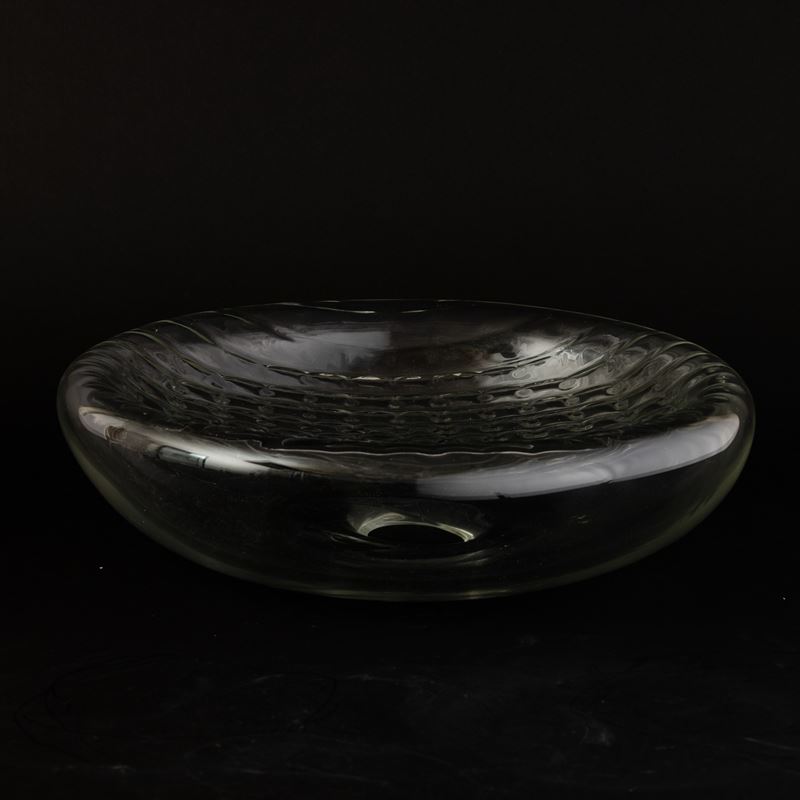 A moulded glass centrepiece. Etched signature Barbini Murano