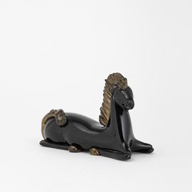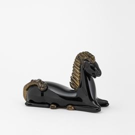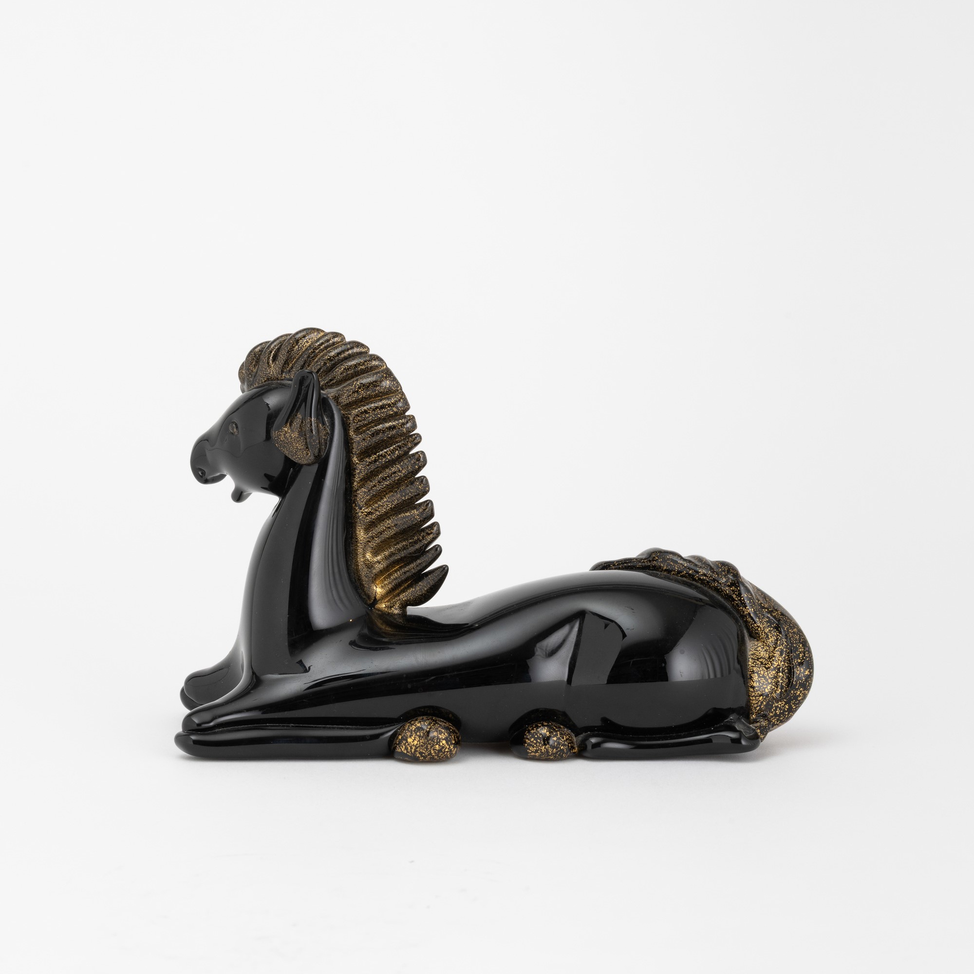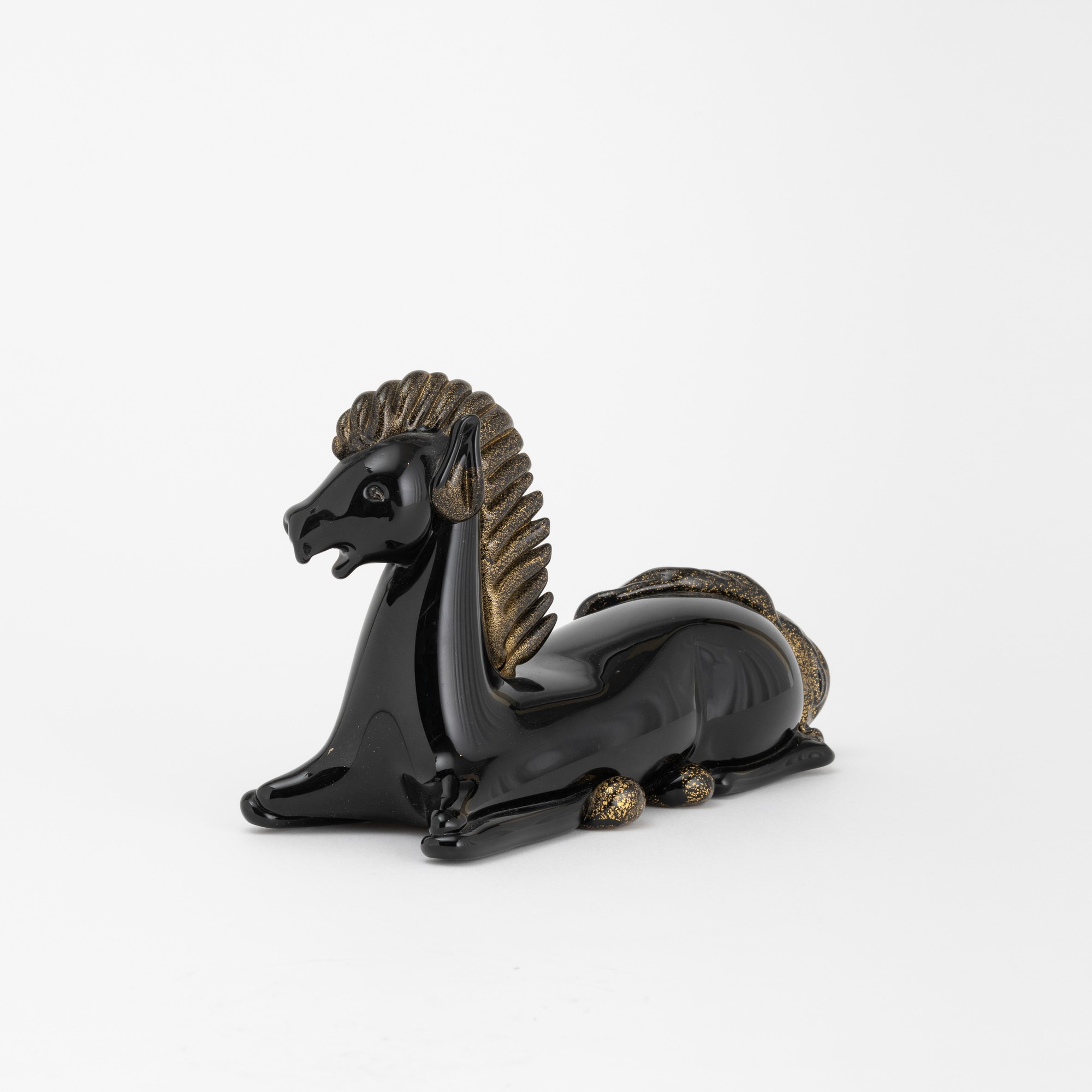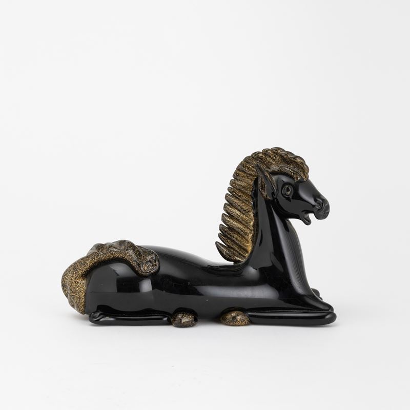 Based on a design by N. Martinuzzi. A heat-moulded glass sculpture of a horse with a gold leaf decor