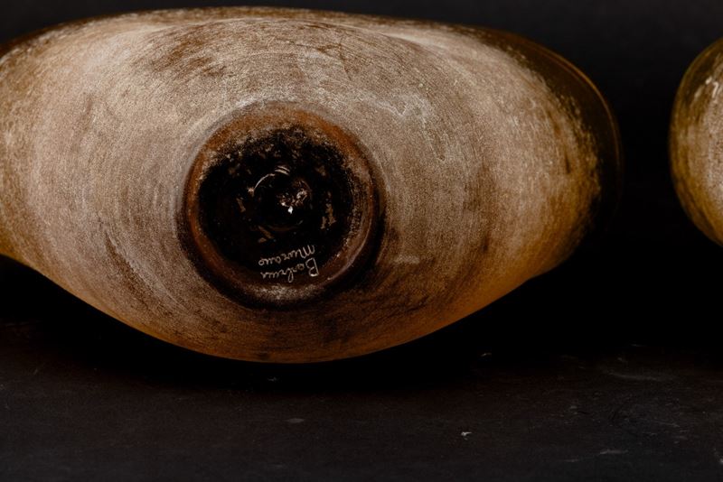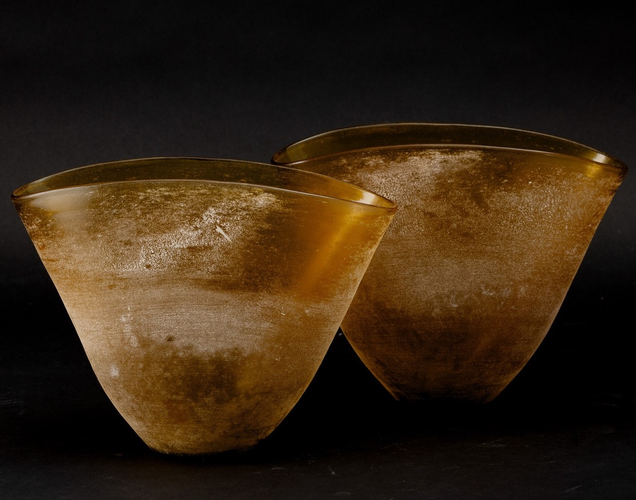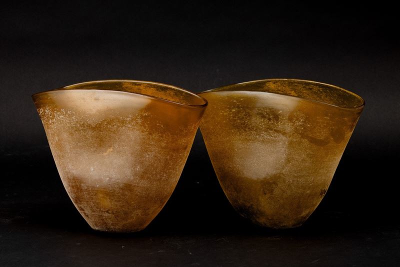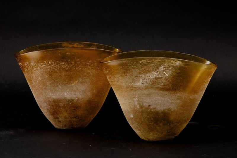 Two blown glass vases in scavo technique. Engraved signature on the base