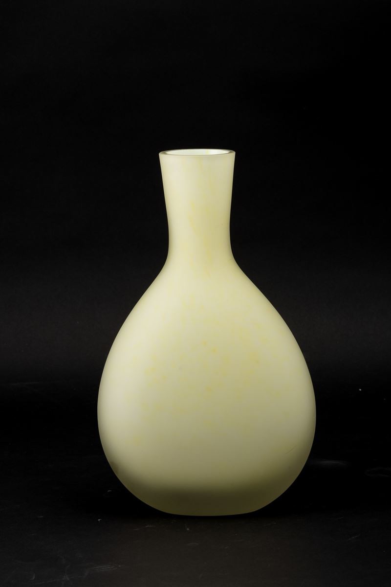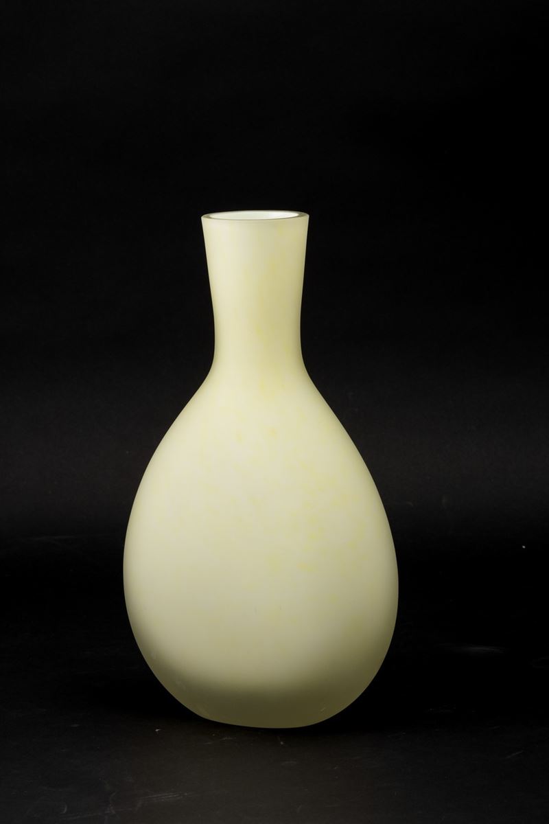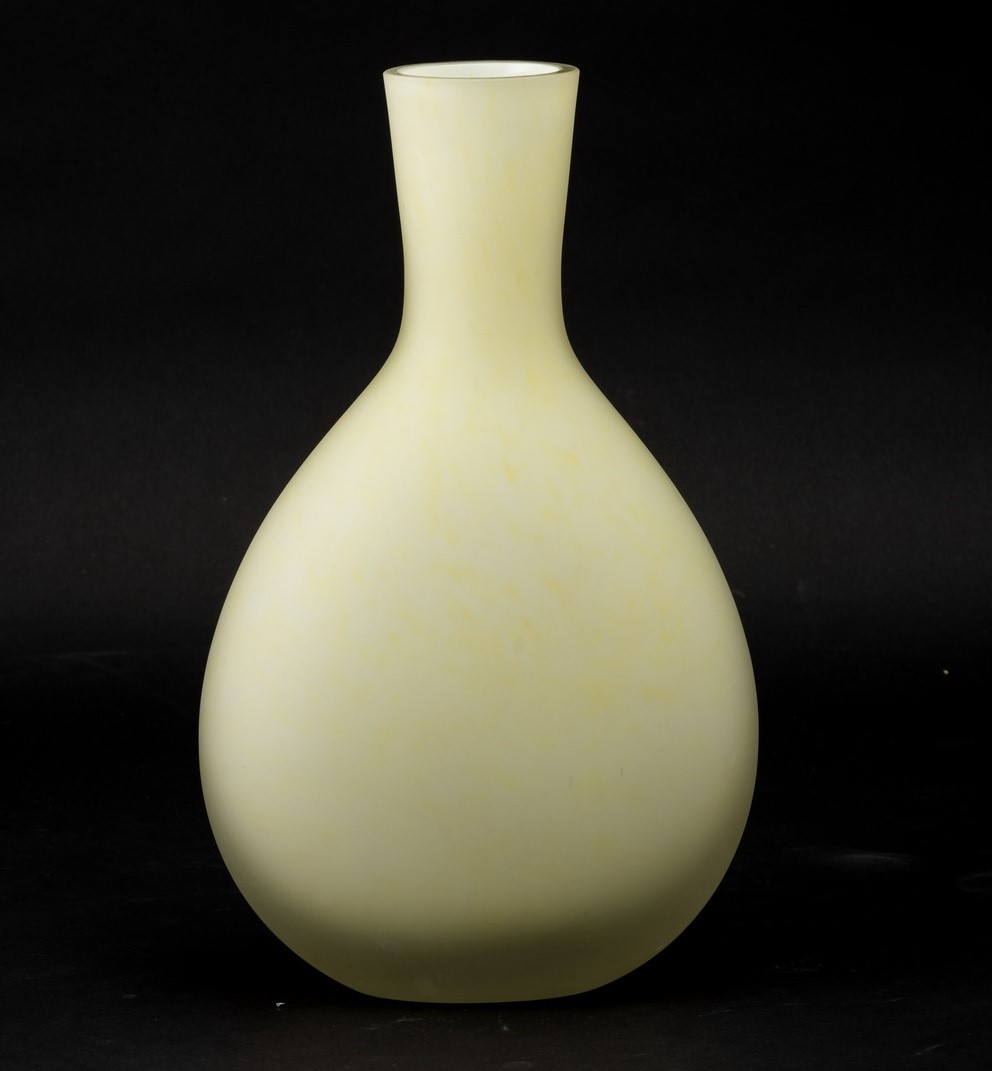 A heavy sommerso glass vase with a sanded surface. Signed on three lines