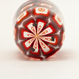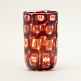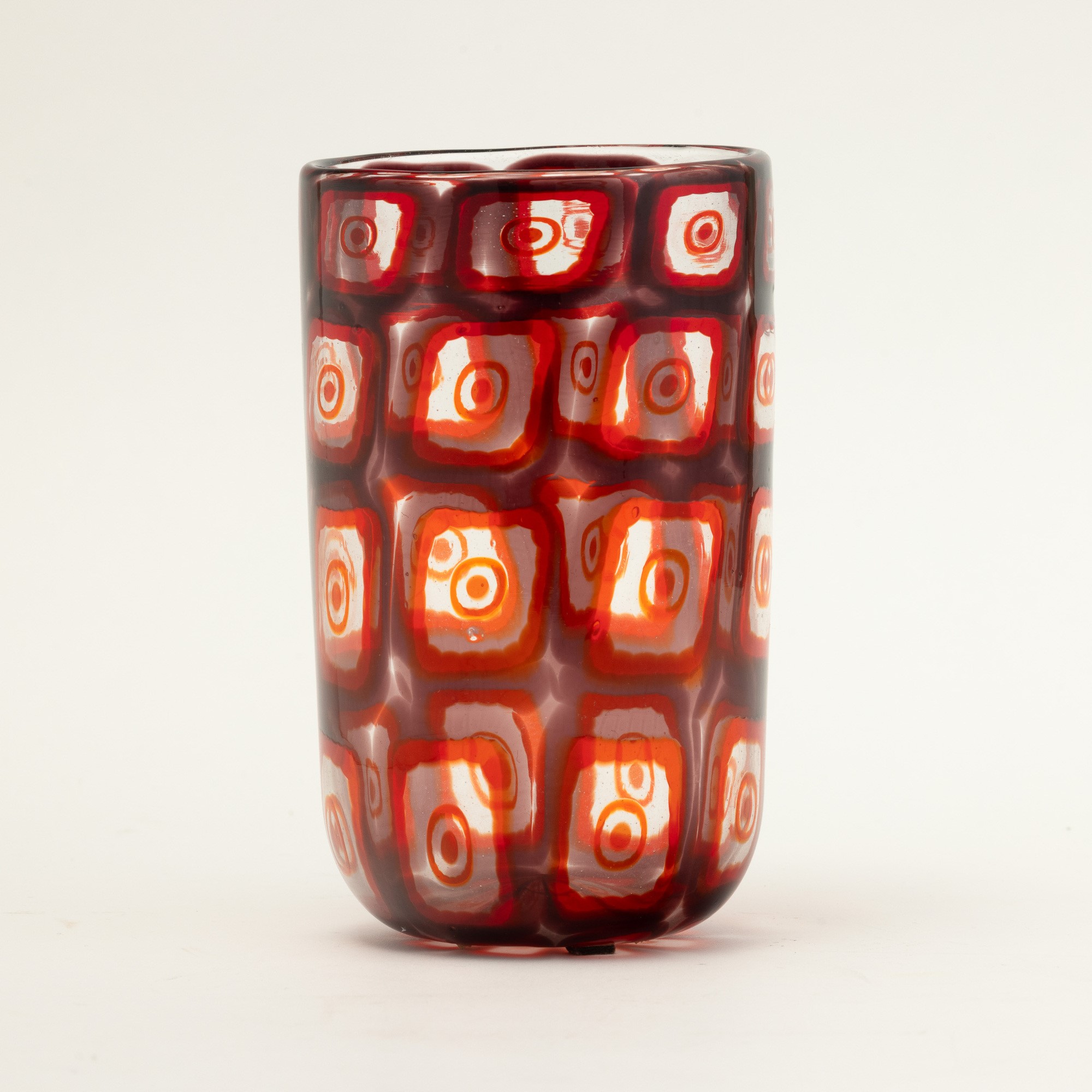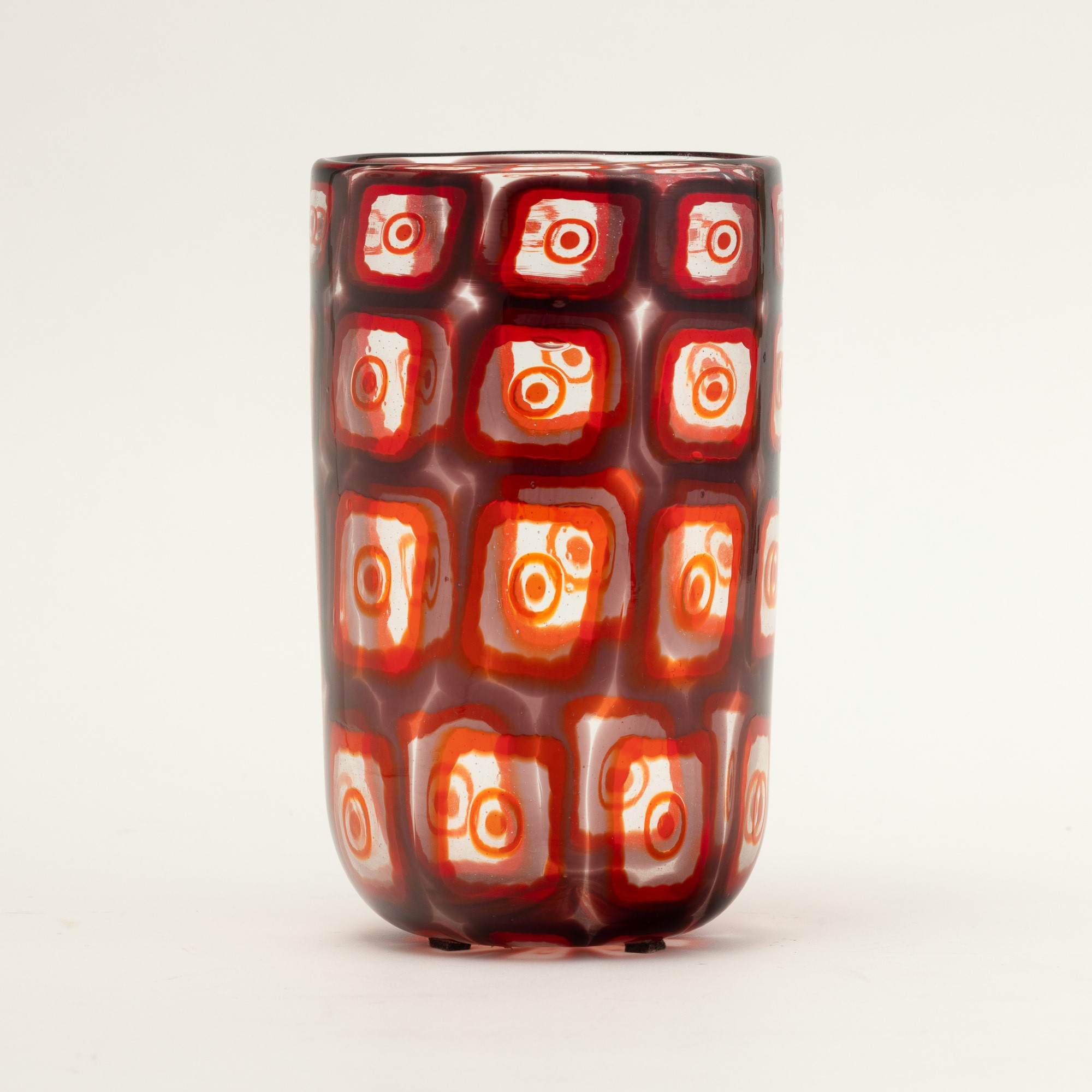 In the style of E. Barovier. A blown glass vase with a decor of large polychrome murrine