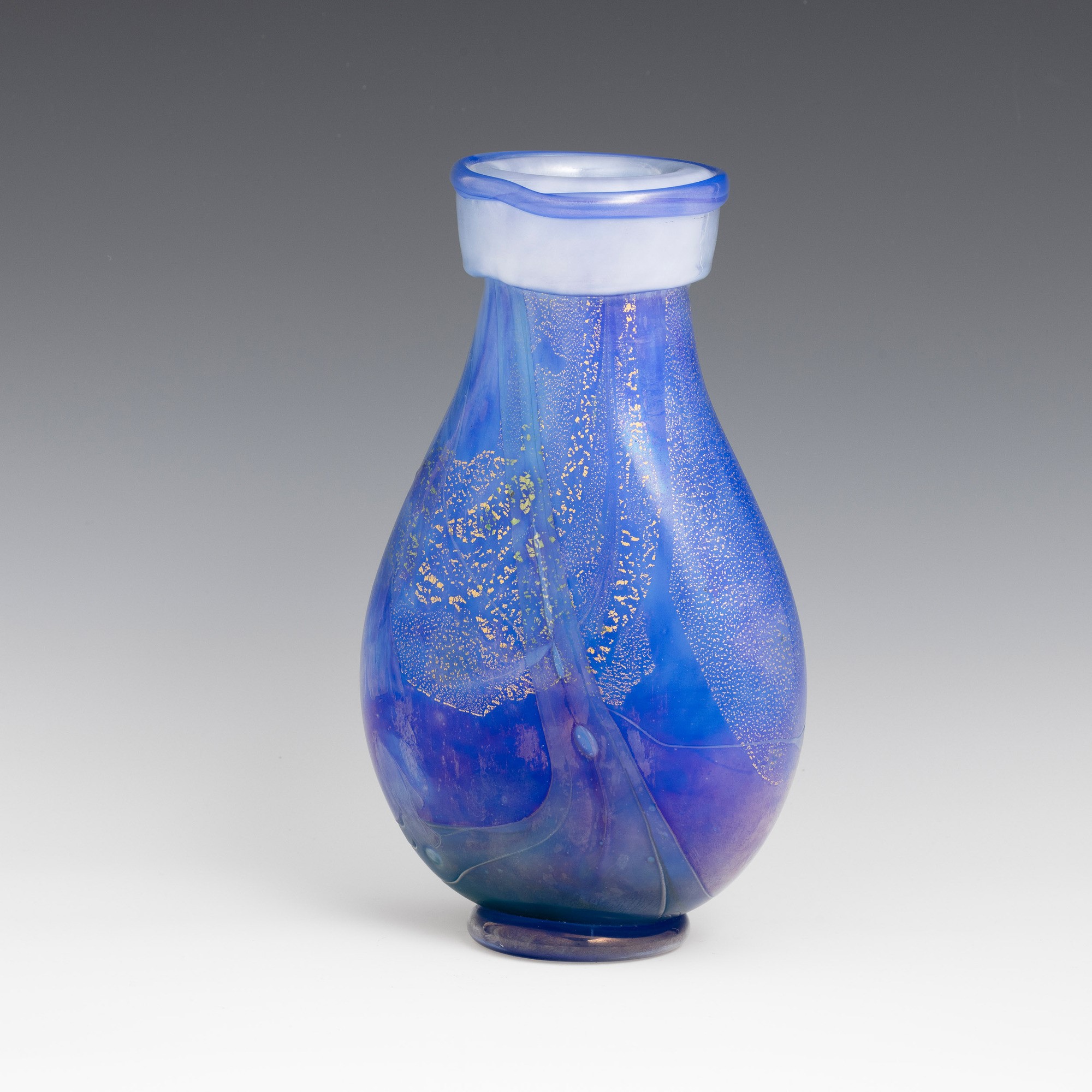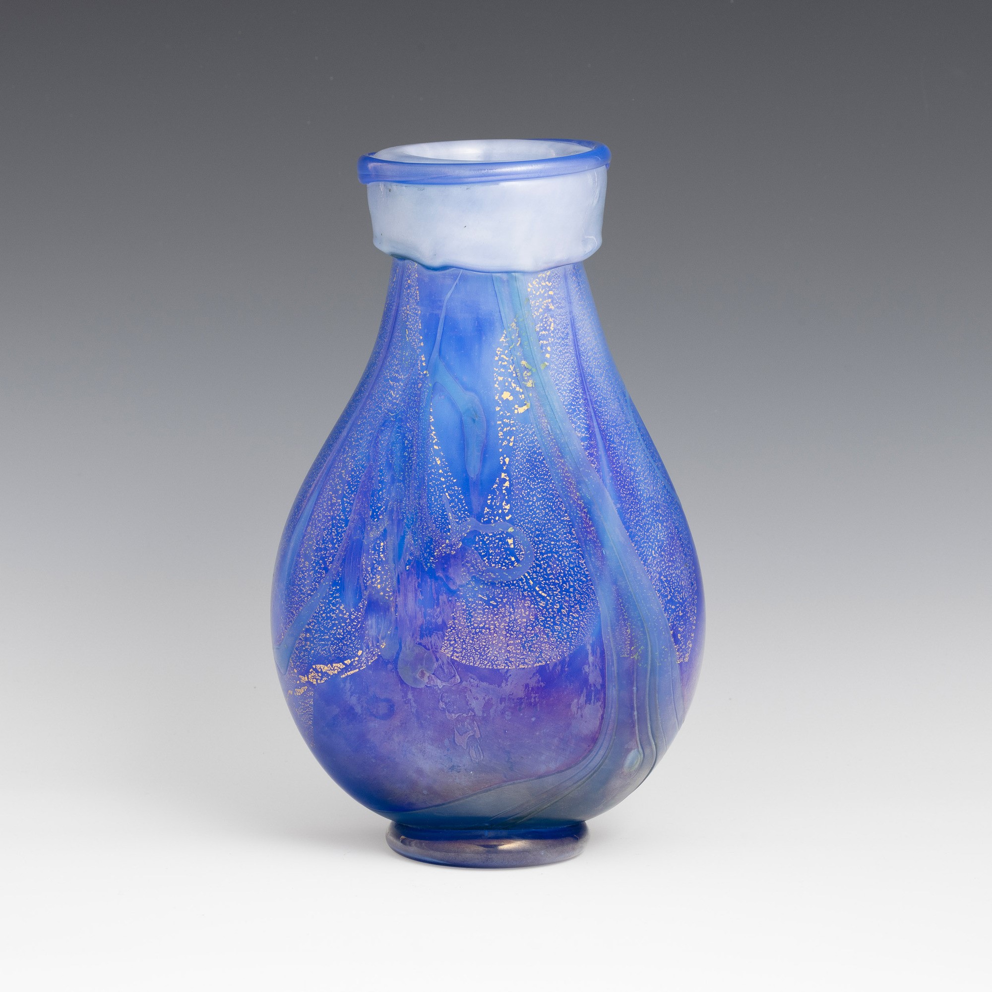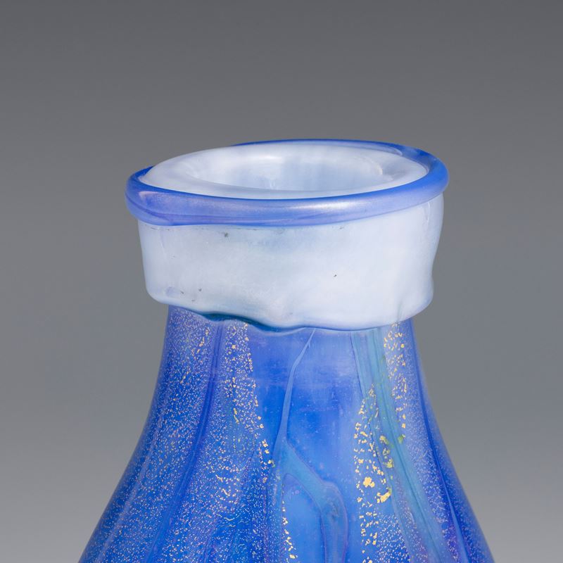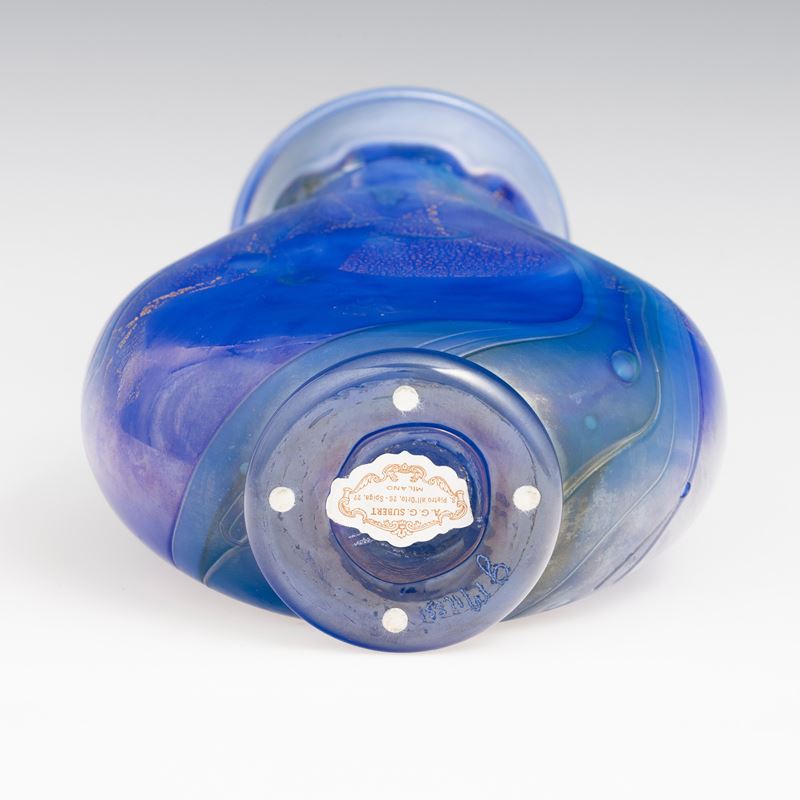 A sommerso glass vase with a gold leaf decor. Engraved signature G. Milesi and retailer's label