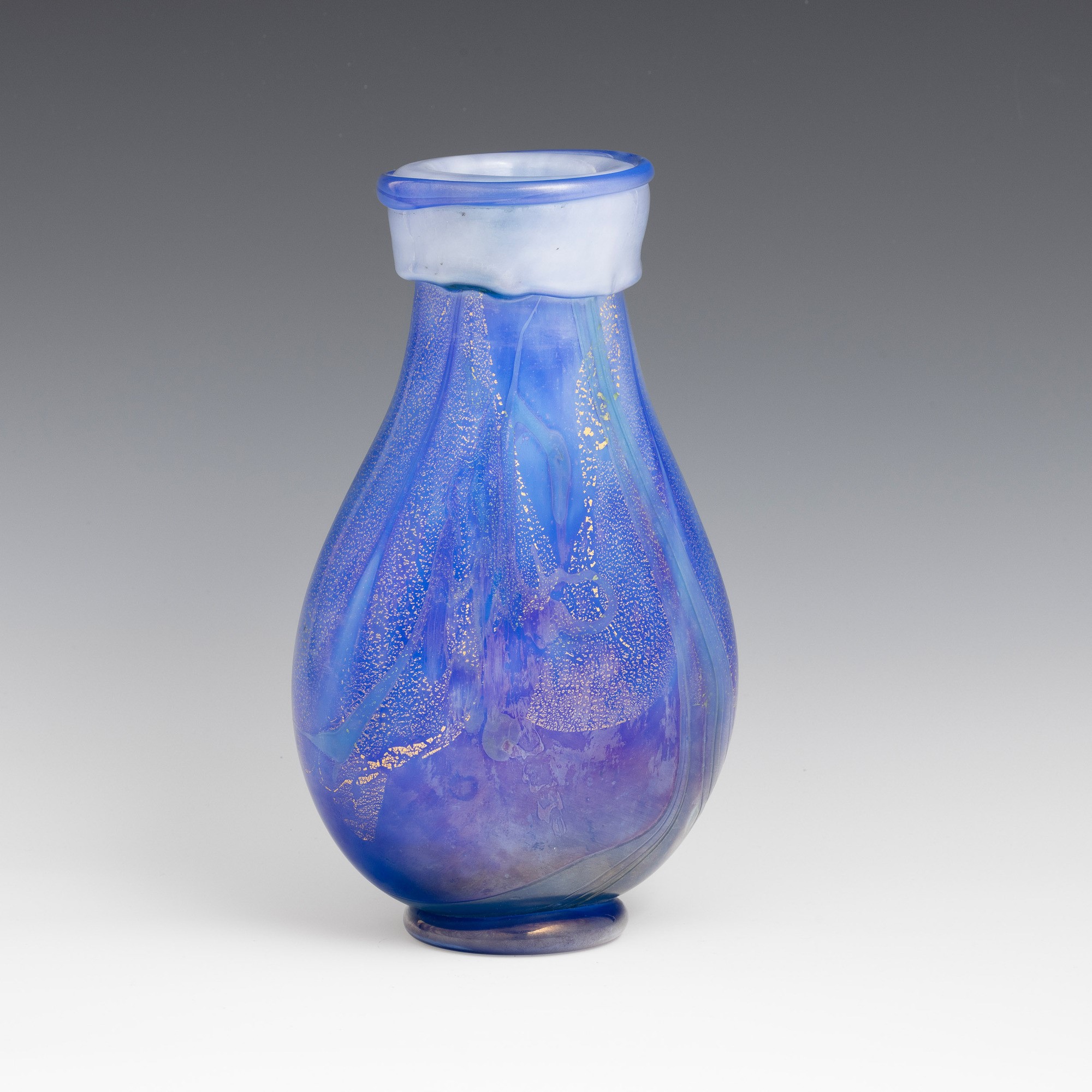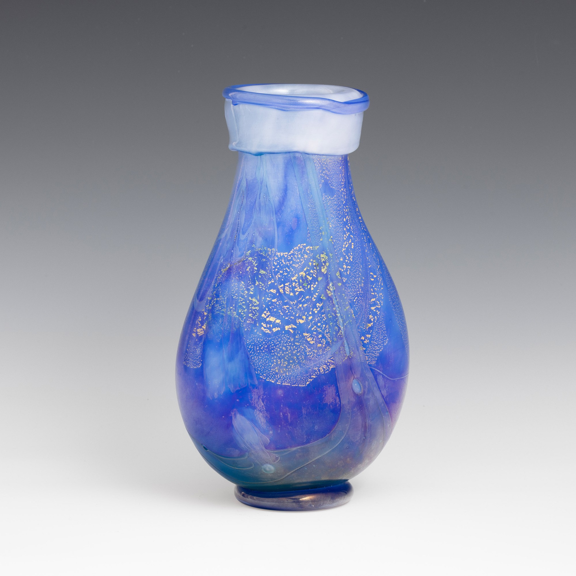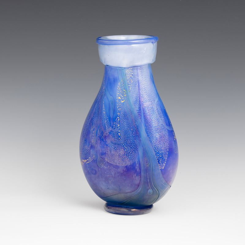 A sommerso glass vase with a gold leaf decor. Engraved signature G. Milesi and retailer's label