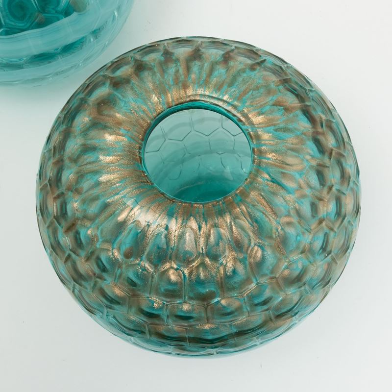 Two large blown glass vases with a cane decor and aventurine powders