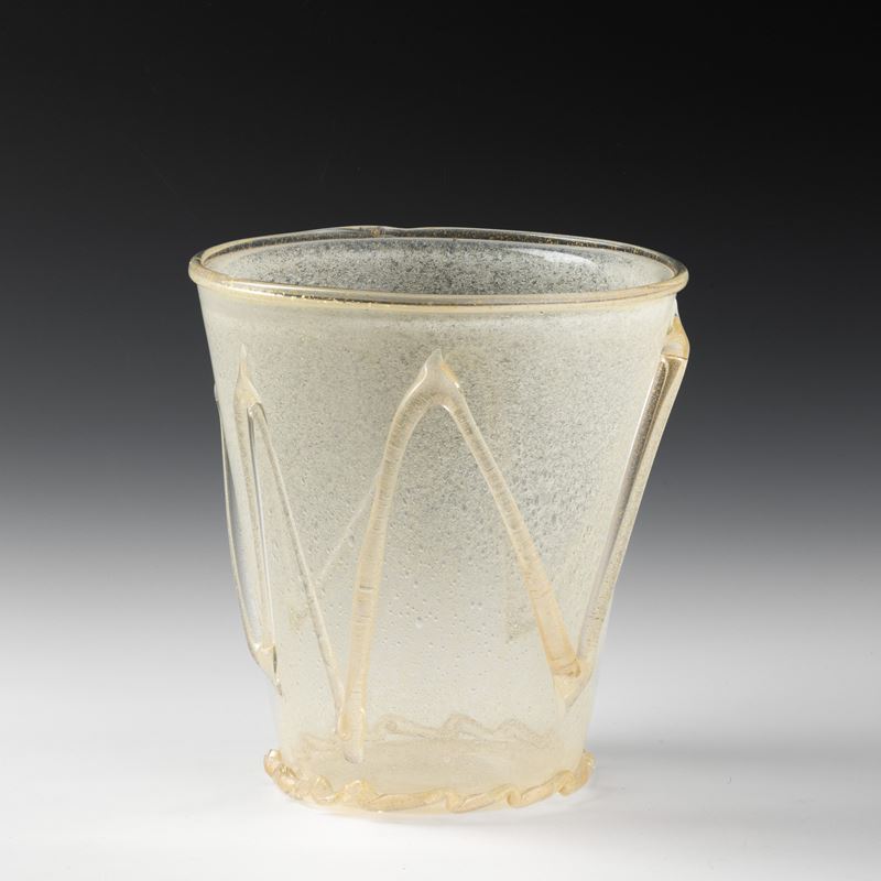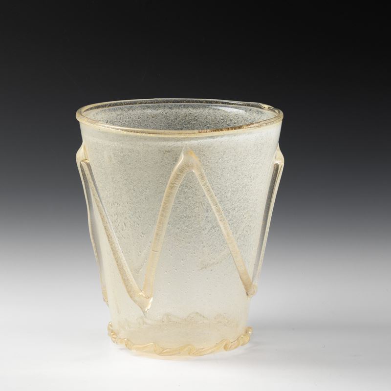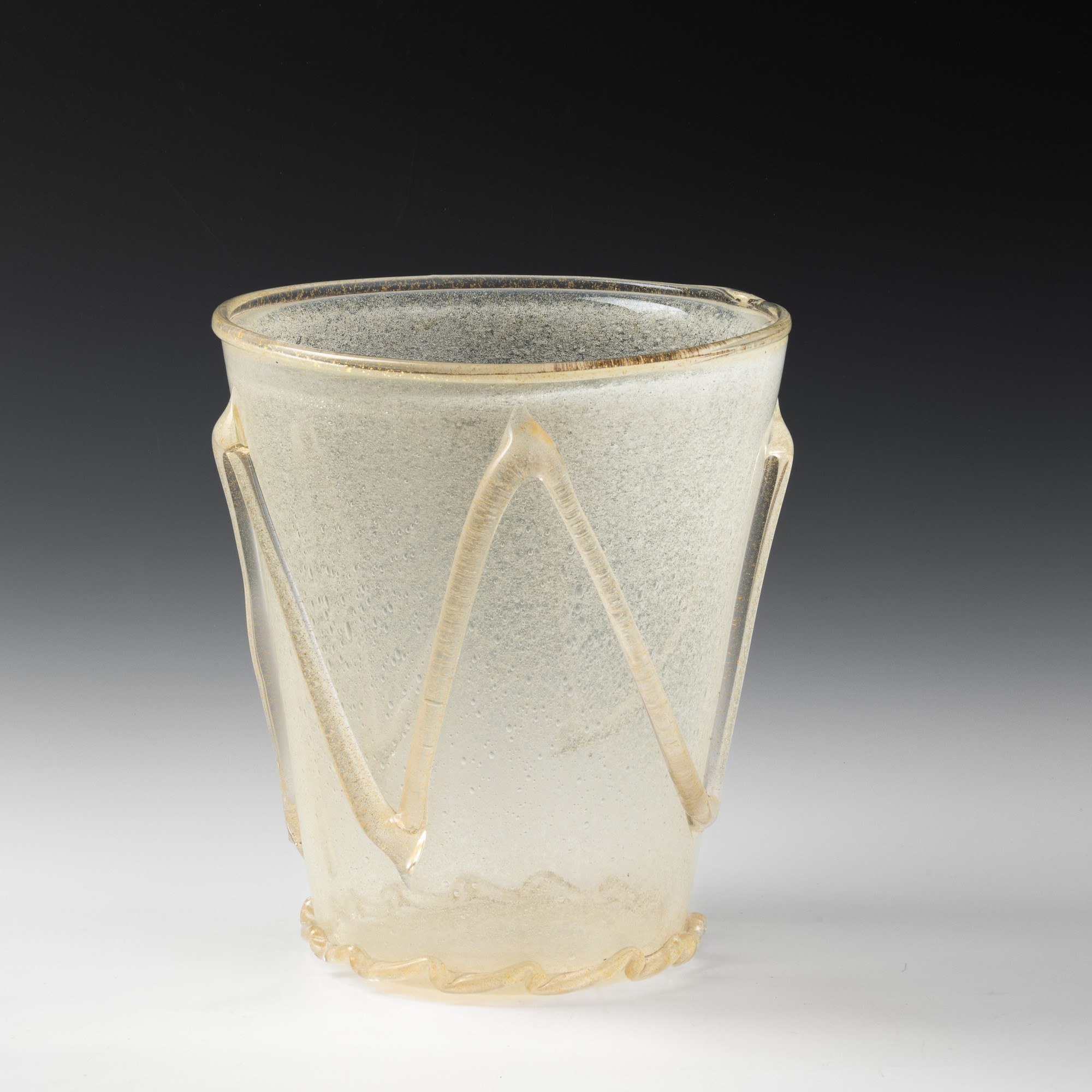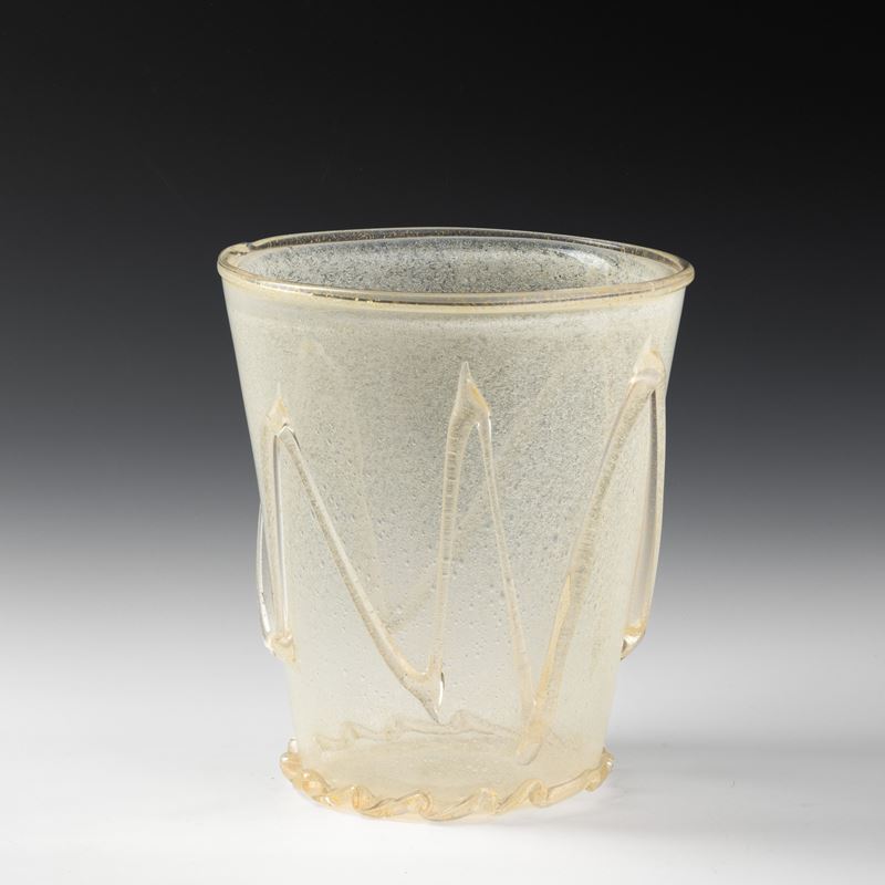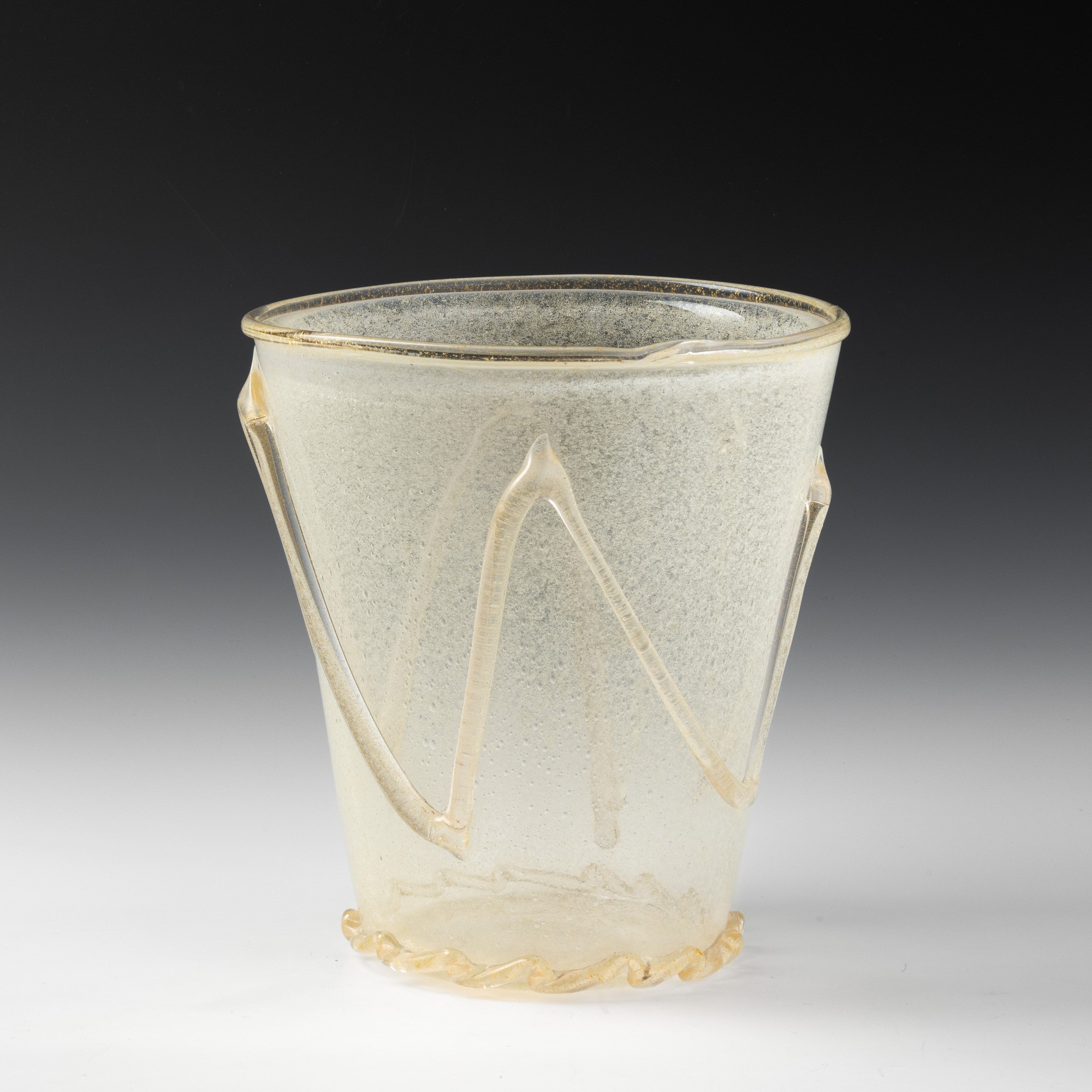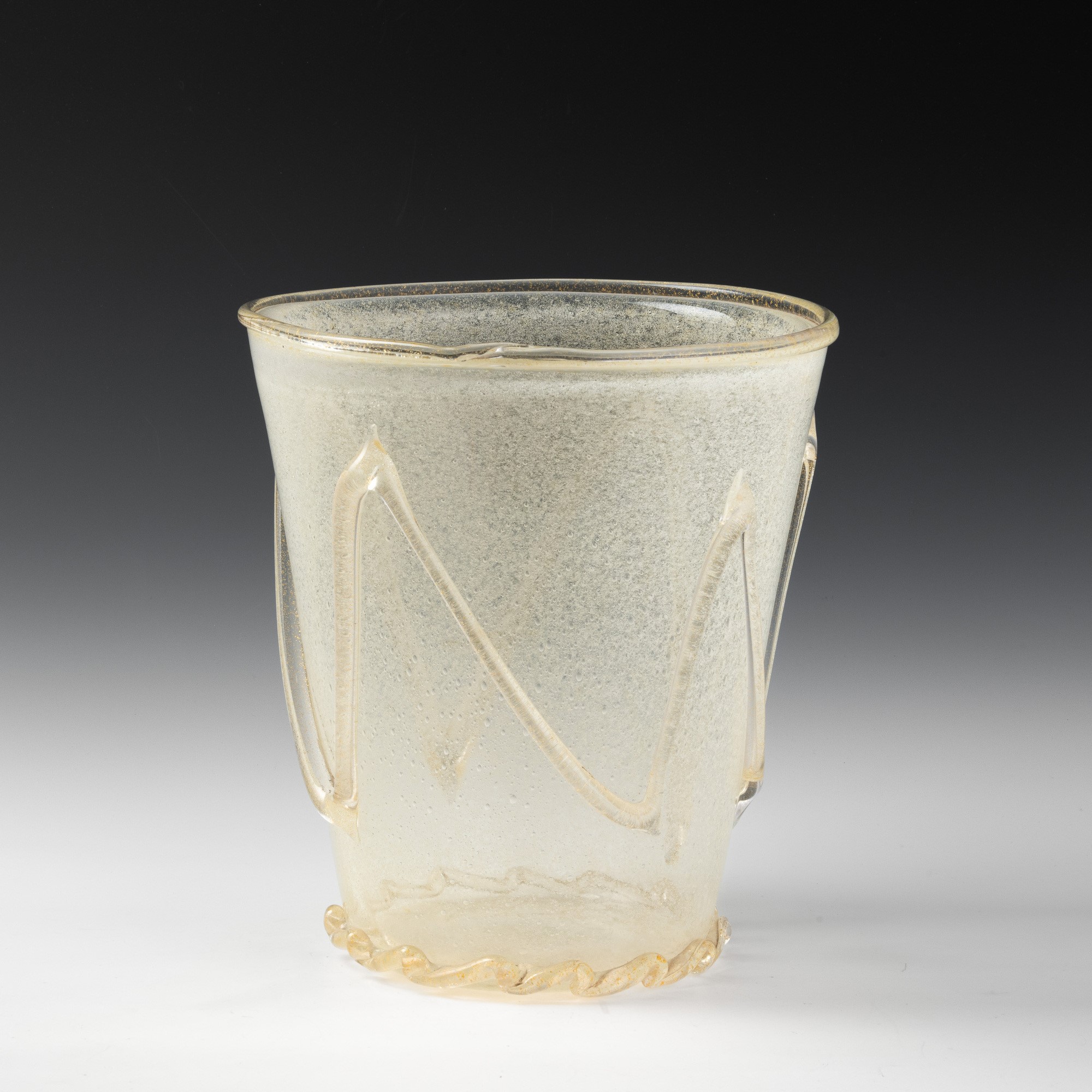 A large sommerso glass vase with a powder decor and applied details in blown glass and gold leaf