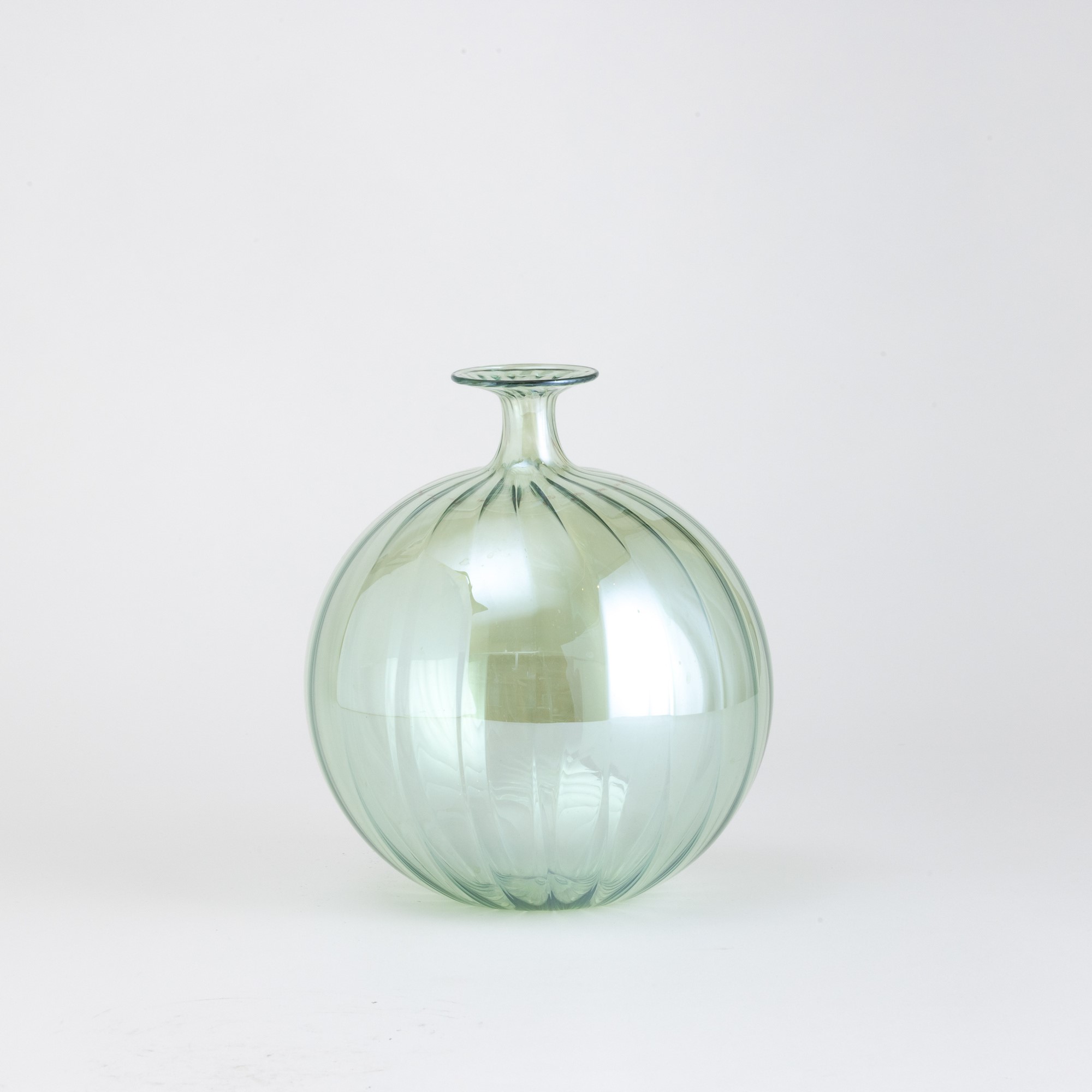 An epoxydic blown glass vase with a ribbed decor
