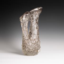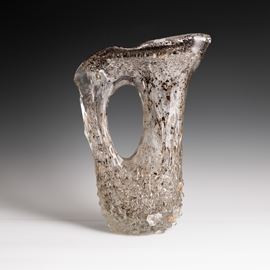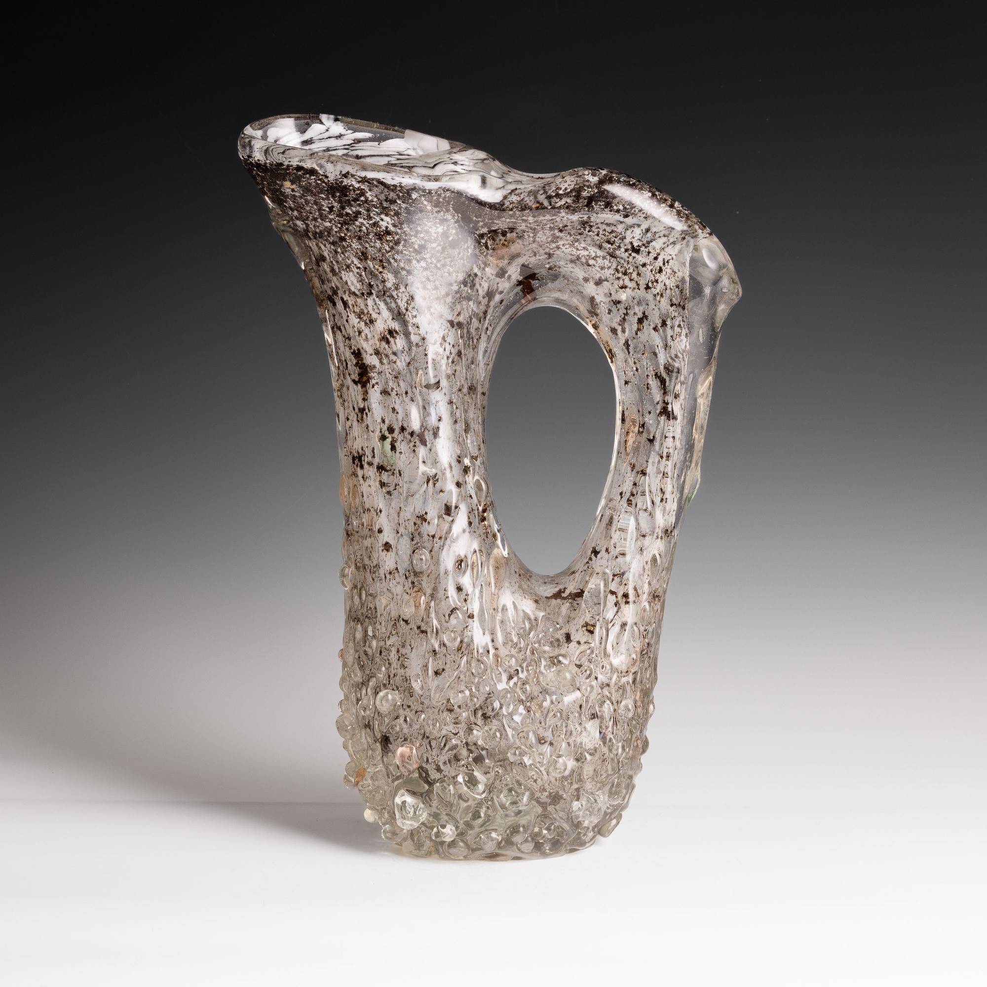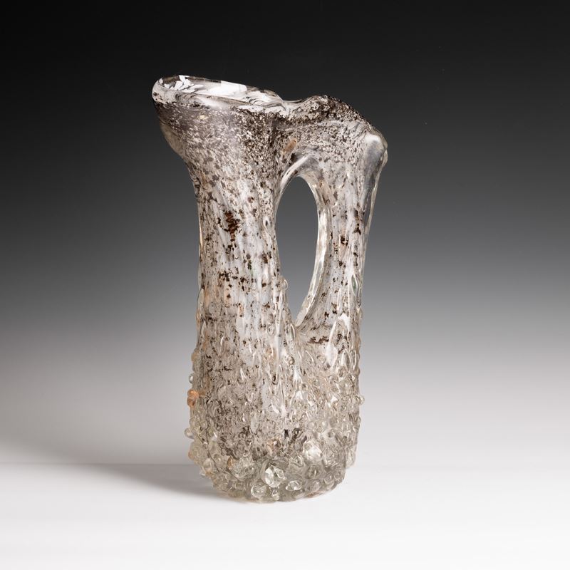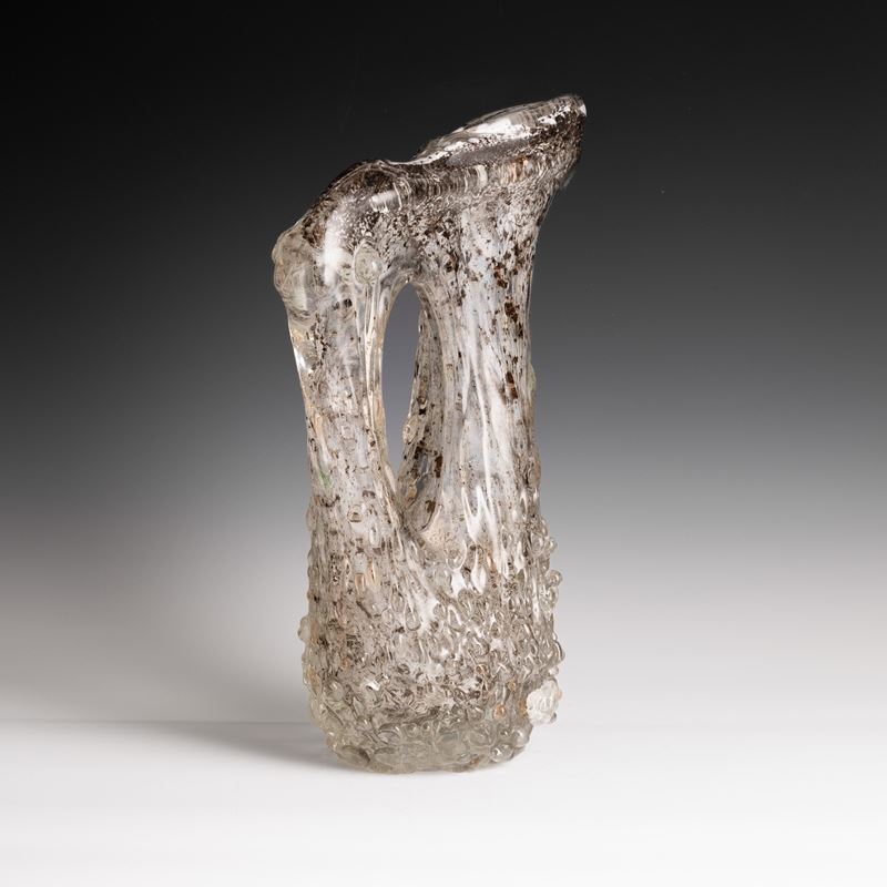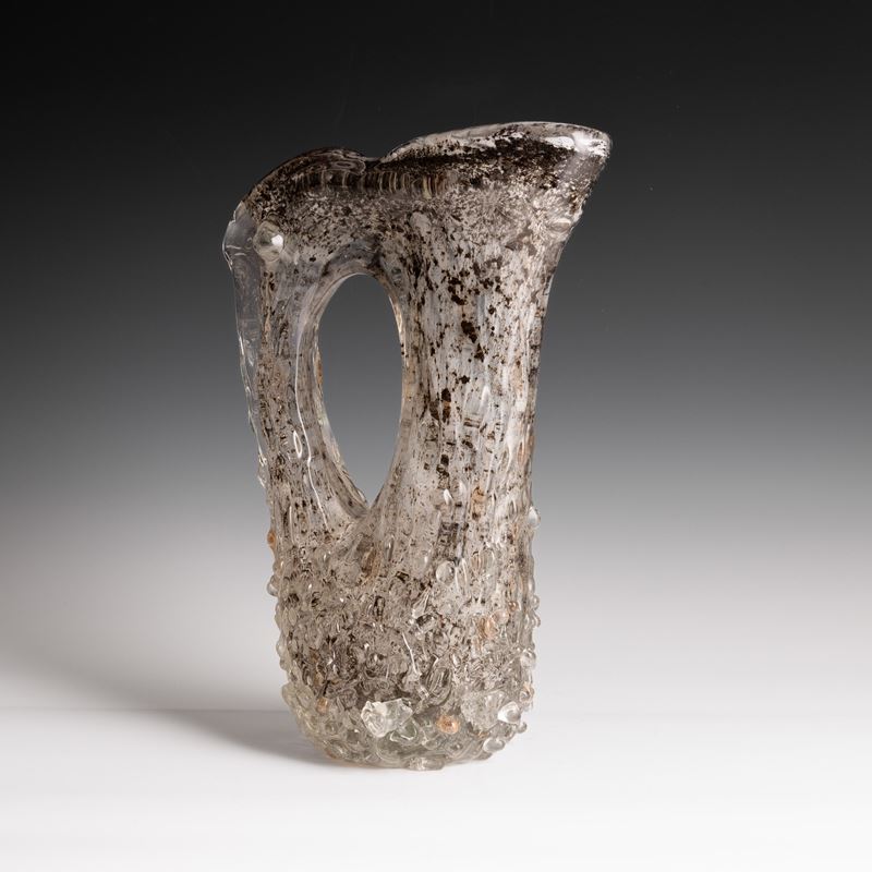 A rostrato glass pitcher vase with a gold leaf and bubble decor