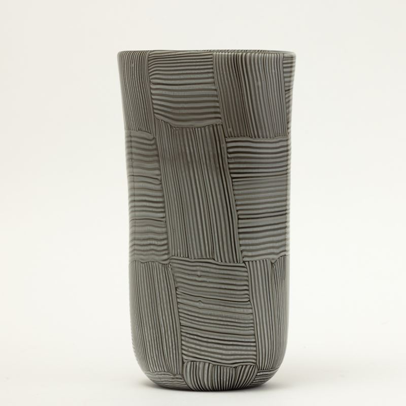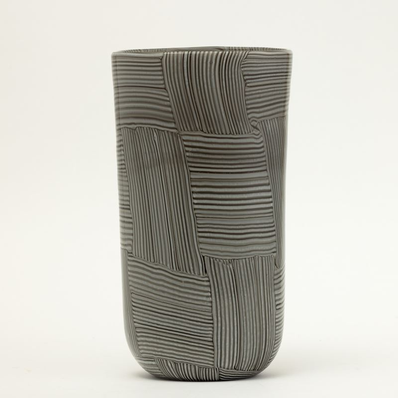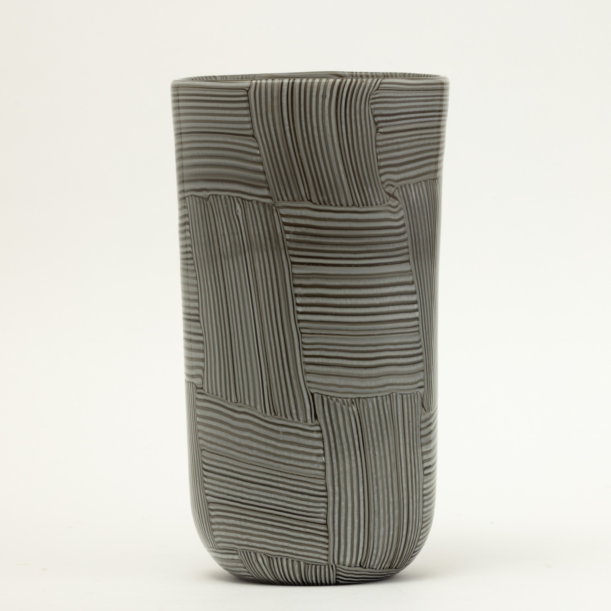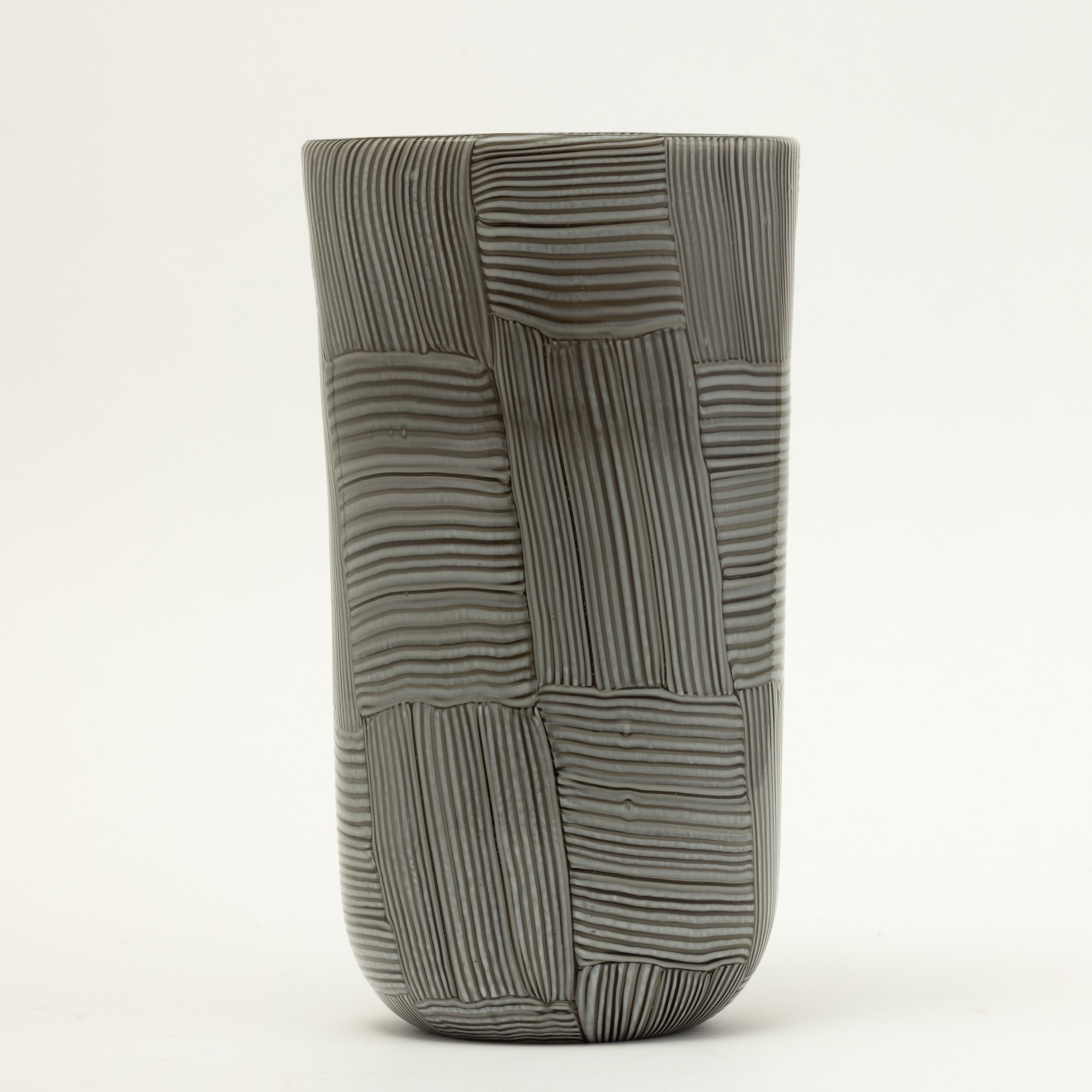 In the style of E. Barovier. A blown glass vase with a tile decor