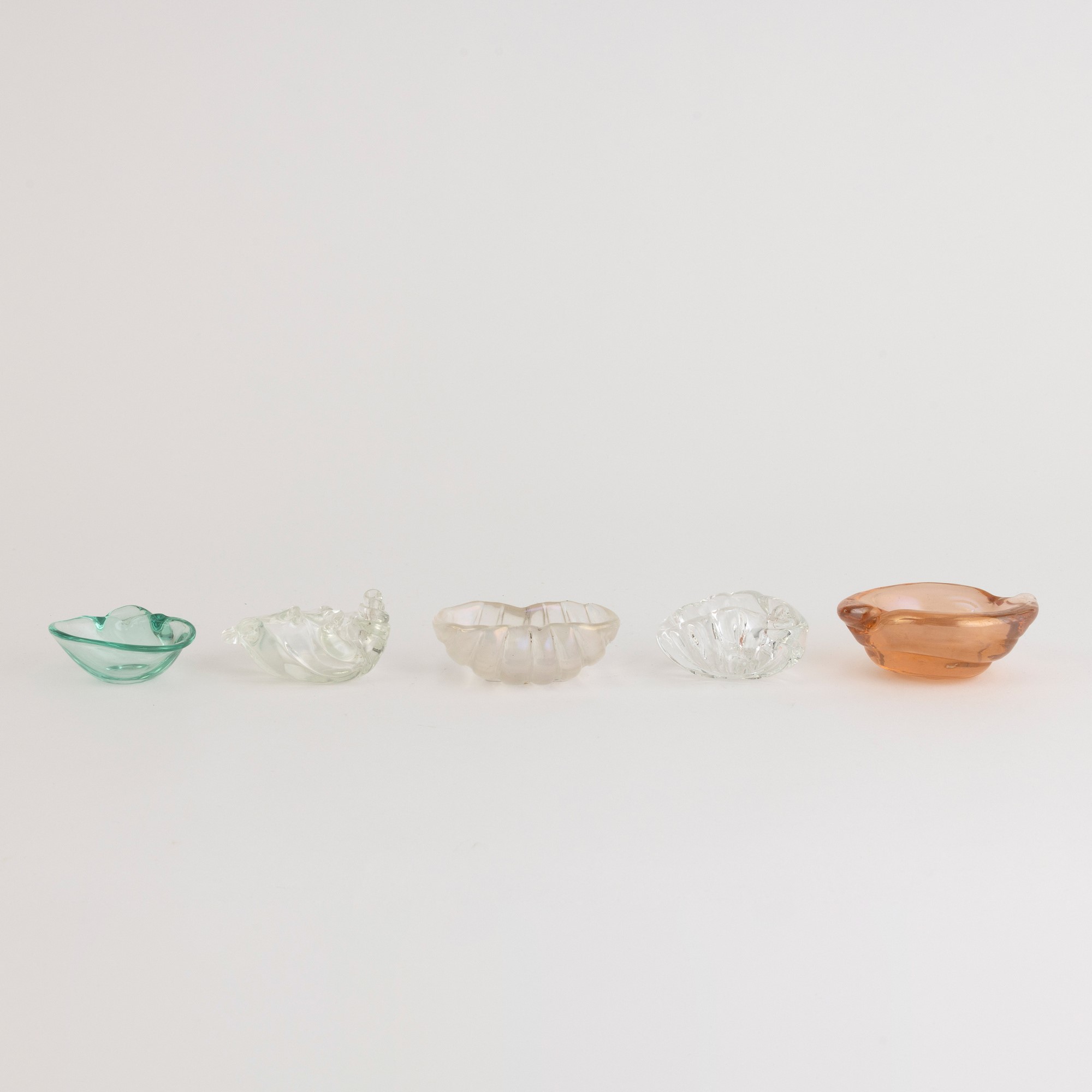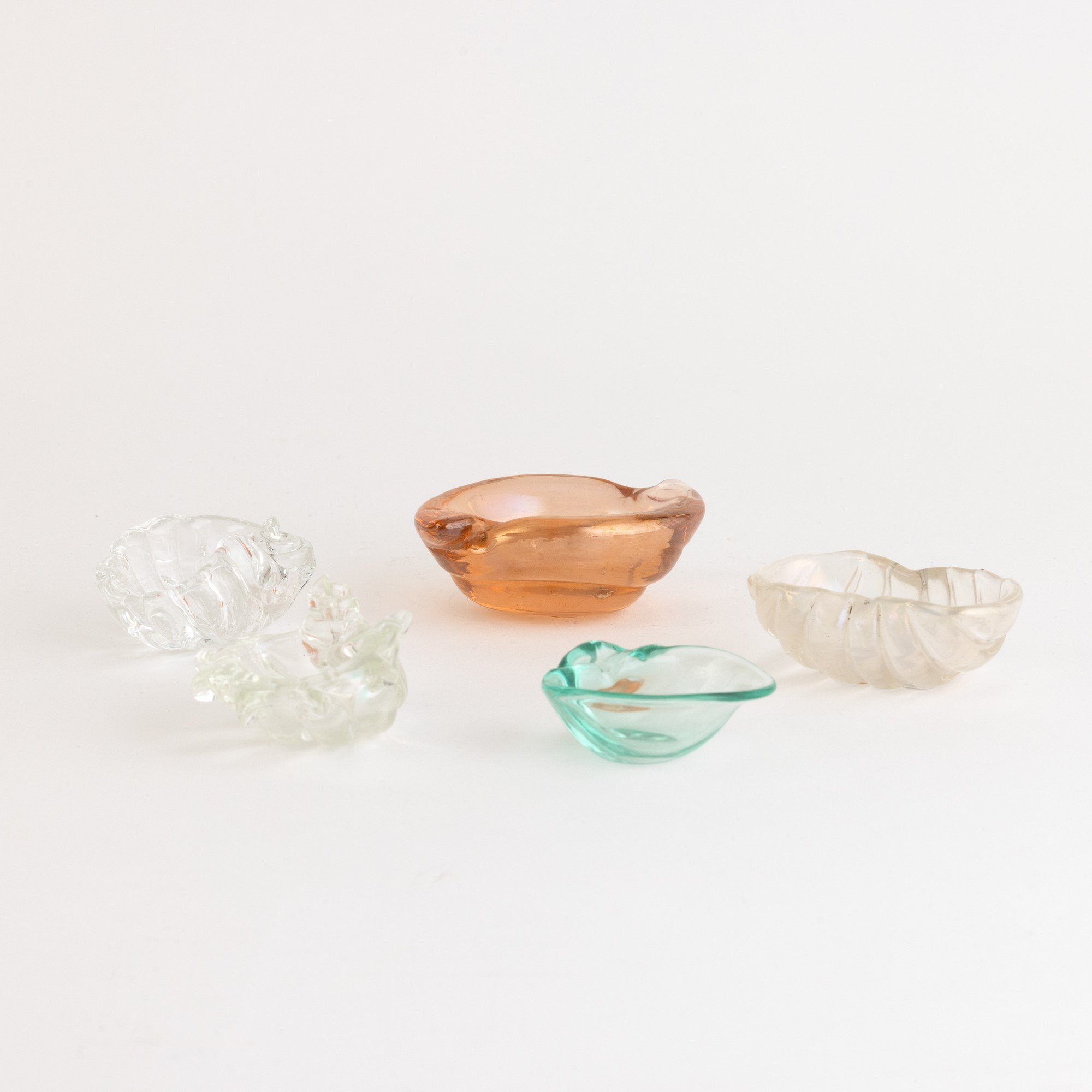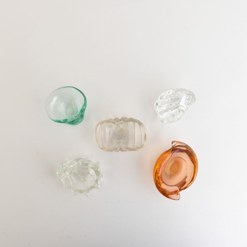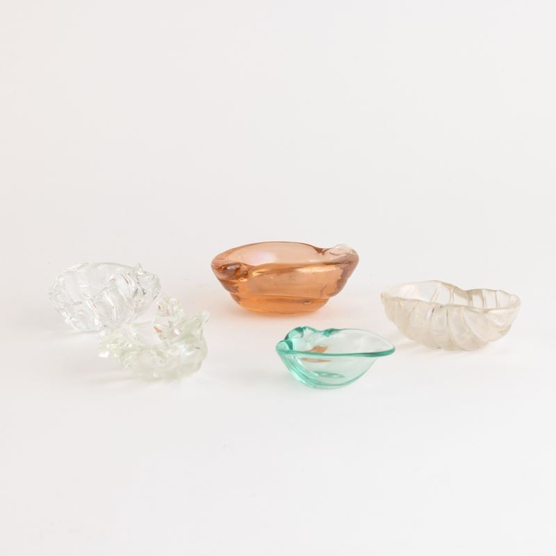 Five shell-shaped glass ashtrays