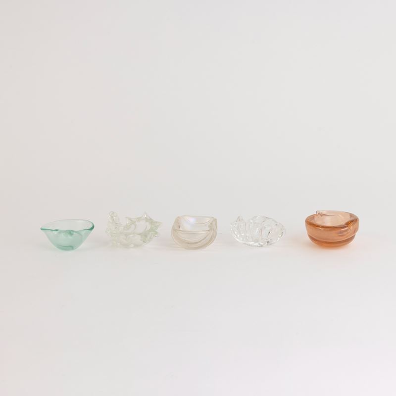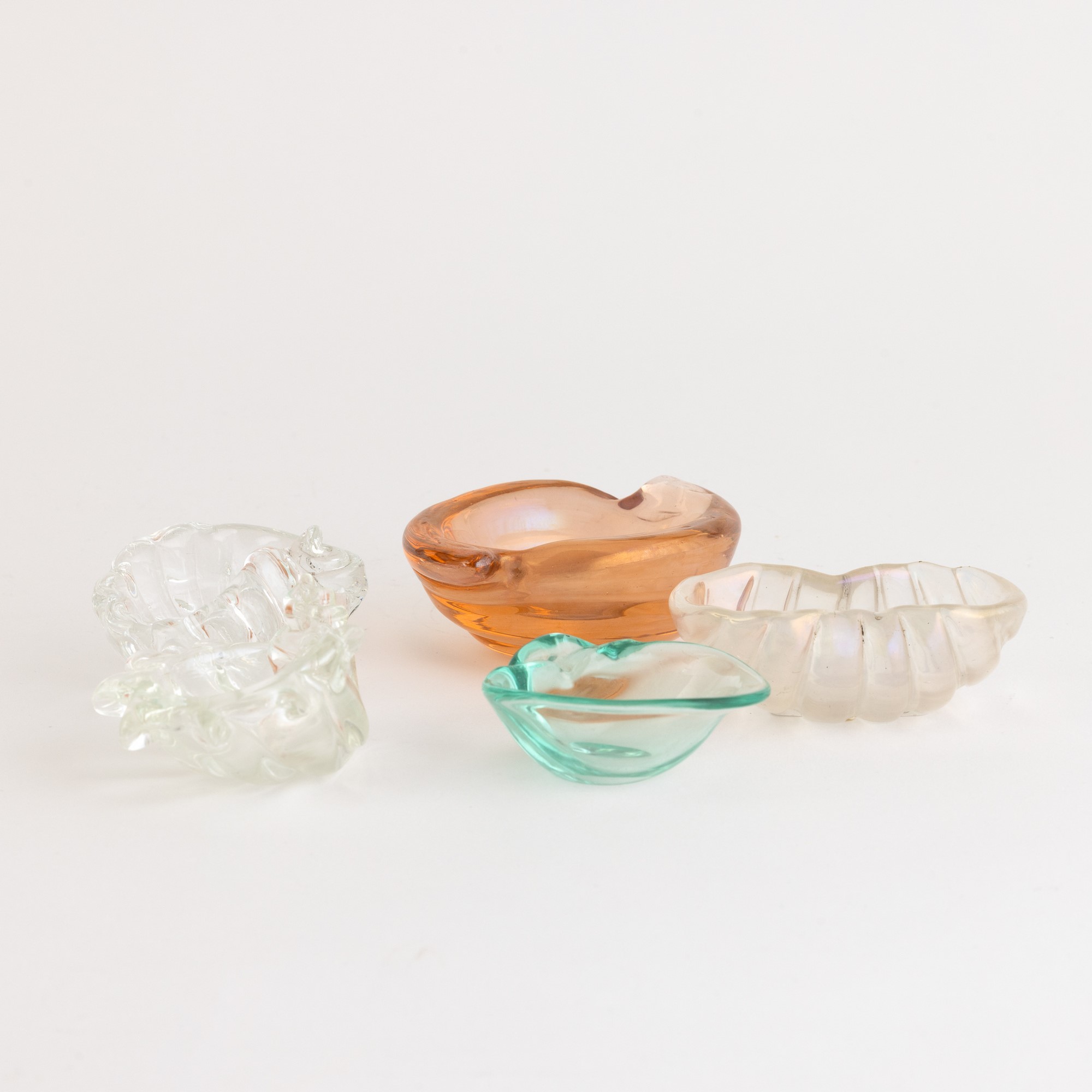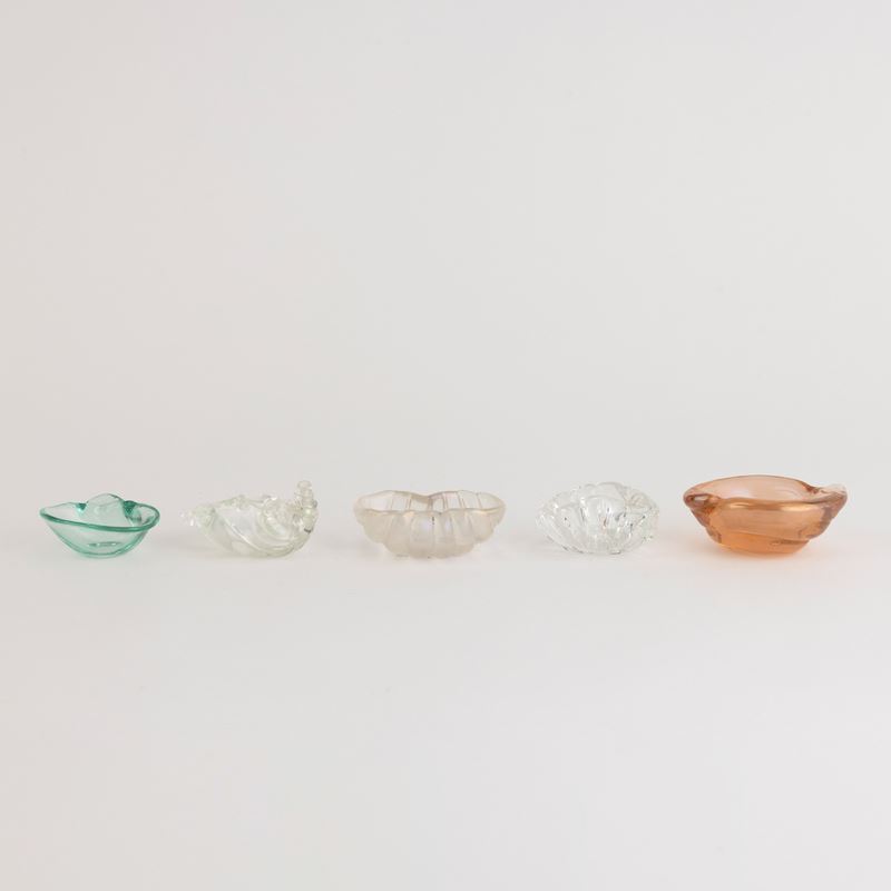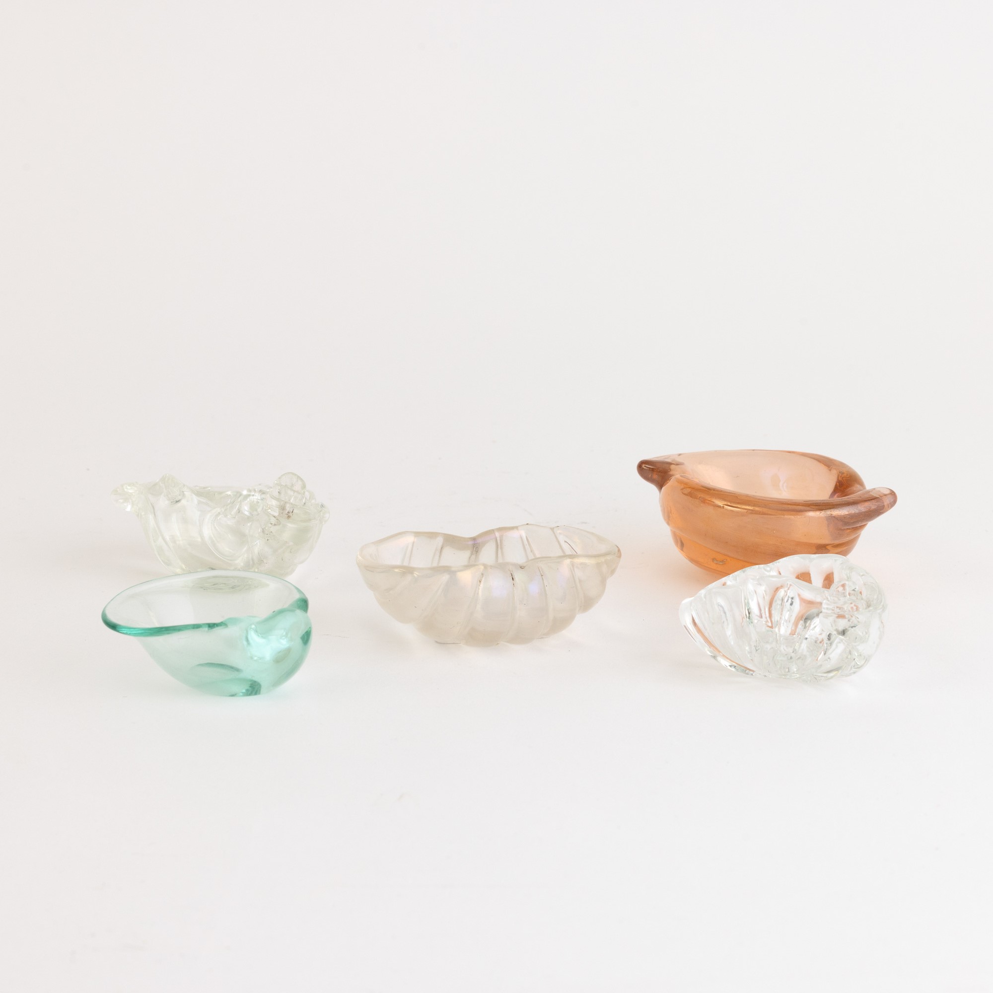 Five shell-shaped glass ashtrays