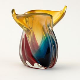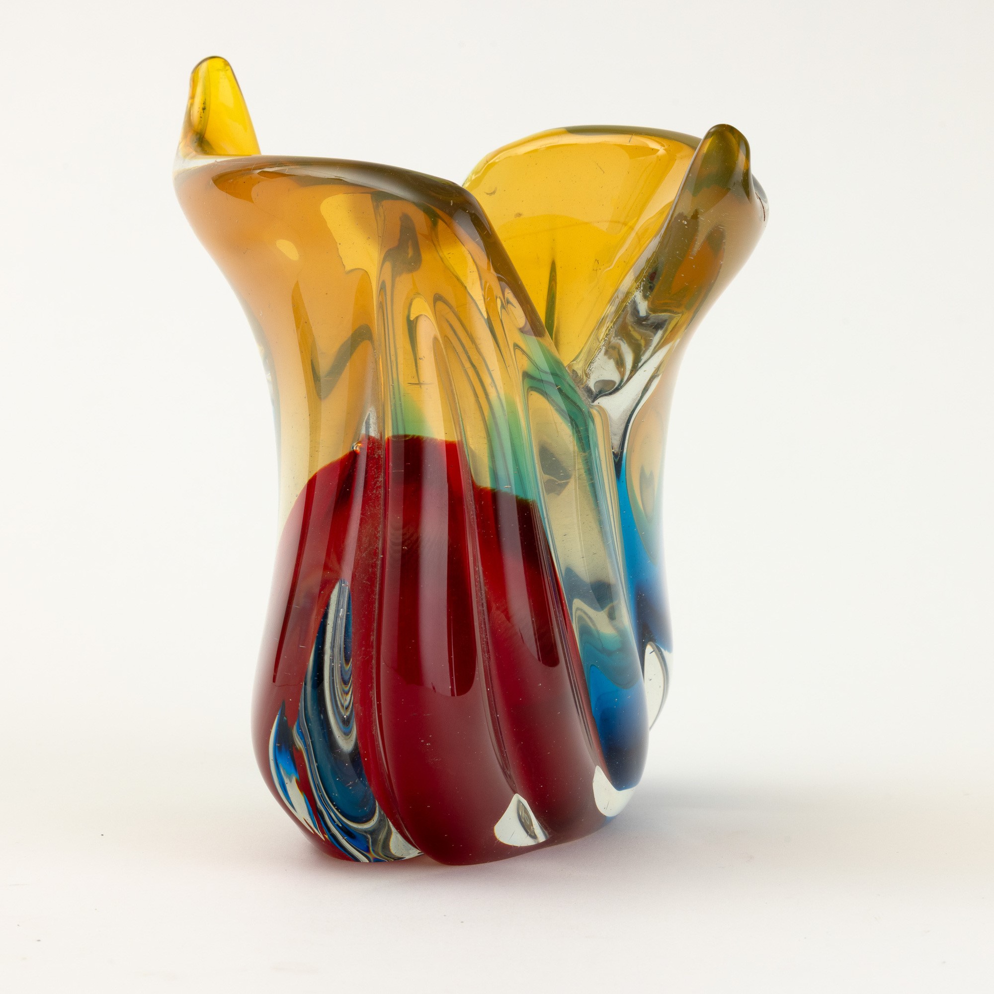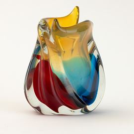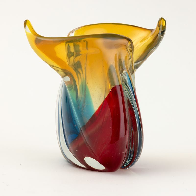 An oval-section vase with a polychrome sommerso decor