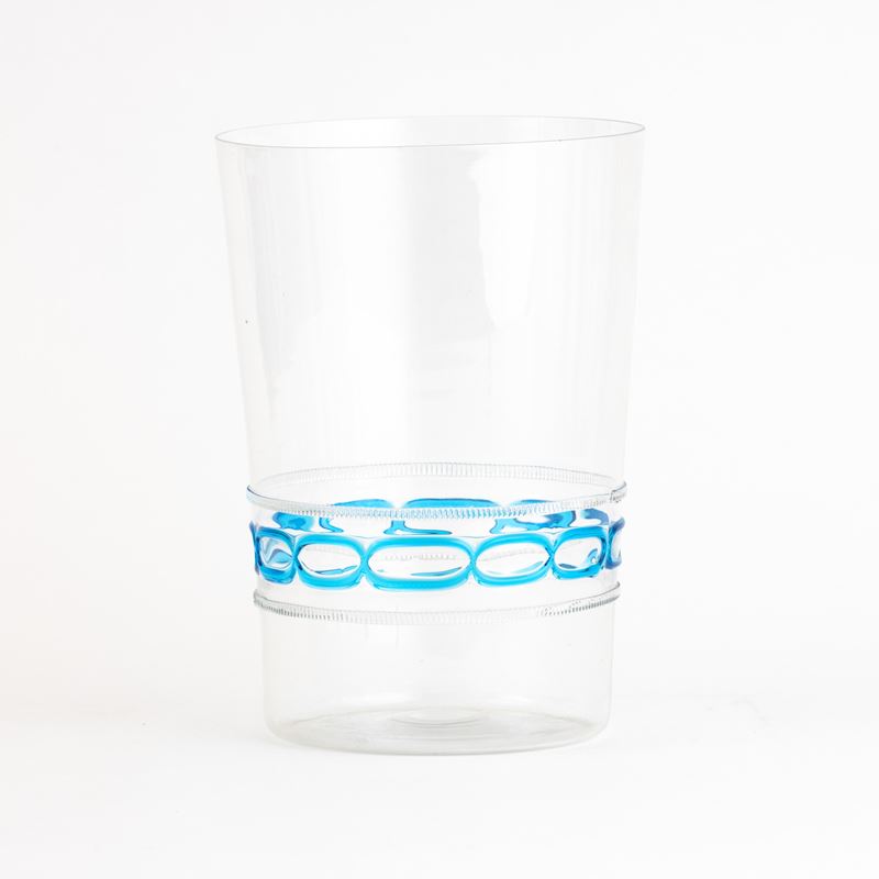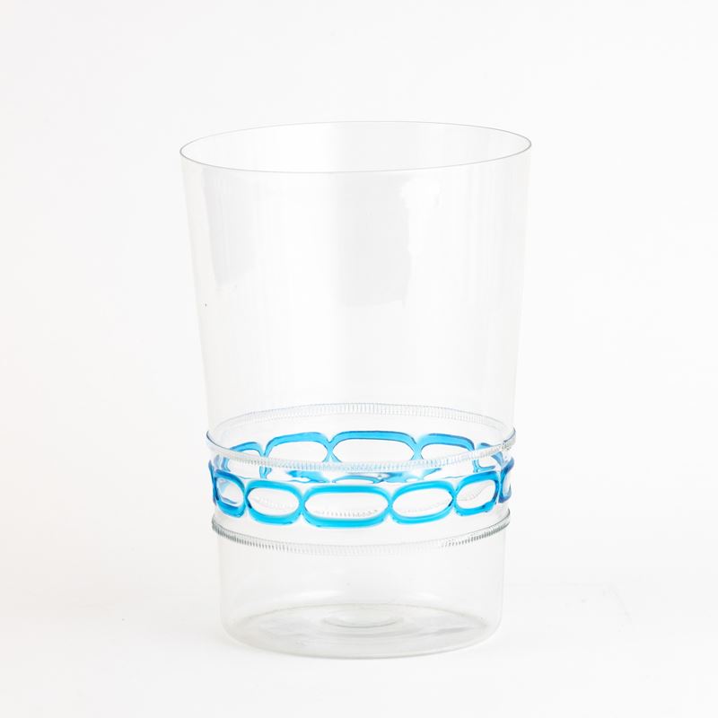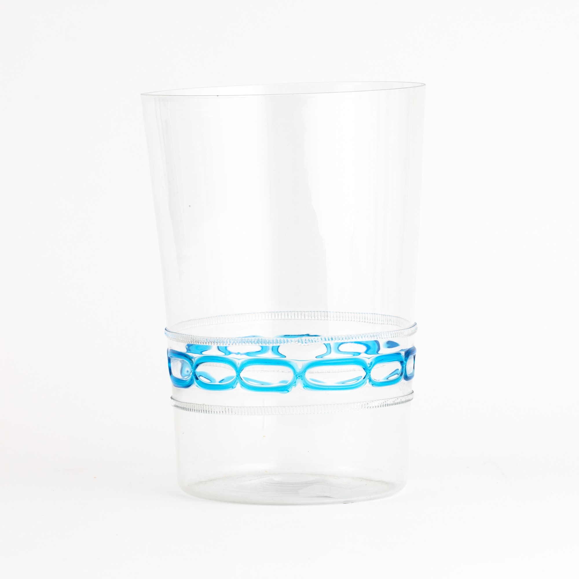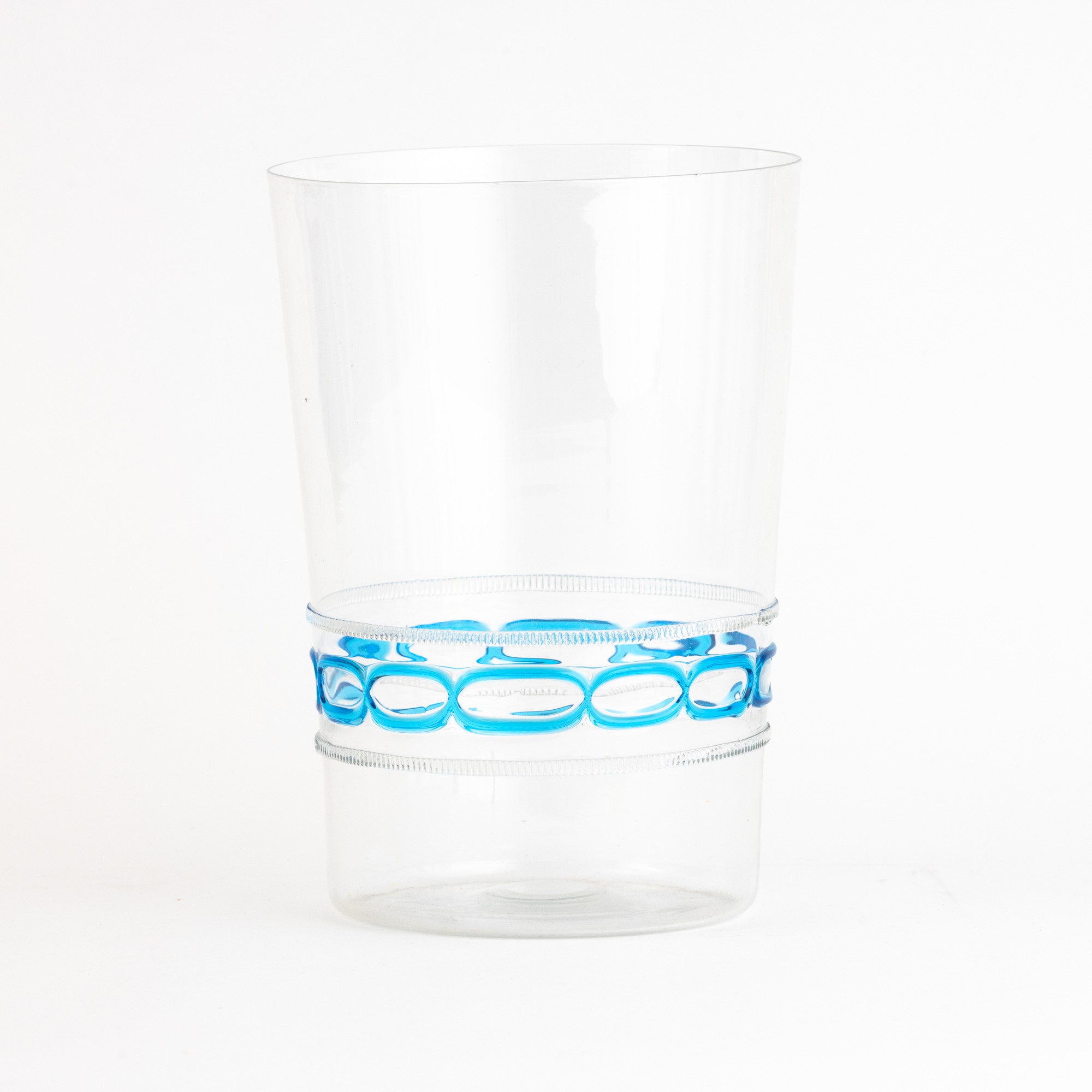 A blown glass vase with an applied band decor