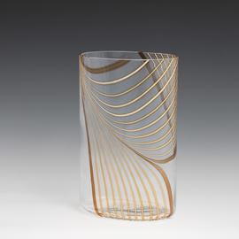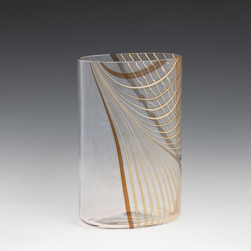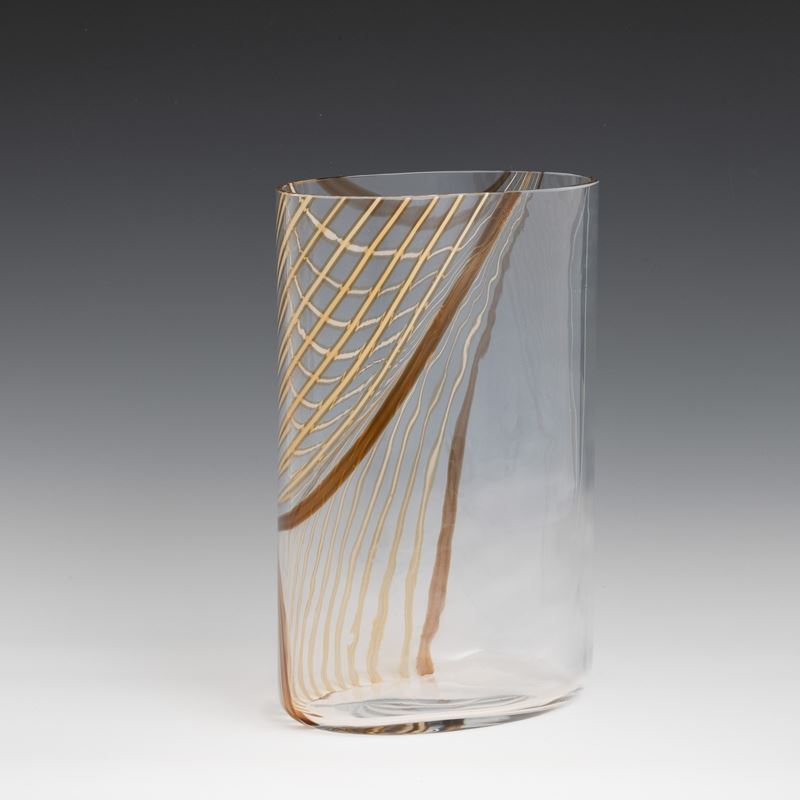 A glass vase with a polychrome cane decor. Engraved signature Seguso AV
