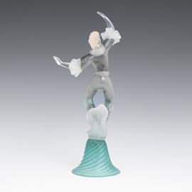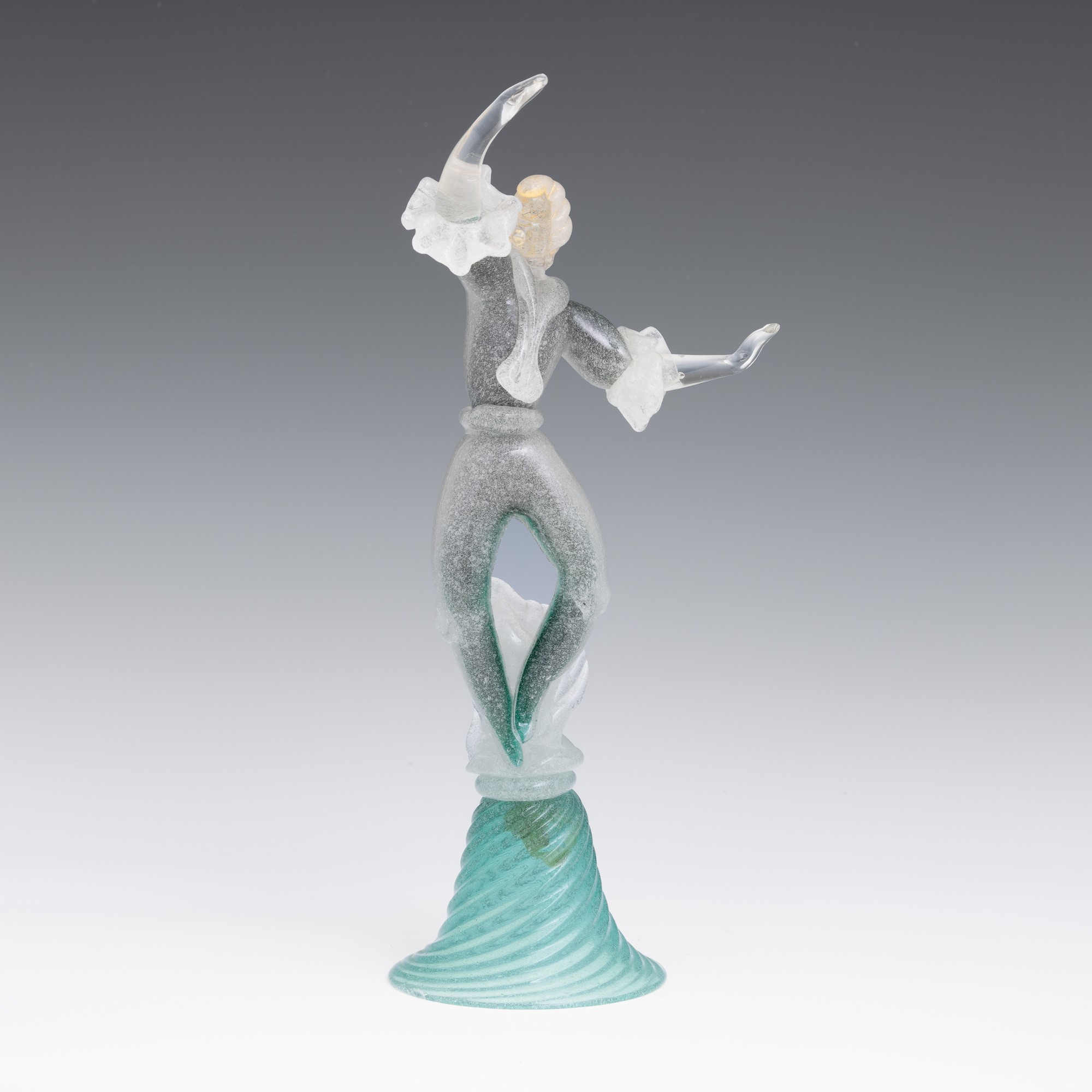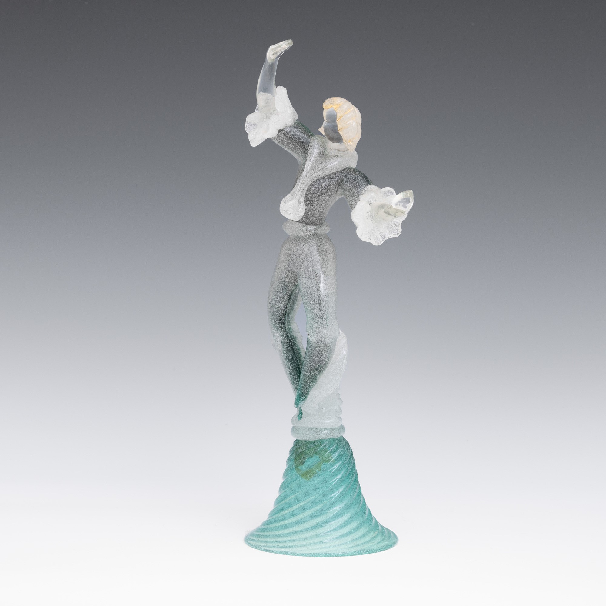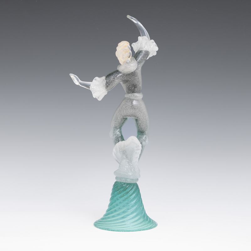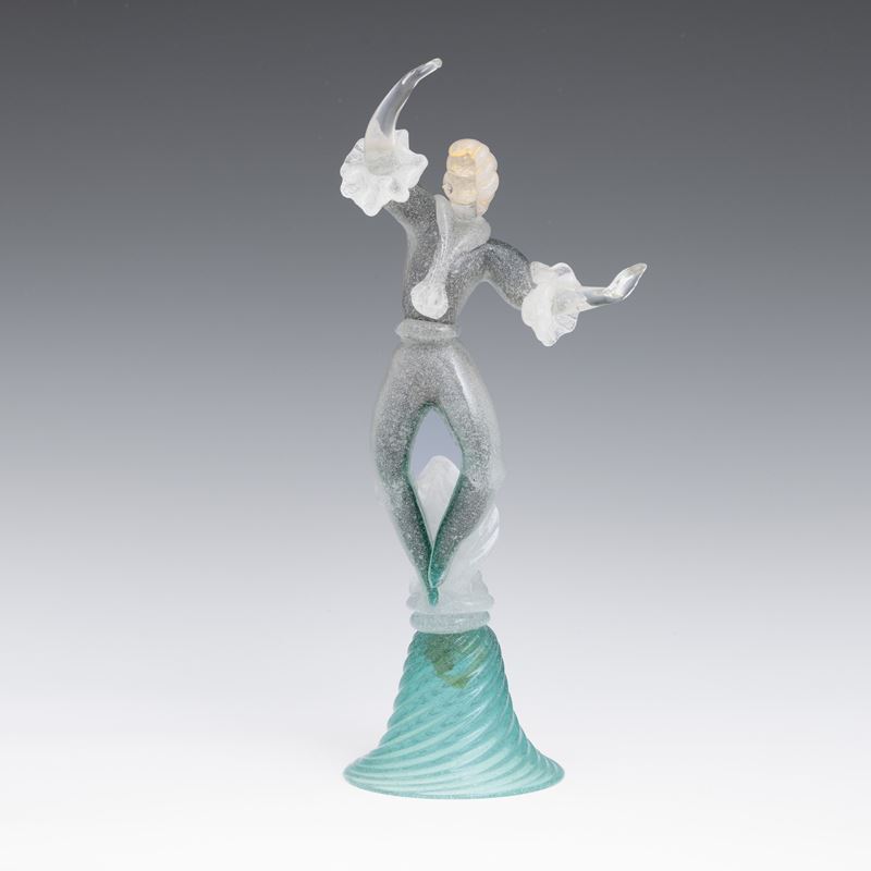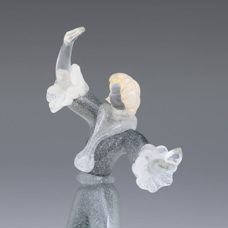 A sommerso glass figurine of a dancer with a gold leaf decor. Old label Camera Glass