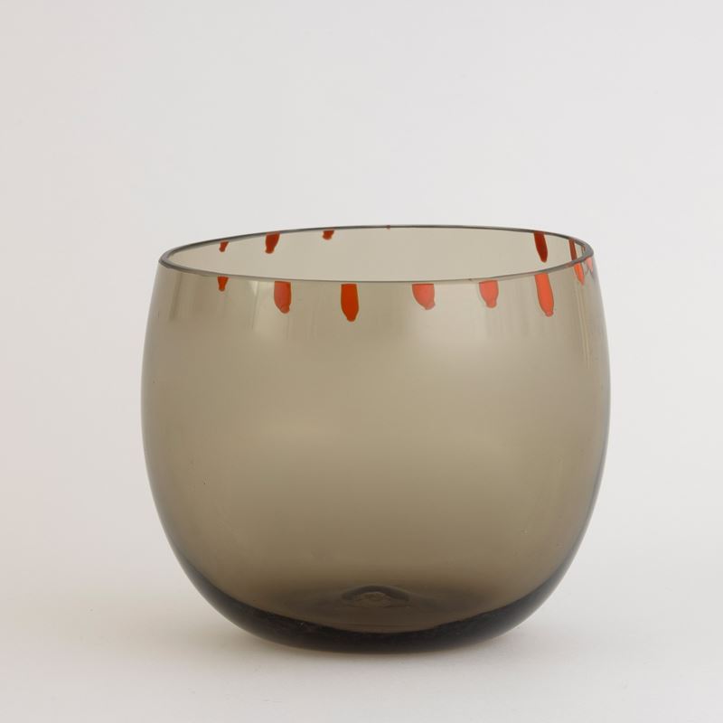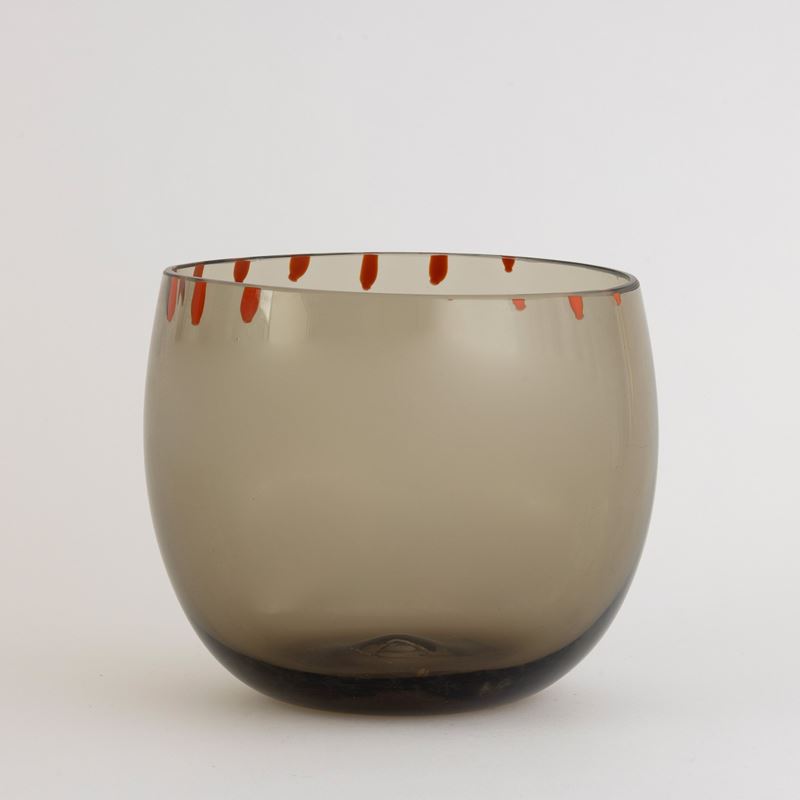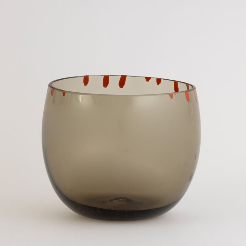 A smoked glass bowl. Engraved signature Venini Italia