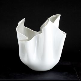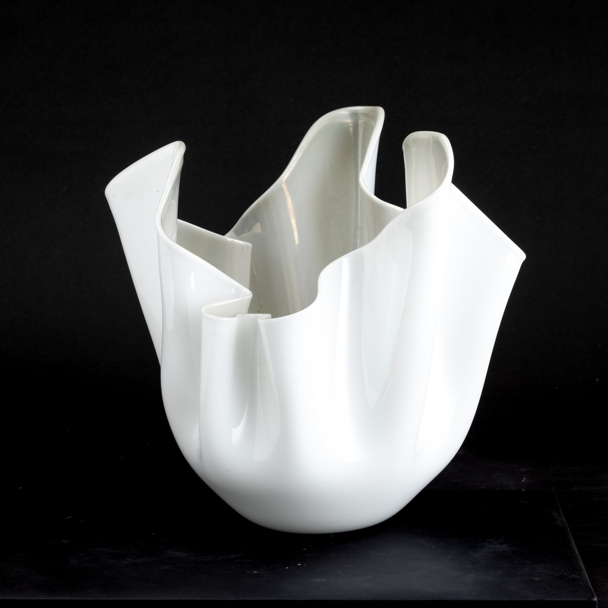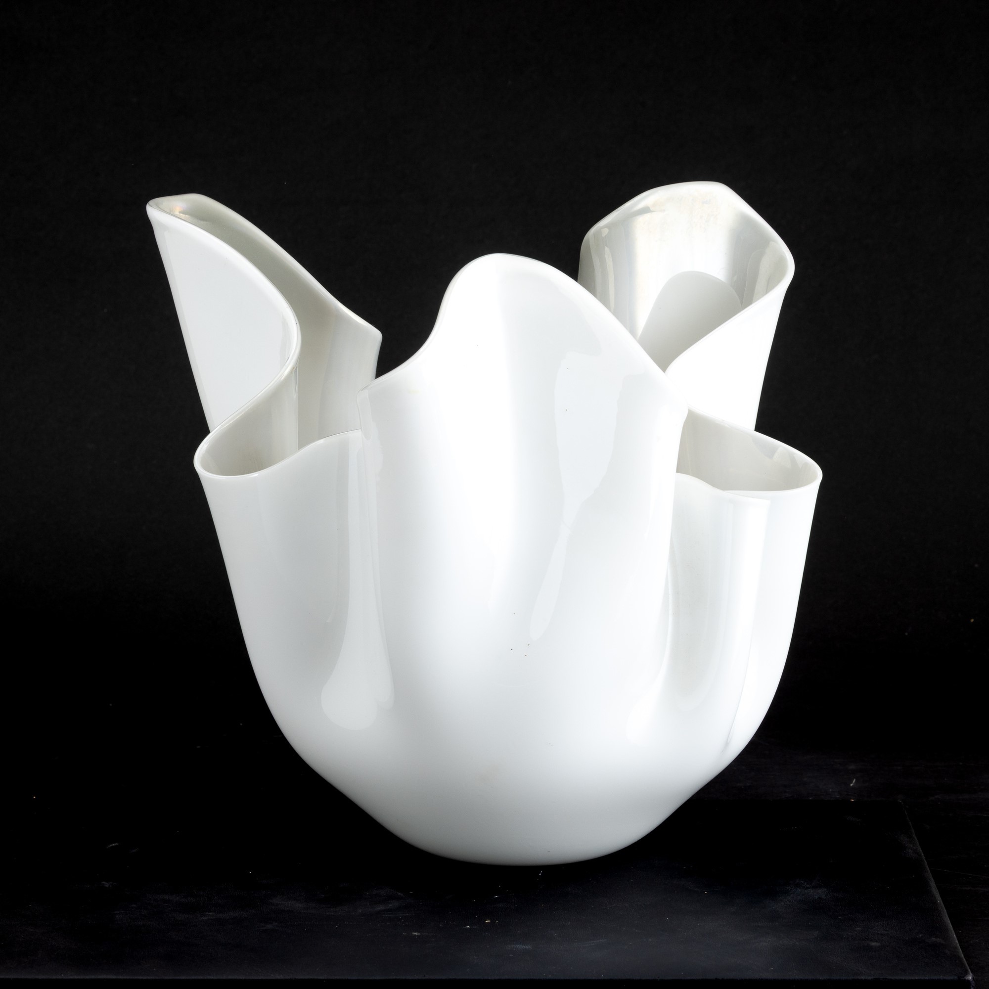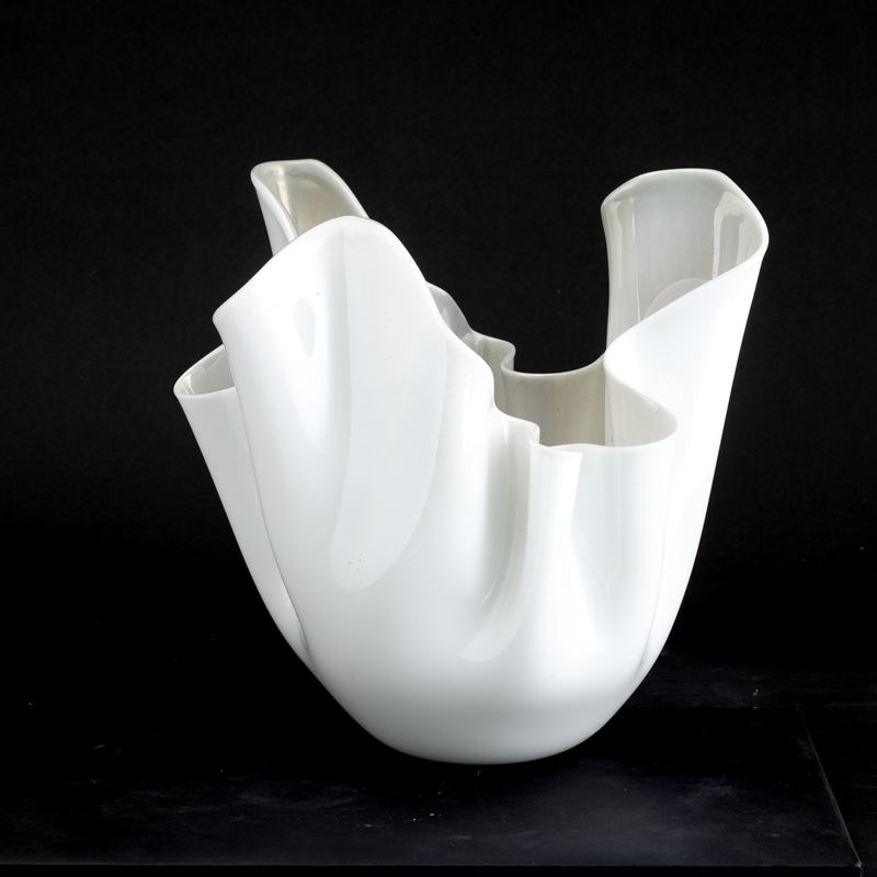 An incamiciato glass Fazzoletto vase with an iridised surface. Acid-etched signature