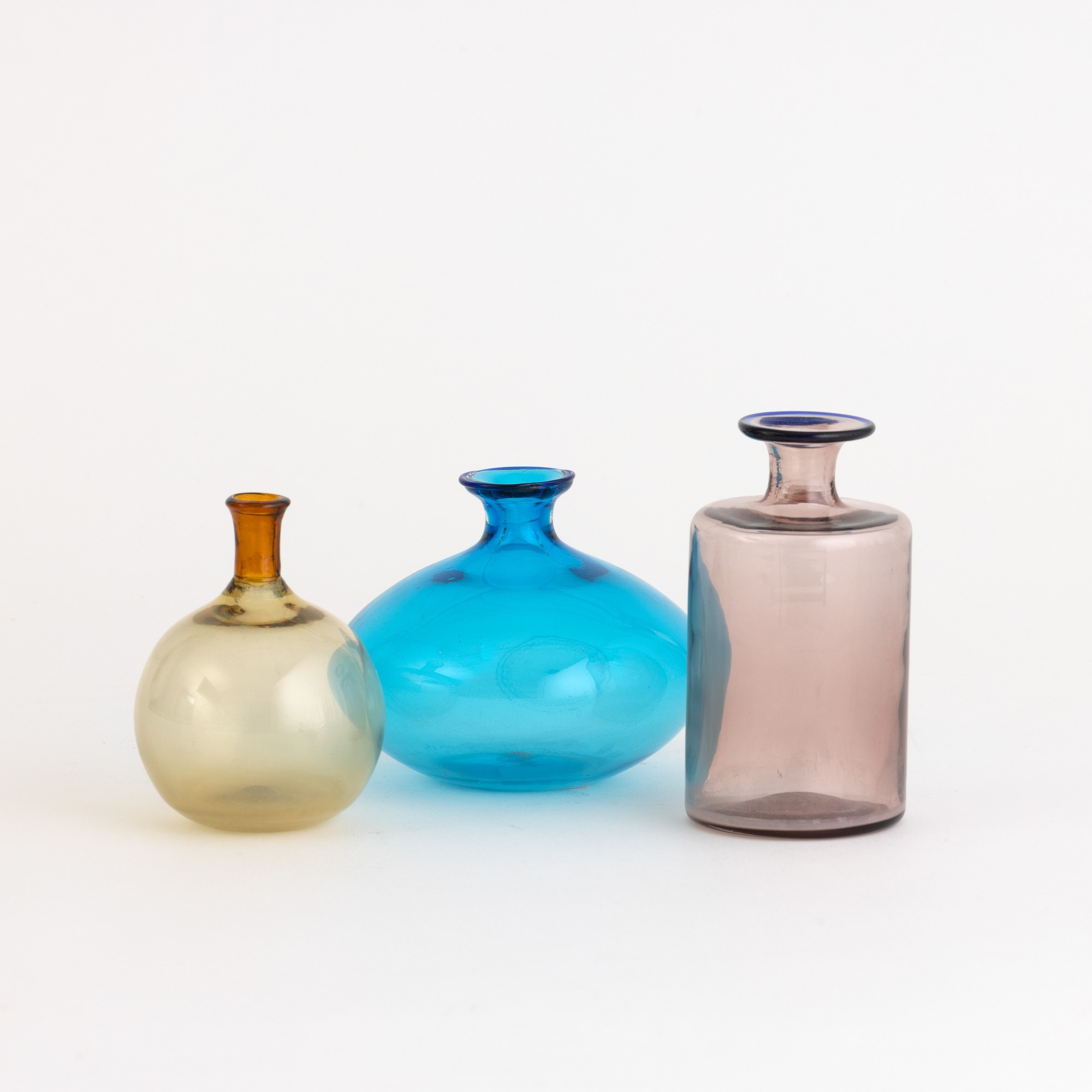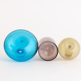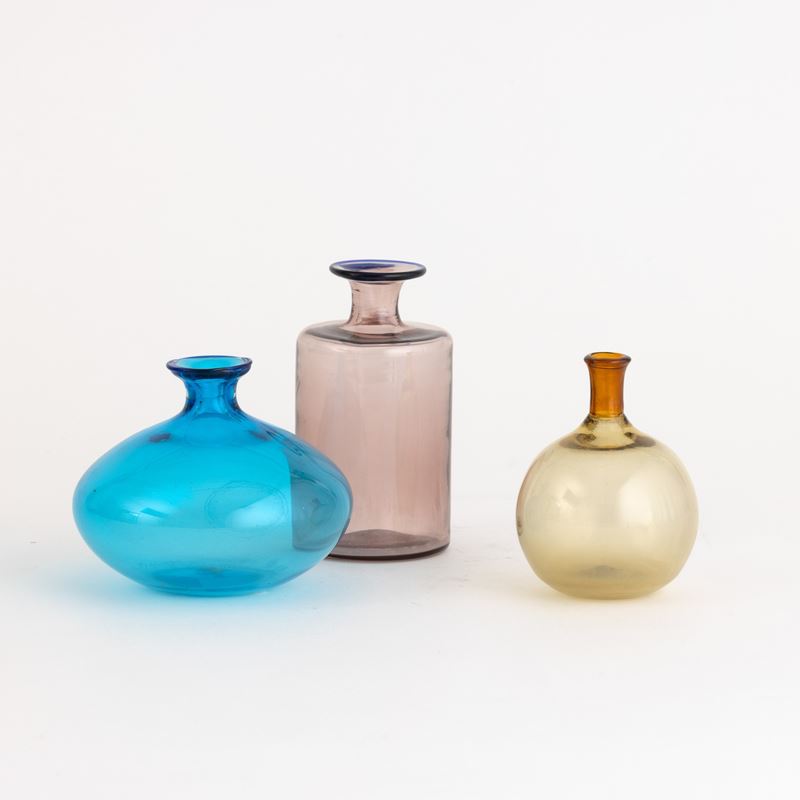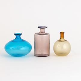 A blown glass bottle, a blown glass vase and a small vase from the Colletti series. Etched signature and date.