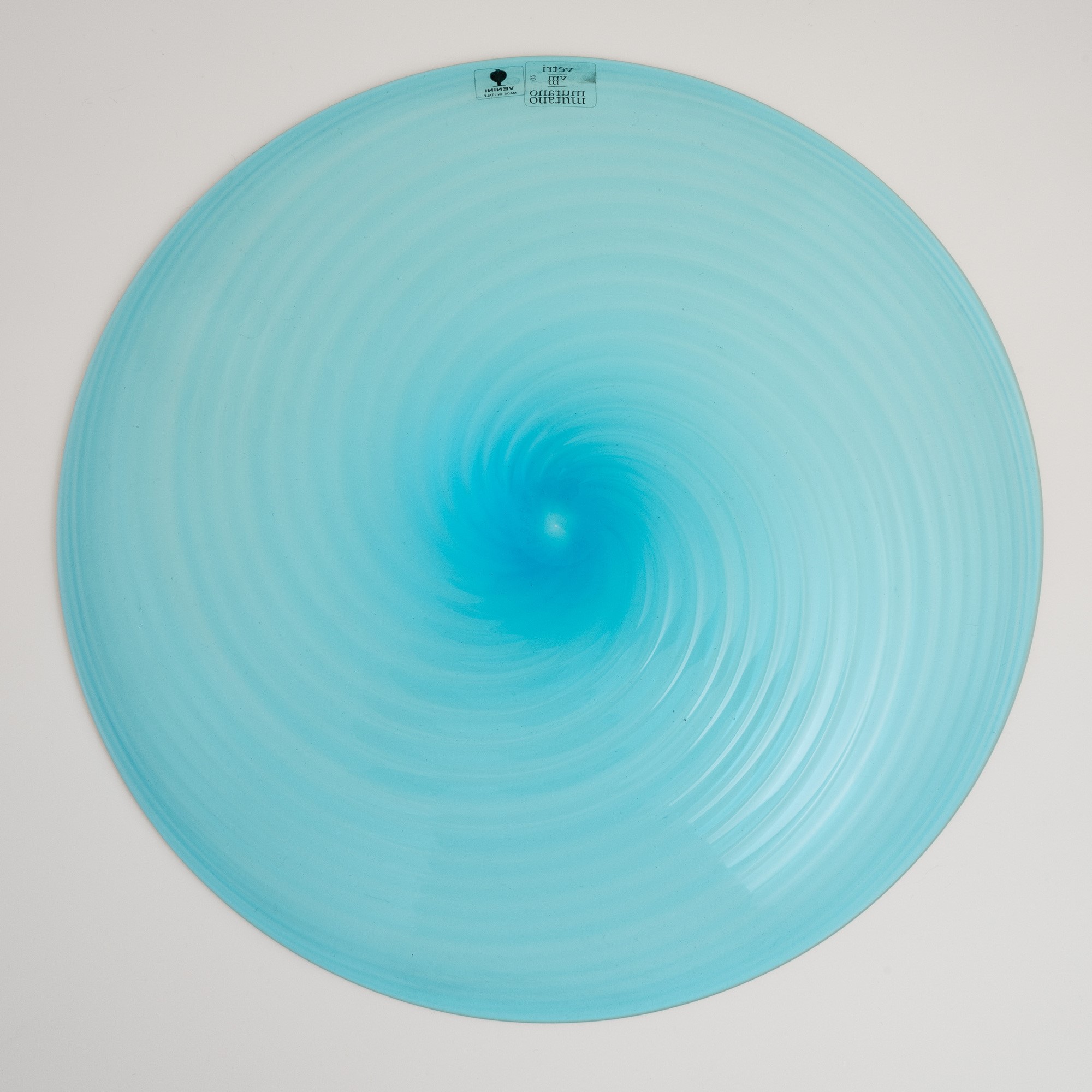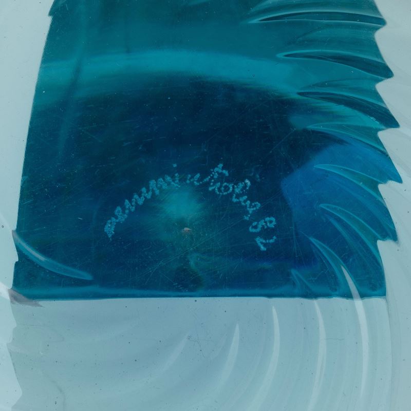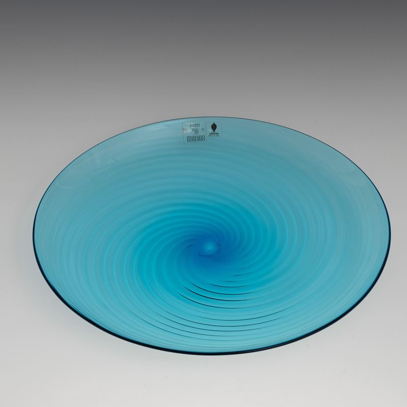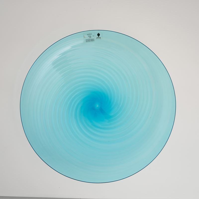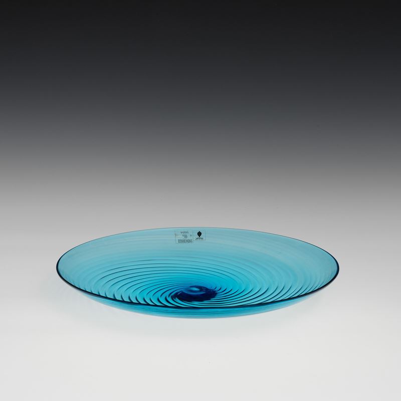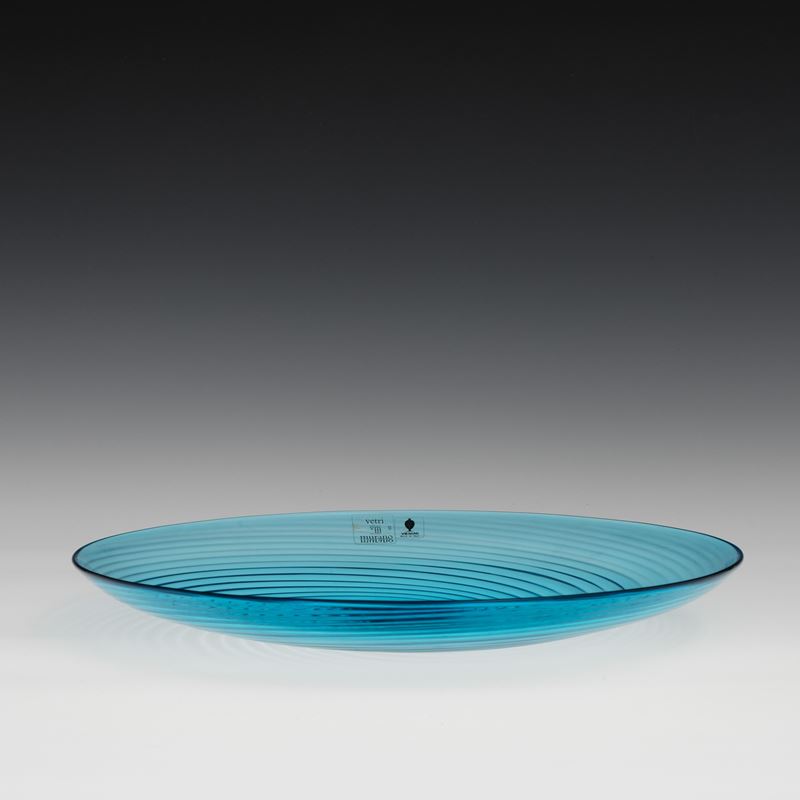 A blown glass plate. Etched signature Venini Italia 82 and old labels