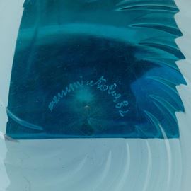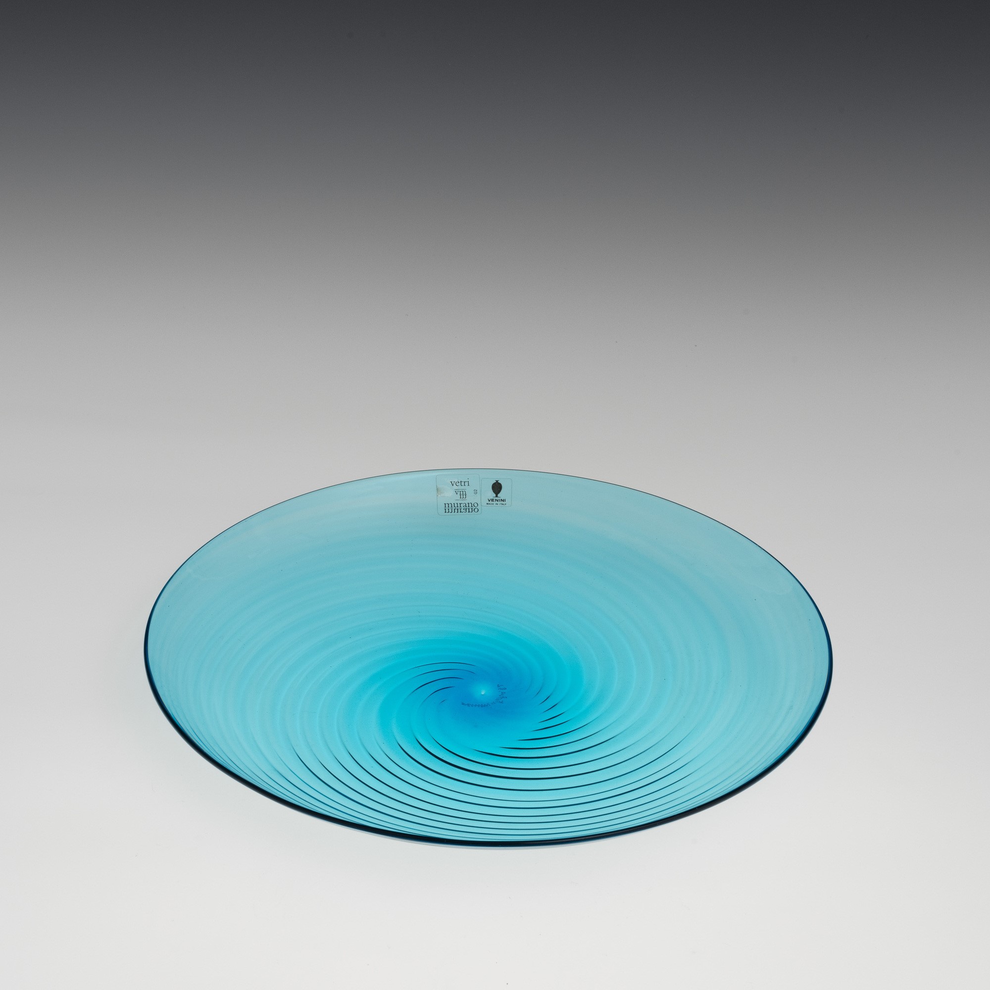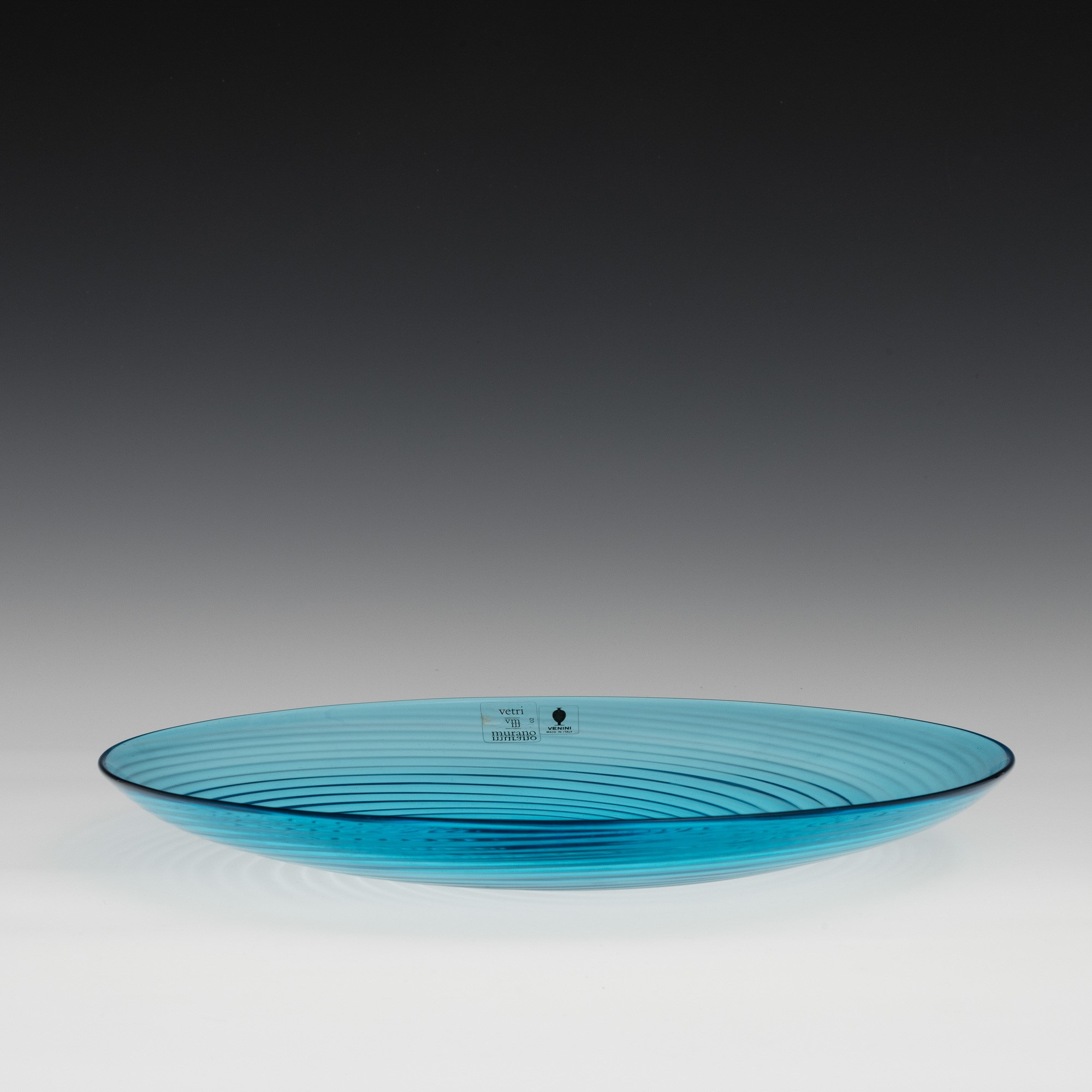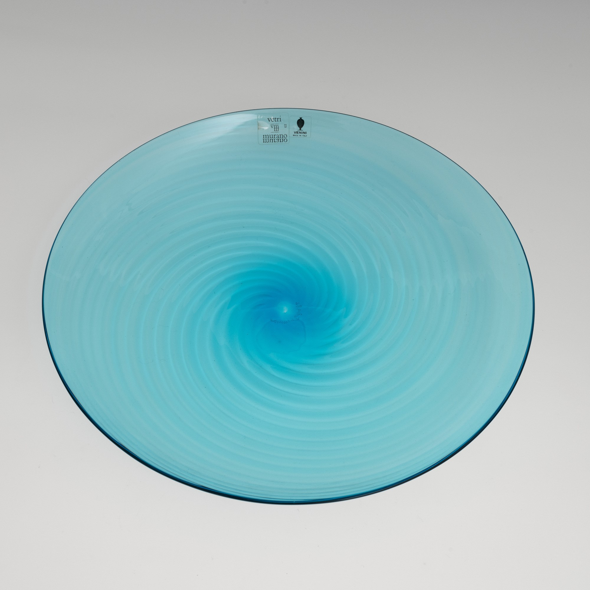 A blown glass plate. Etched signature Venini Italia 82 and old labels