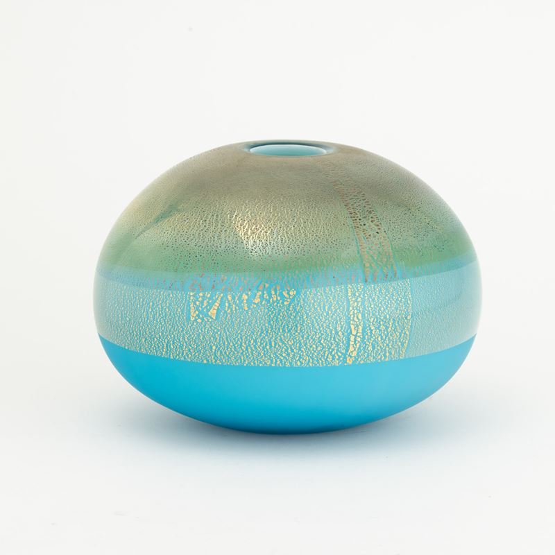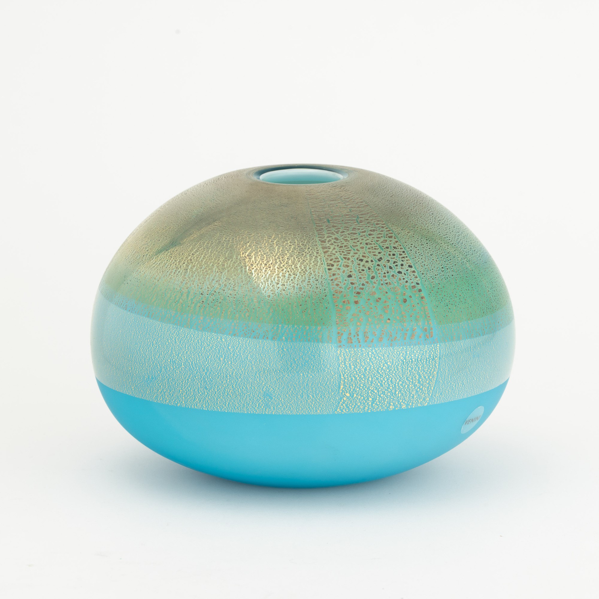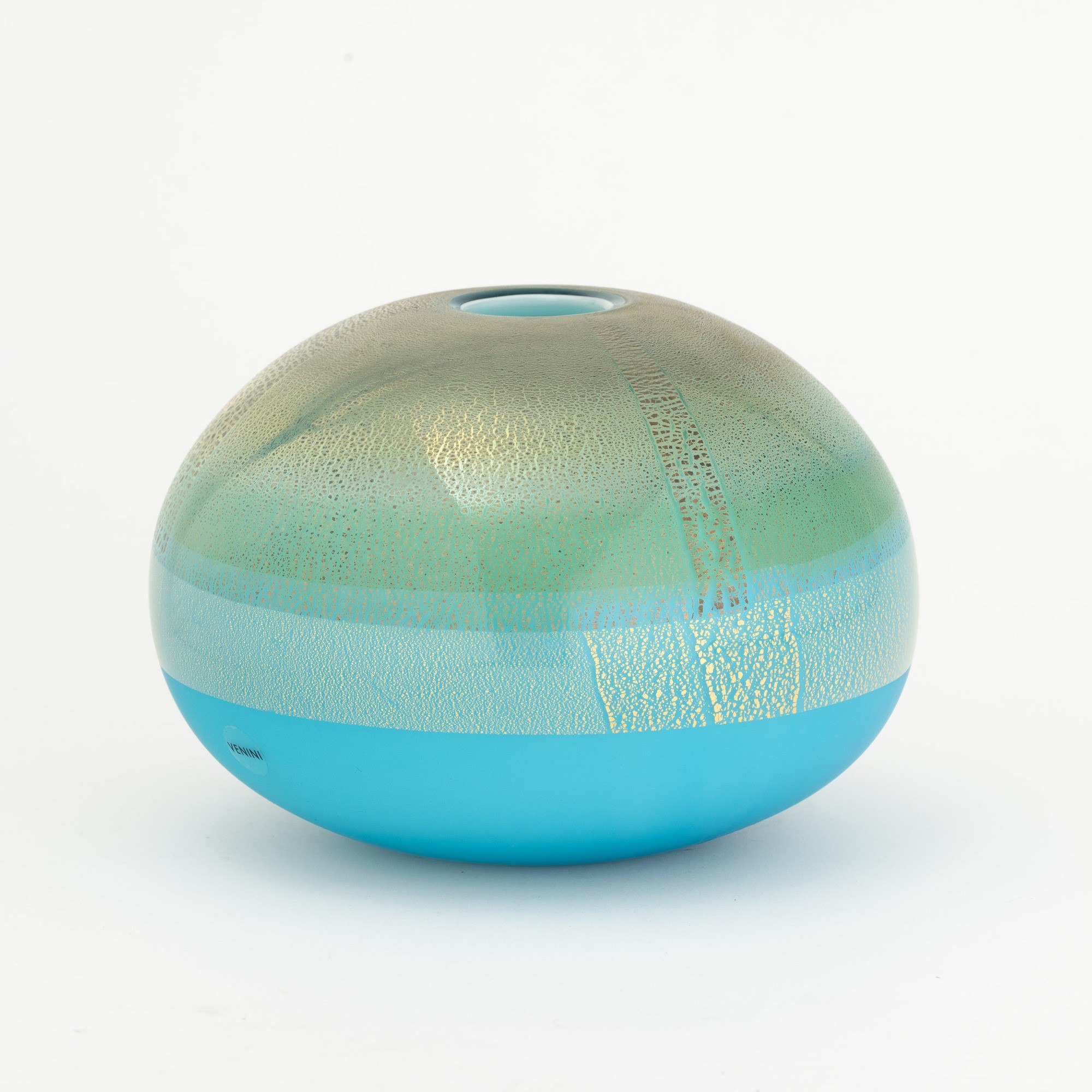 A blown glass vase from the Quarzi series with a gold and silver leaf decor. Etched date and signature