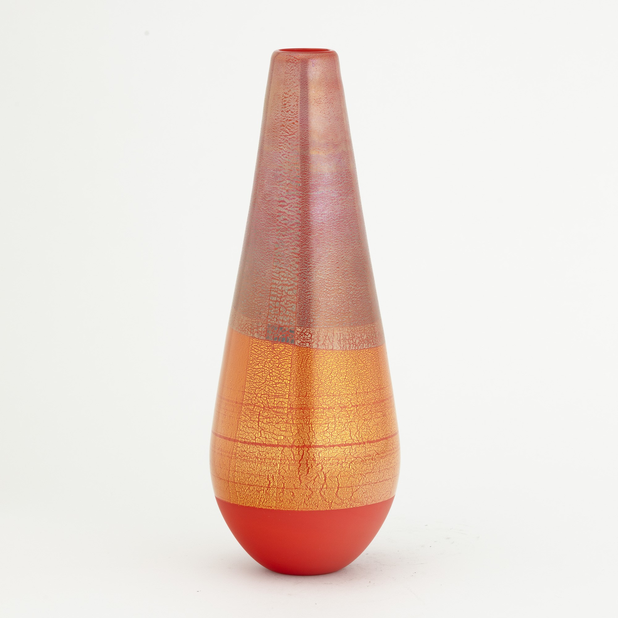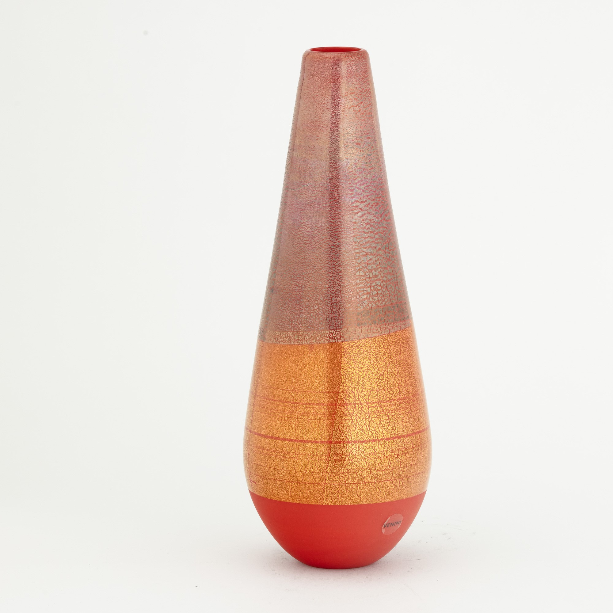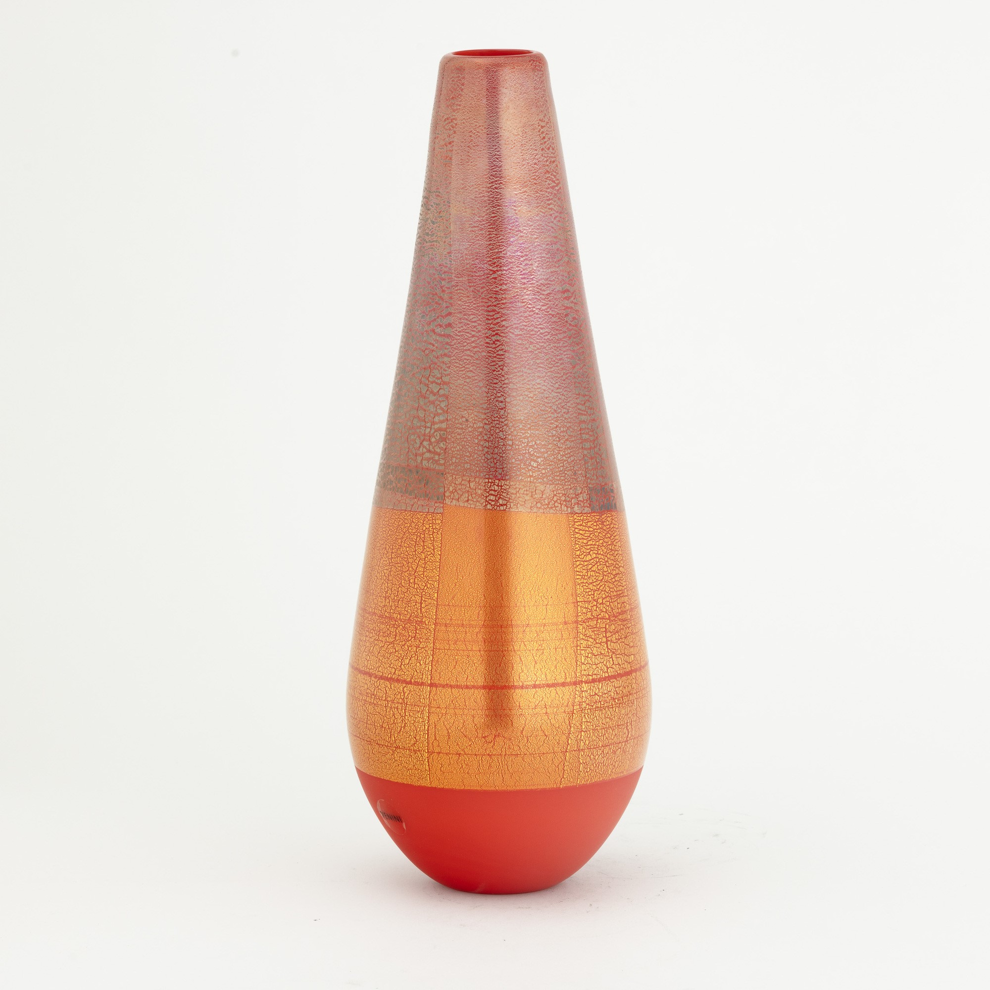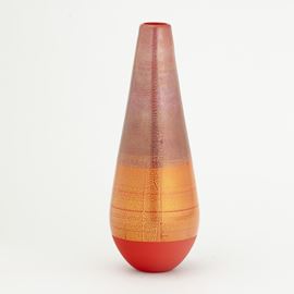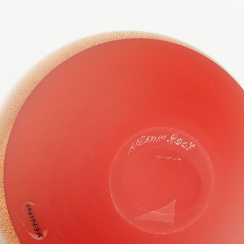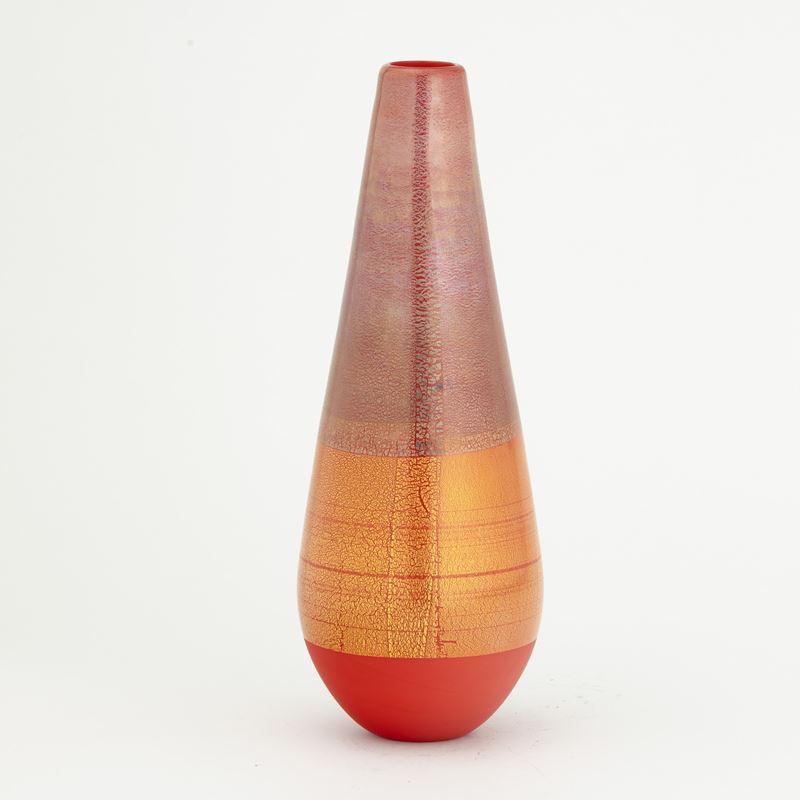 A blown glass vase from the Quarzi series with a gold and silver leaf decor. Etched date and signature