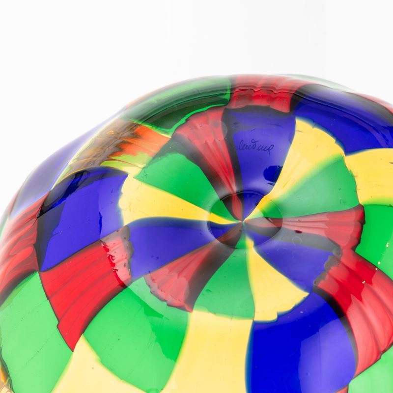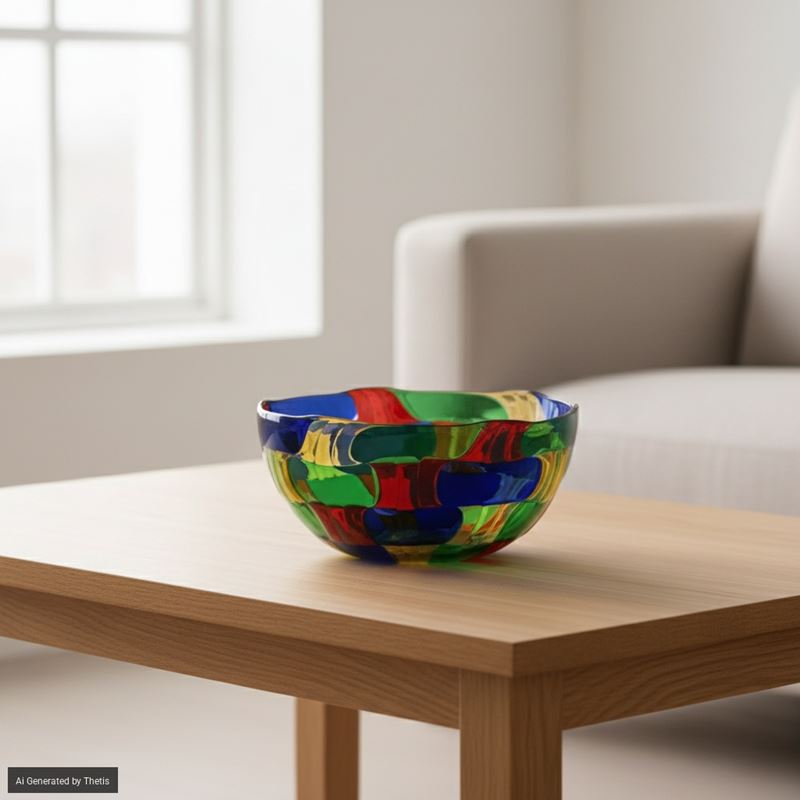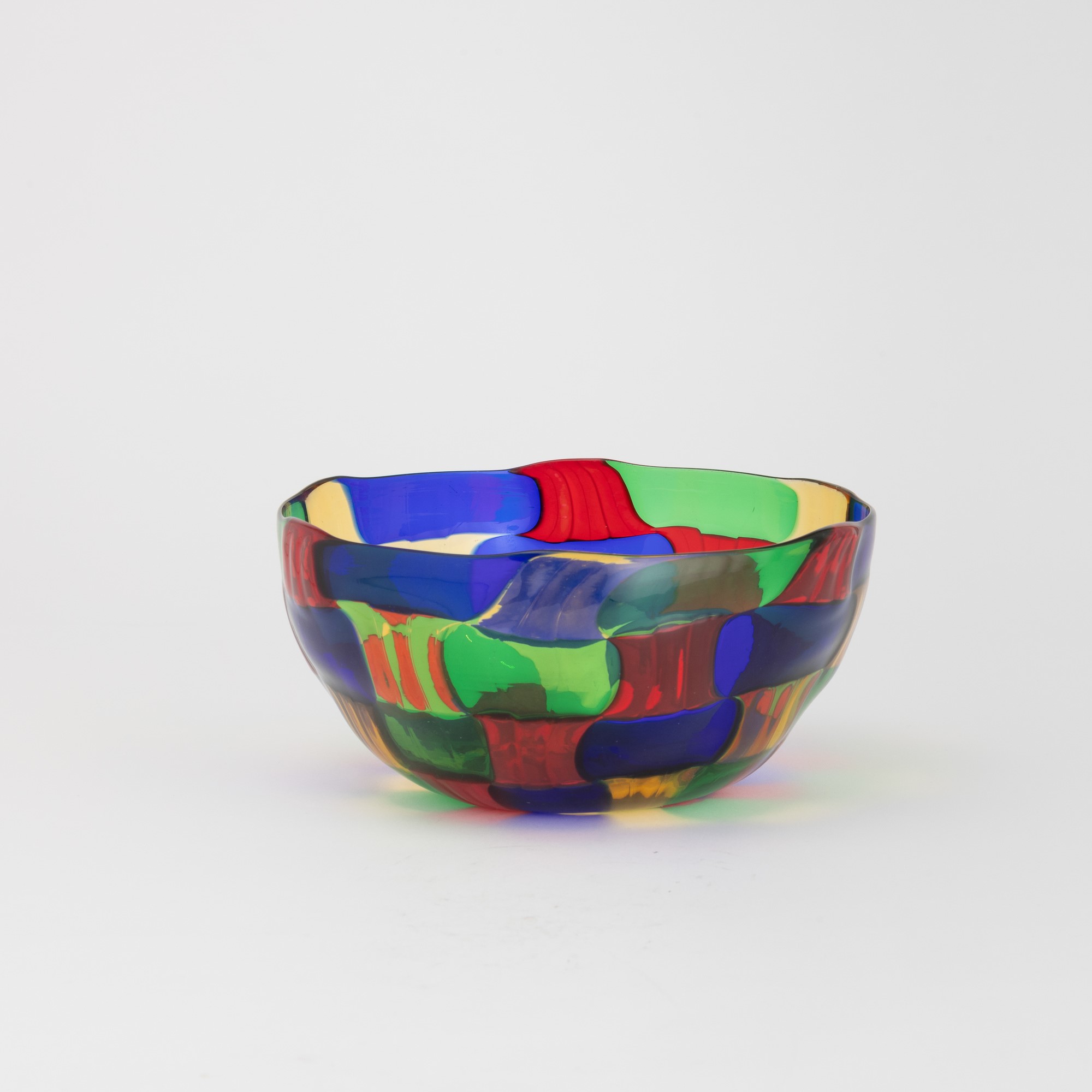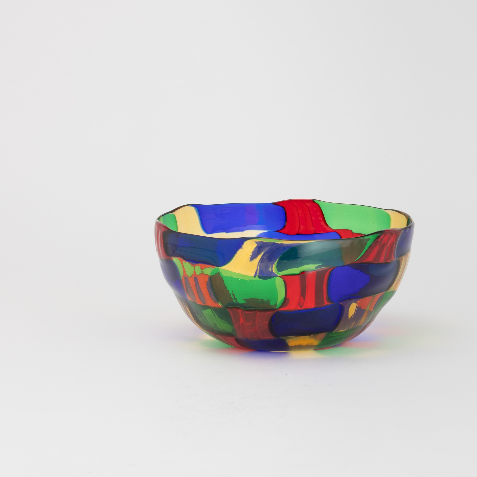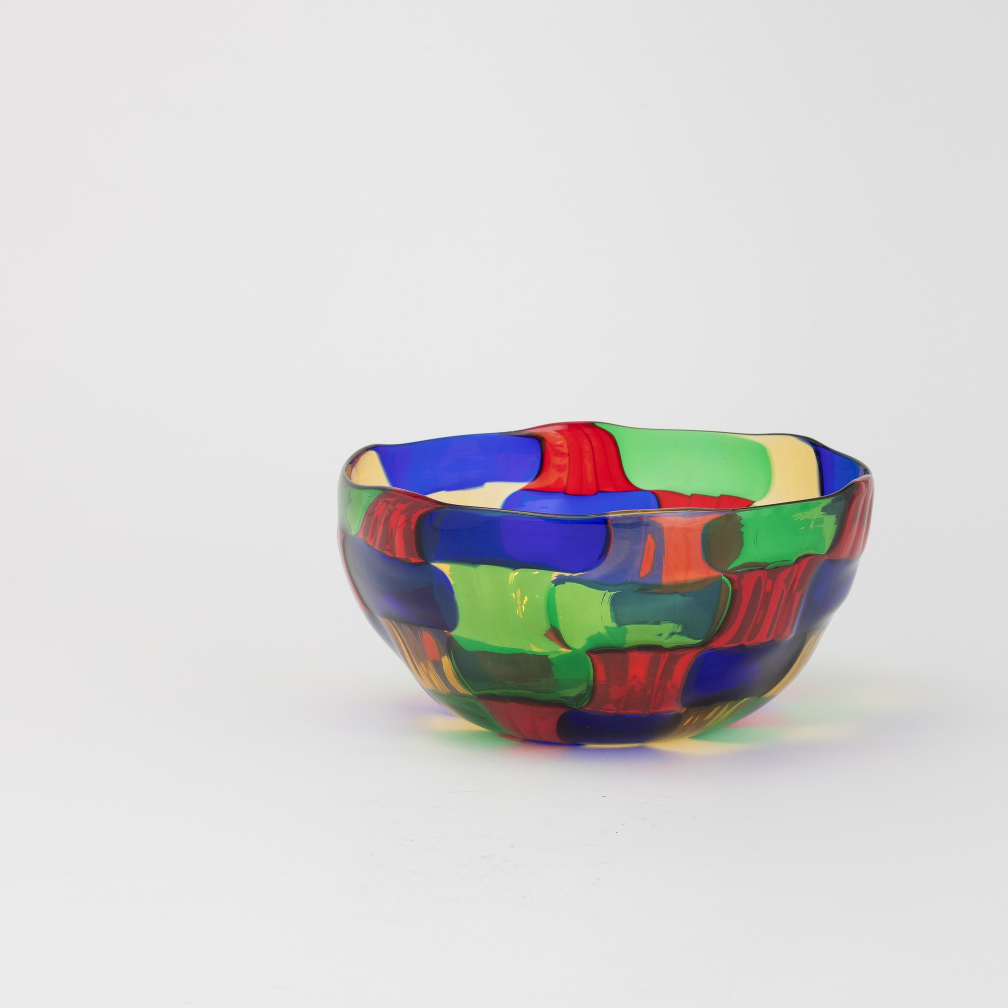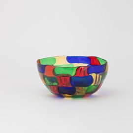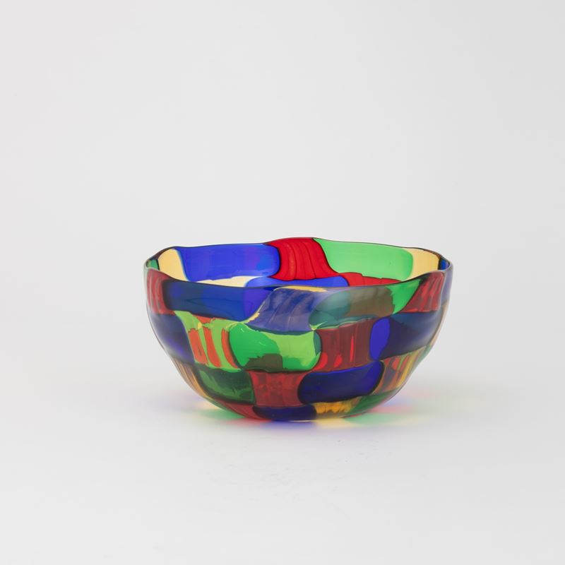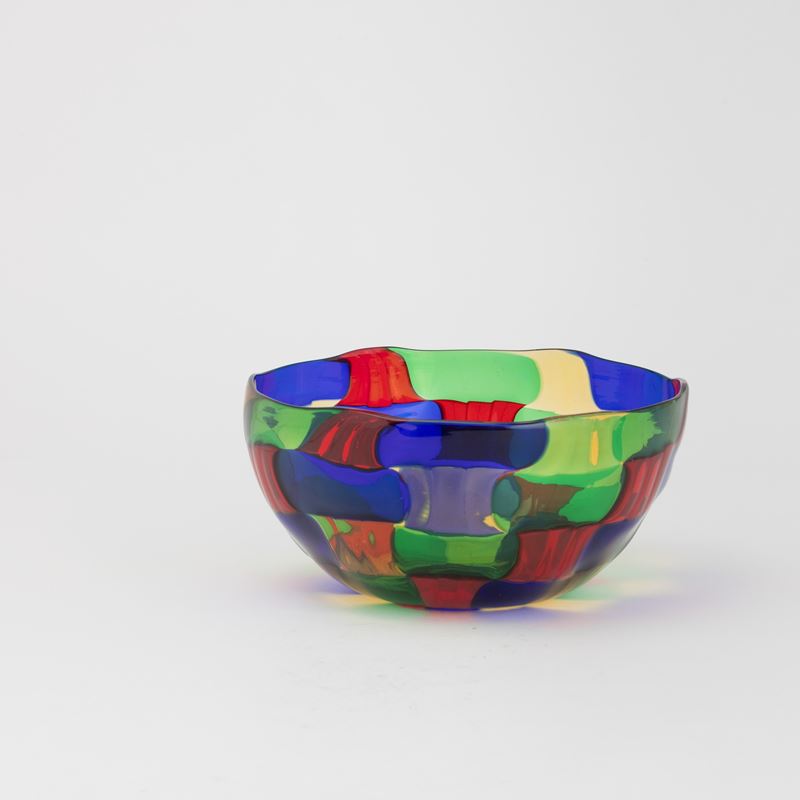 Blown glass bowl with polychrome tile decoration.