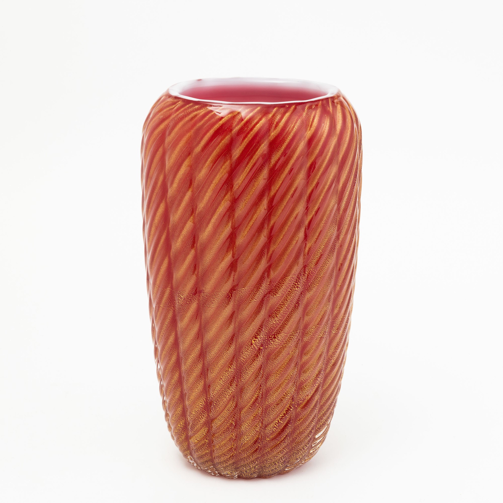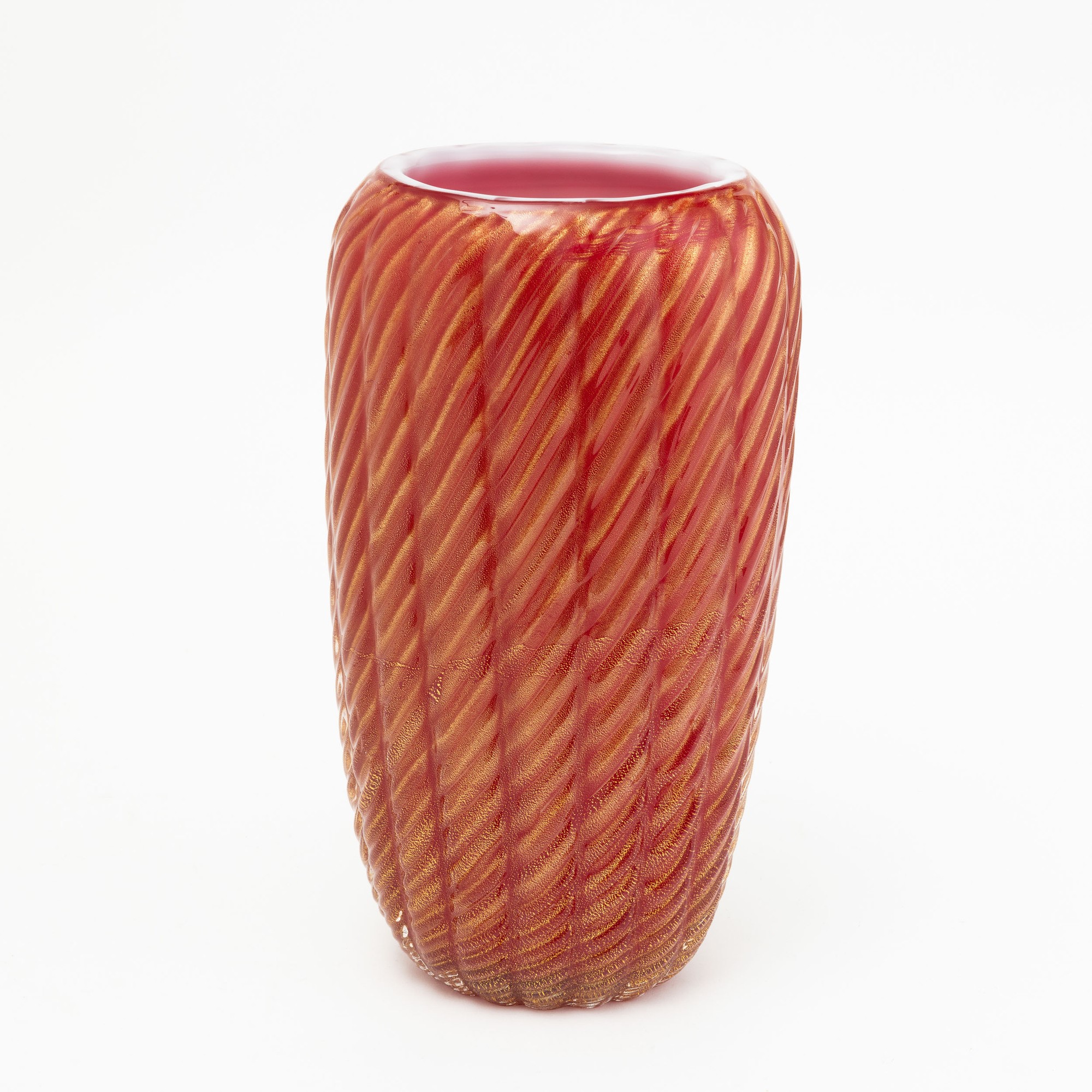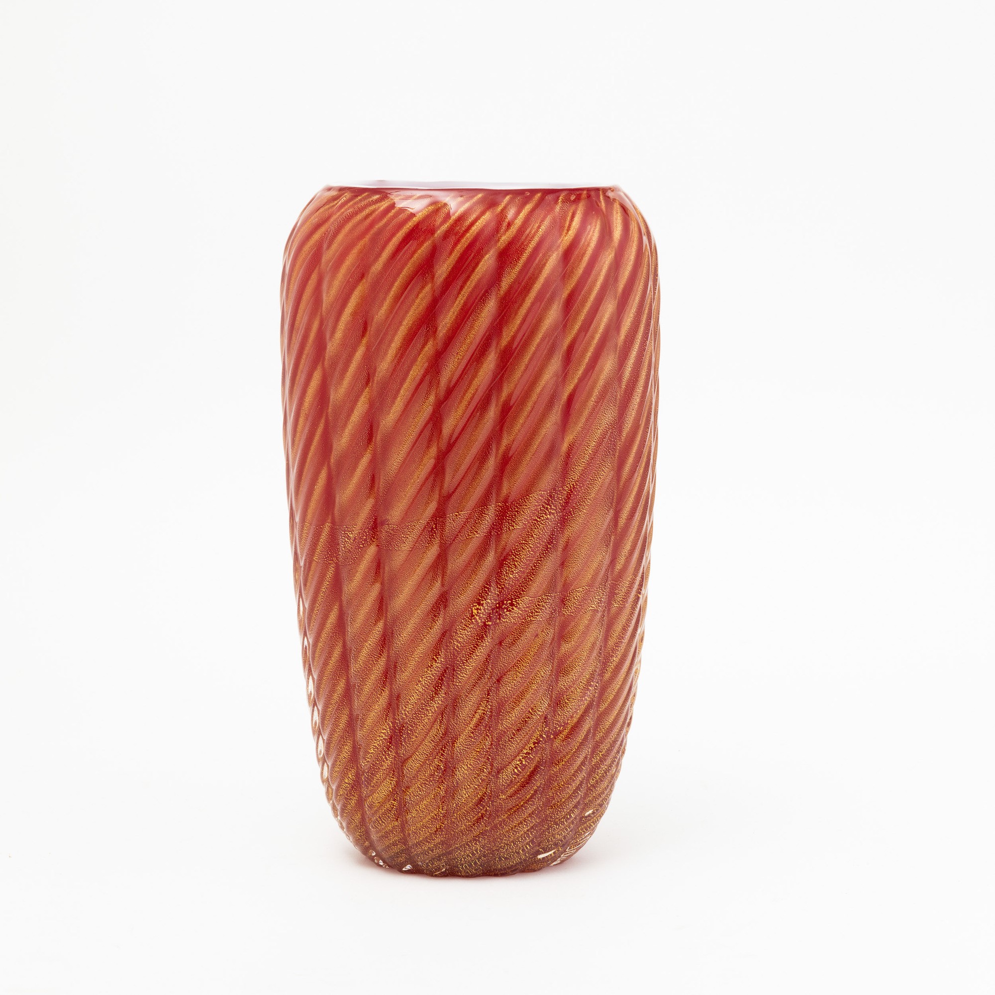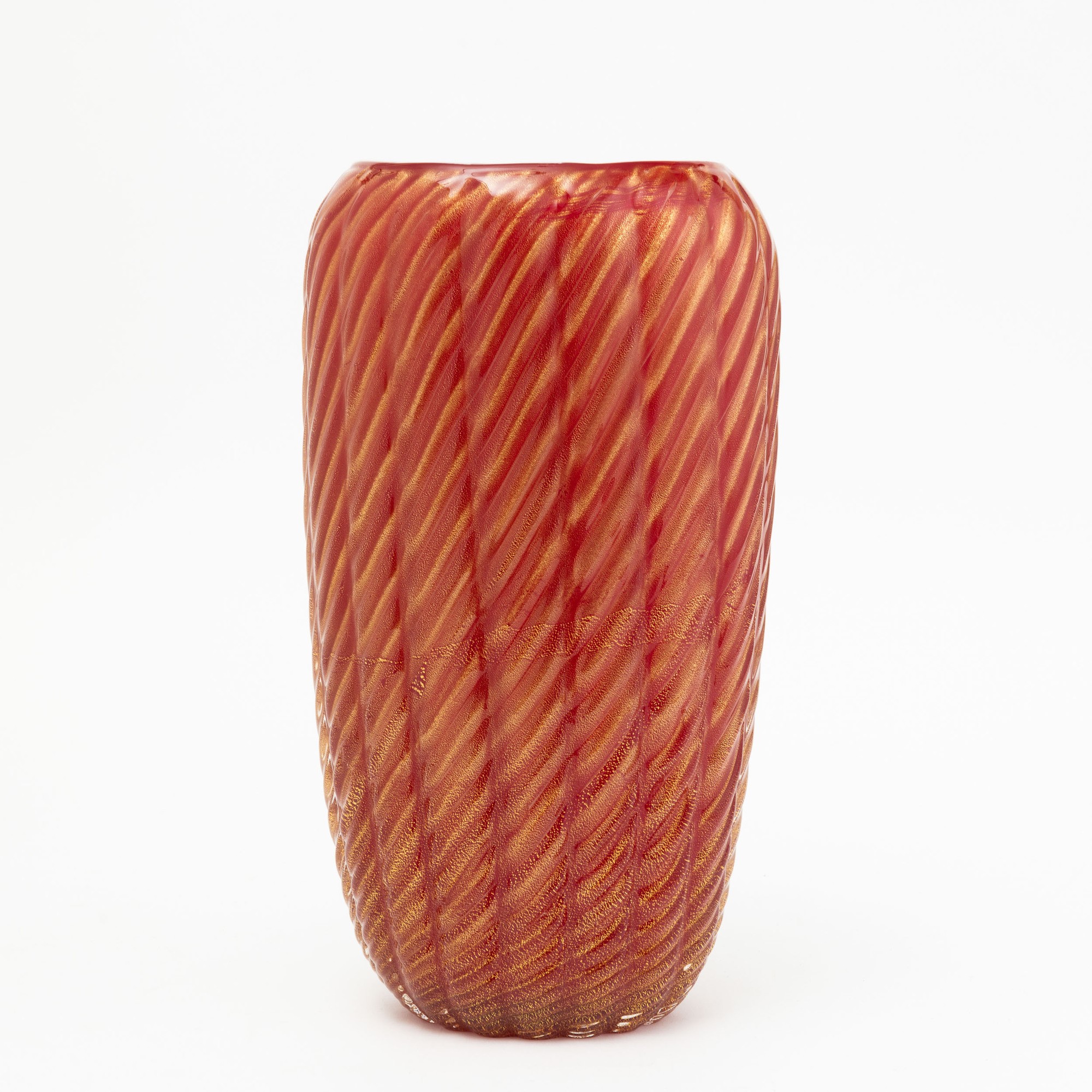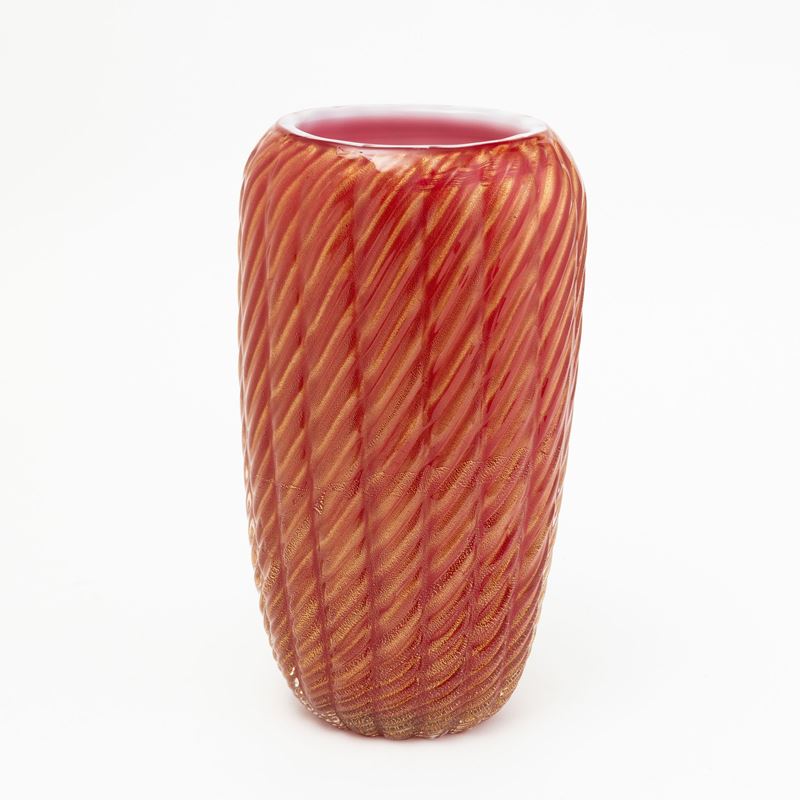 A sommerso glass vase with a gold leaf decor. Engraved signature Toso Murano on the base