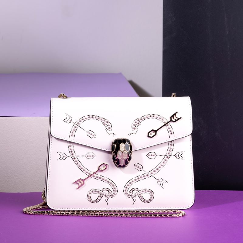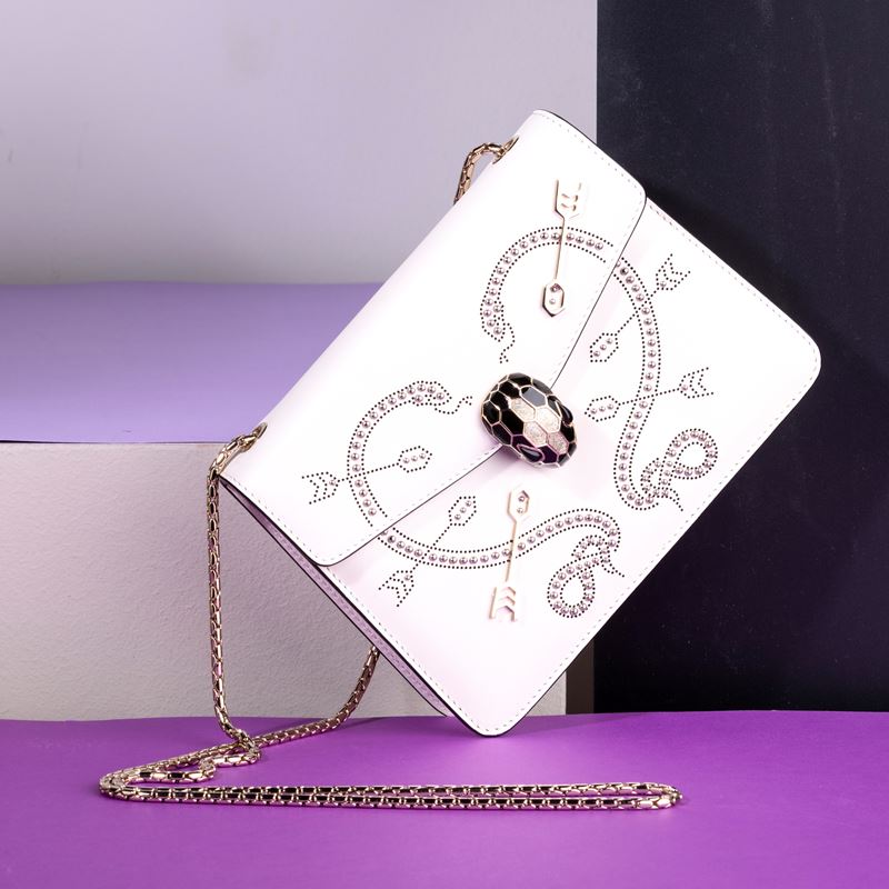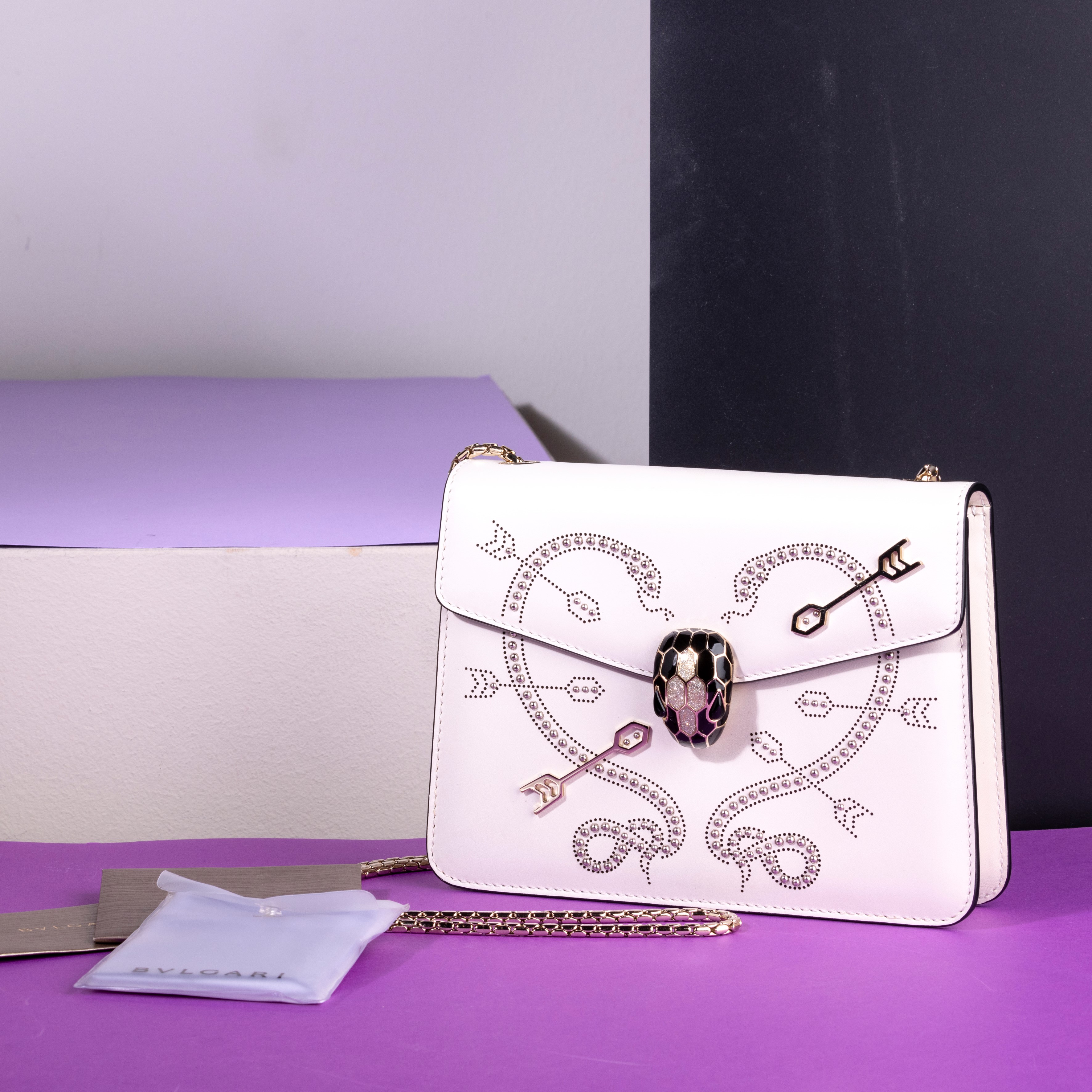 Bulgari Collezione “Serpenti” in pelle con decorazioni e borchie, difetti, in buone condizioni, dustbag