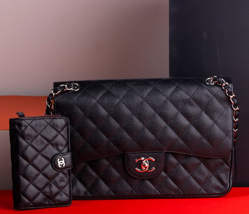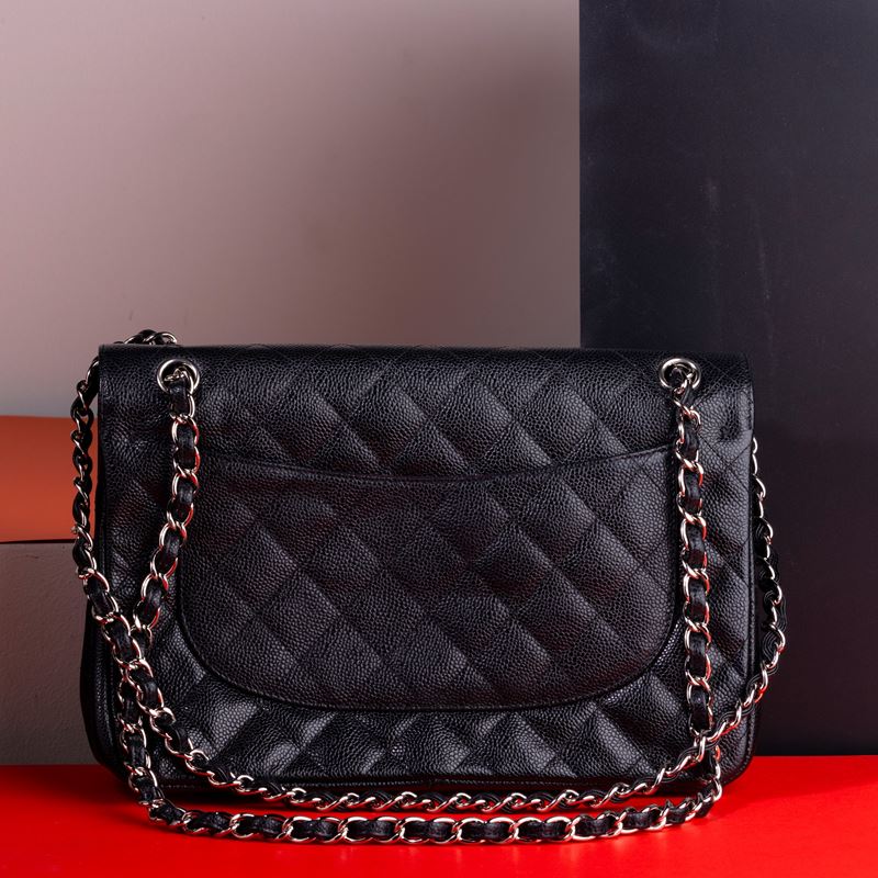 Chanel Jumbo in pelle nera trapuntata e martellata con tracolla a catena scorrevole per indossarla a spalla oppure ad incrocio. [..]