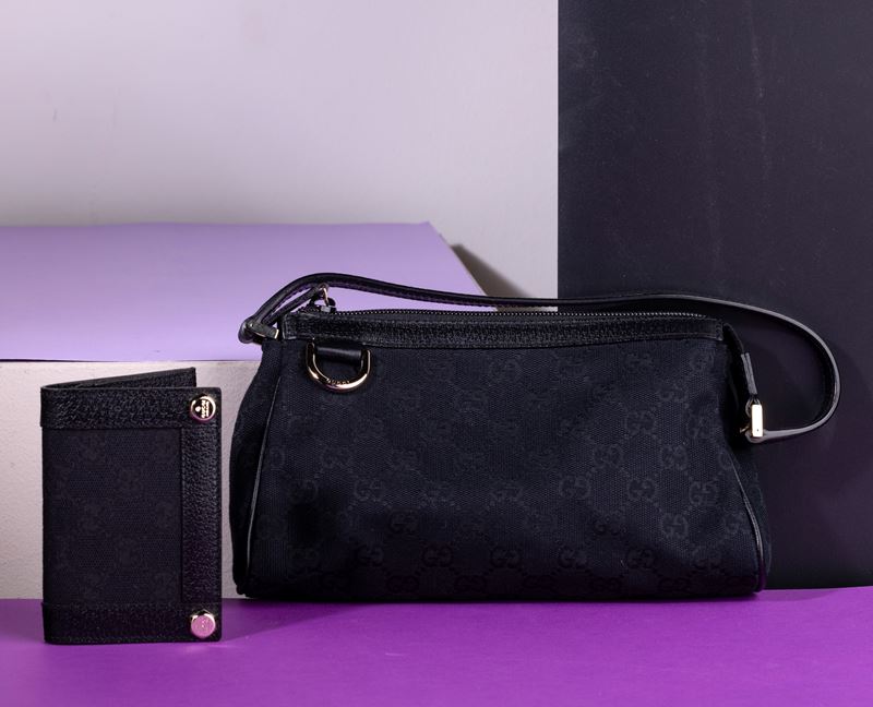 Gucci Borsa Canvas Abbey D-Ring a spalla in tela monogram e pelle con portafogli abbinato, difetti, in buone condizioni, [..]
