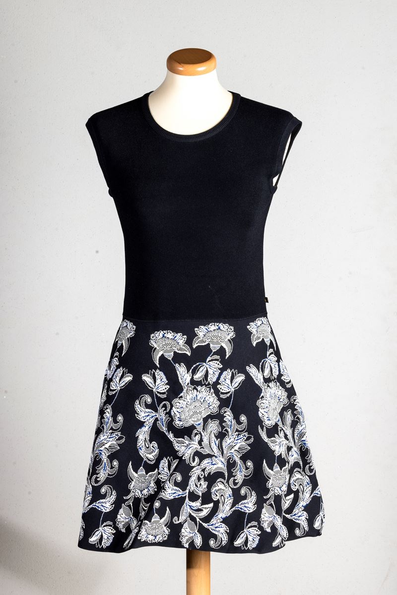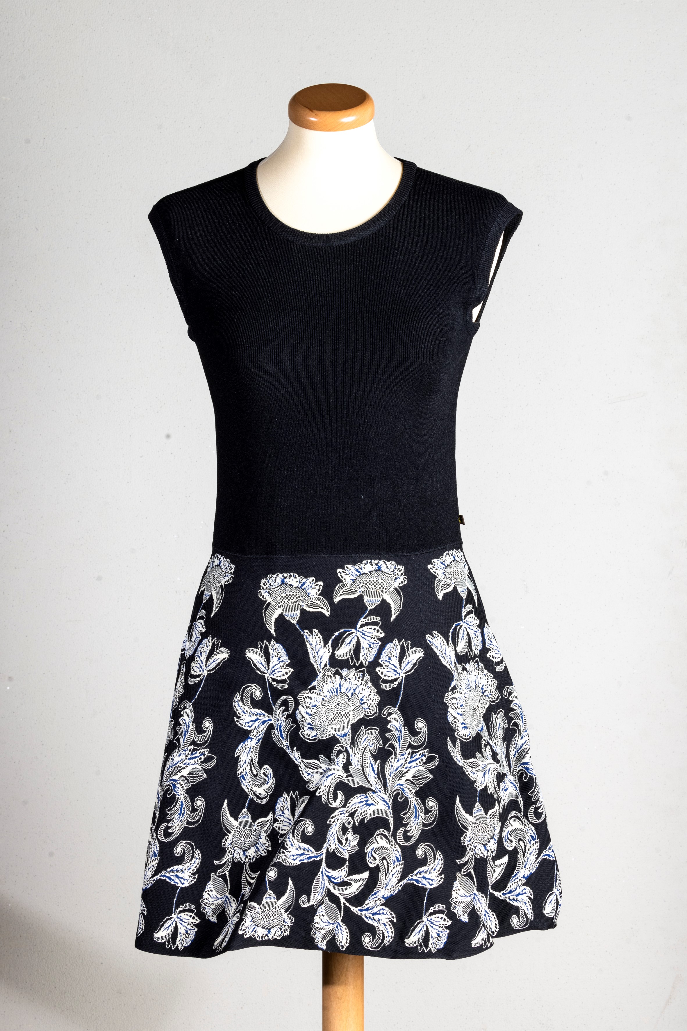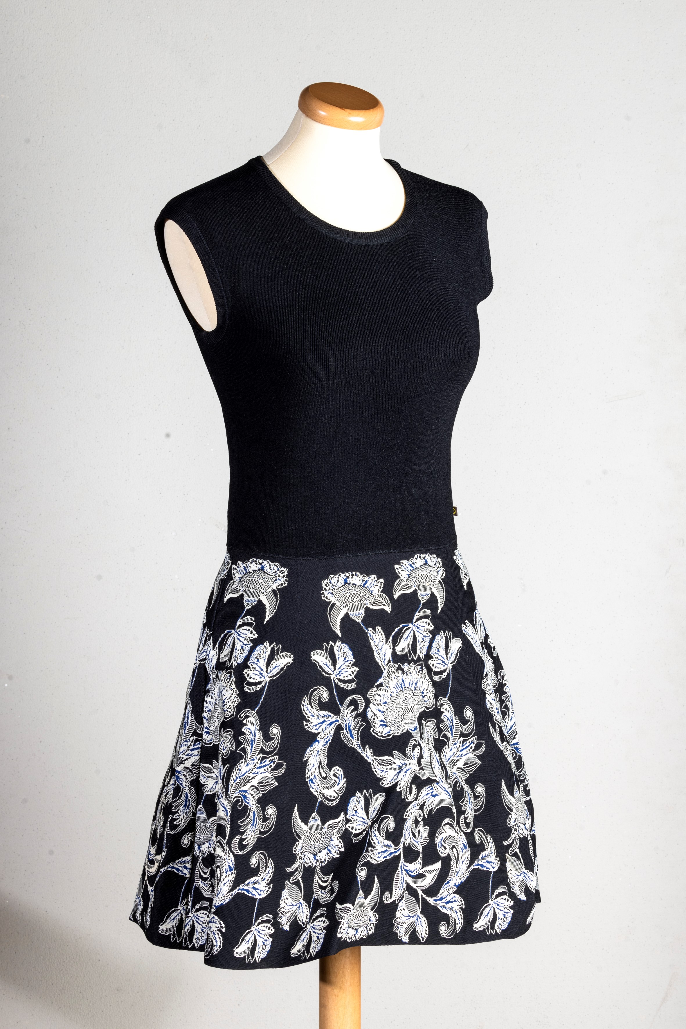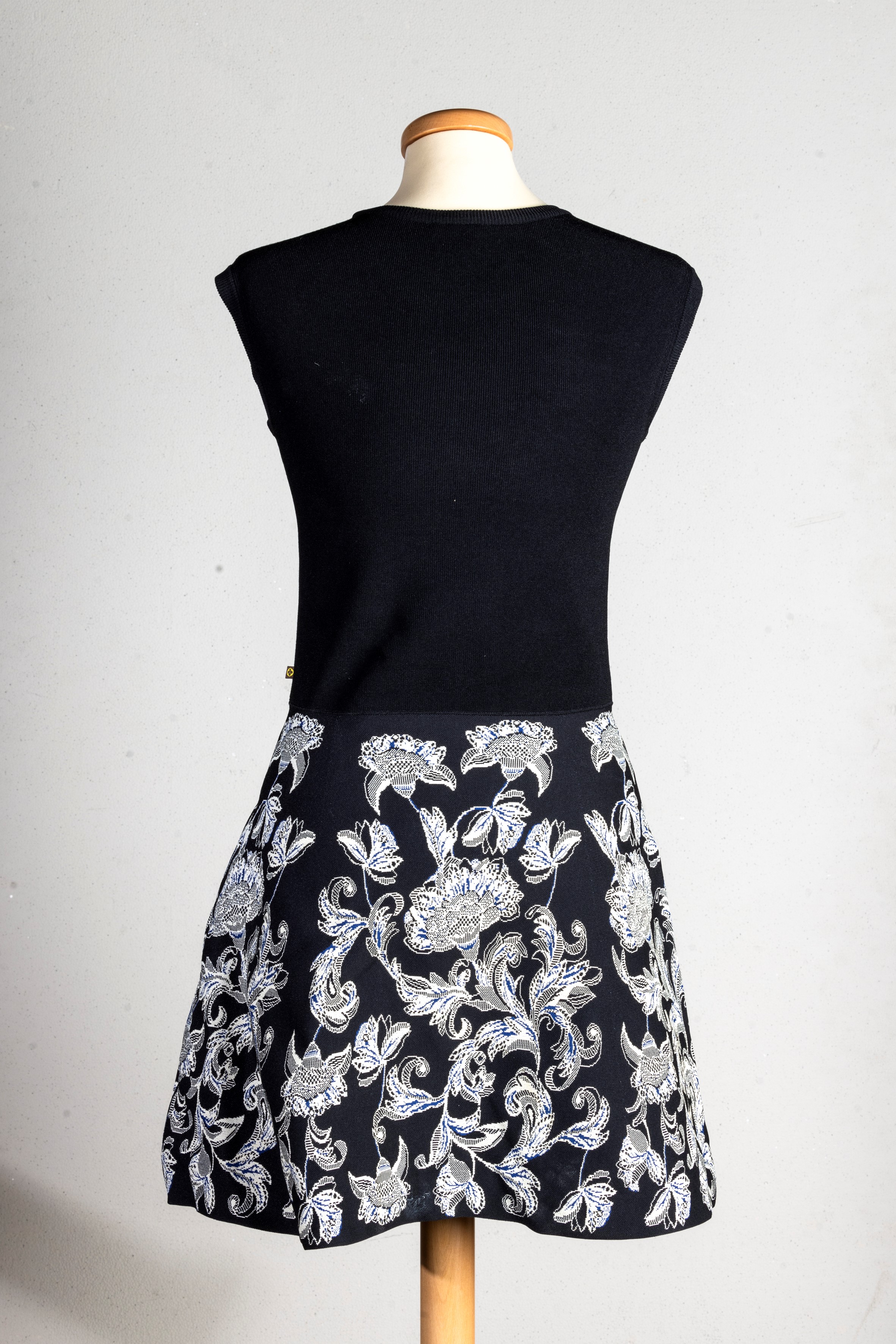 Louis Vuitton Abito nero con disegni floreali bianchi in lana e poliestere- privo di etichetta del codice, TG XS , difetti
