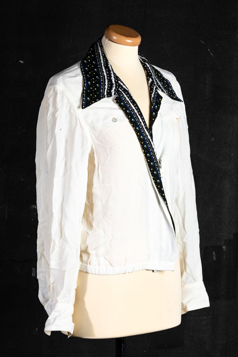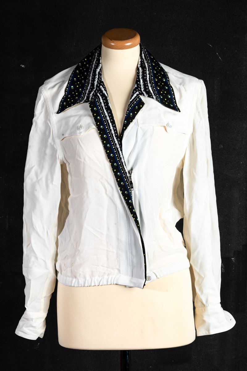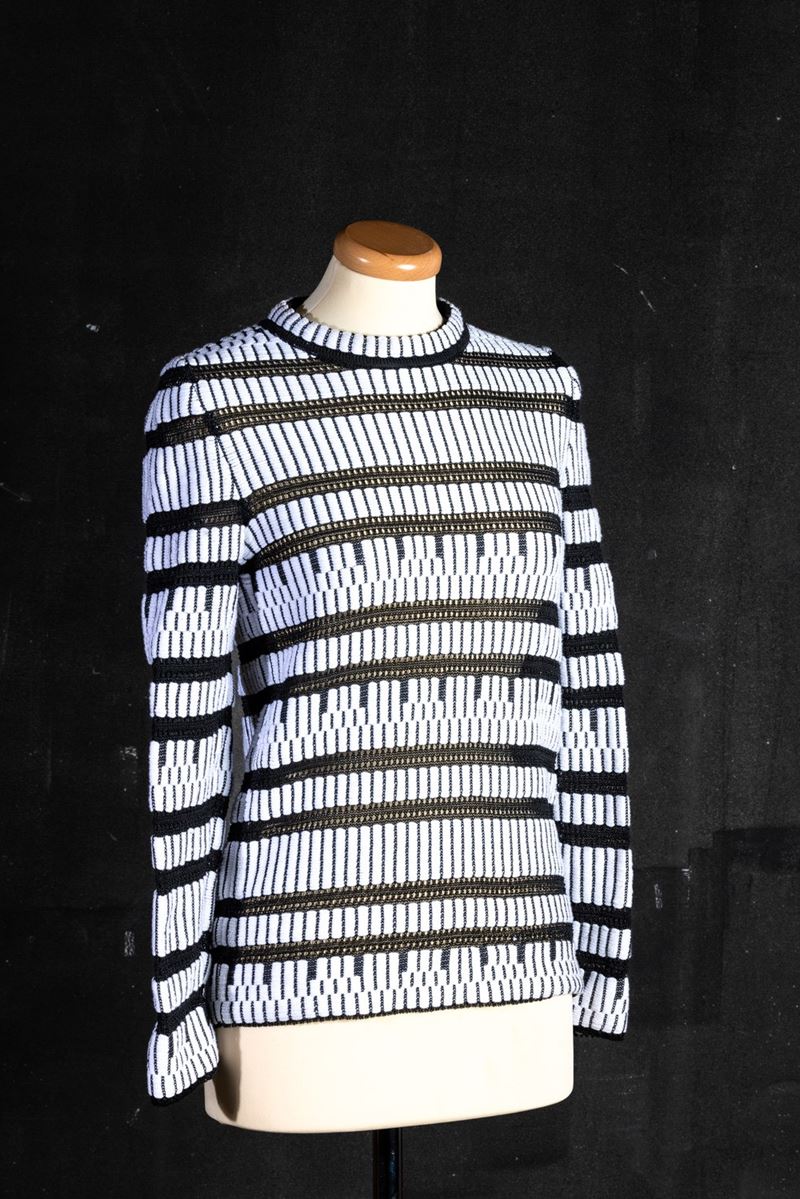 Louis Vuitton Lotto di 3 capi: Maglioncino in cotone codice identificativo n. RW181A FWI FEKL89 TG unica in cotone e poliestere, Camicia/Giacchino in seta, mancanza di etichetta, TG 34, difetti, Maglioncino/Giacchino codice identificativo n. RW181A FWF FEKC96 TG XS in viscosa