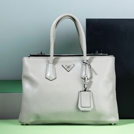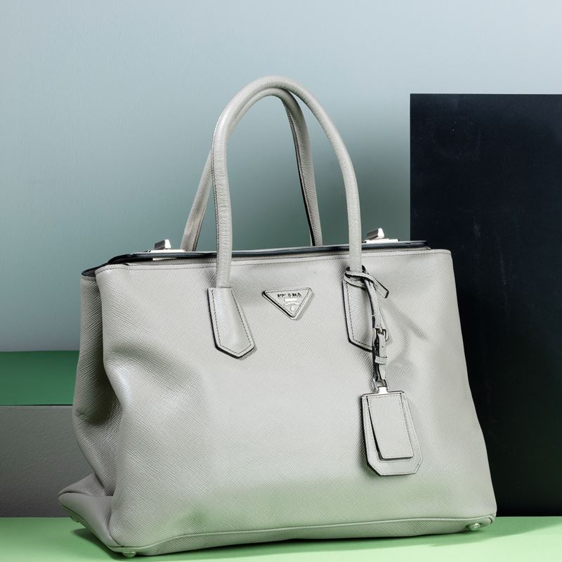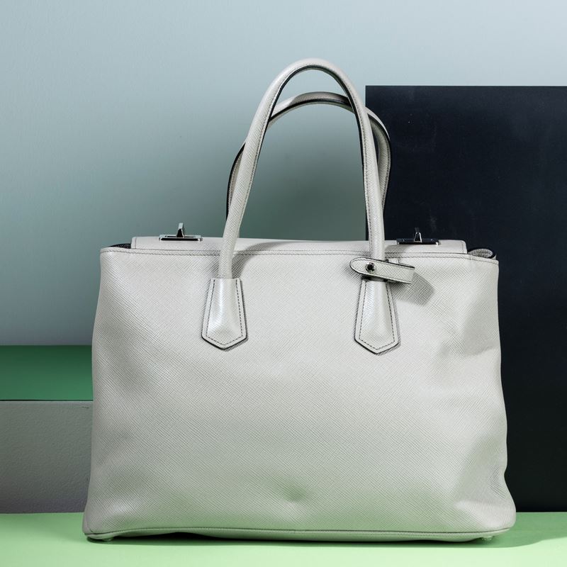 Prada Borsa Saffiano in pelle Tote beige/grigio chiaro, difetti, in buone condizioni, dustbag