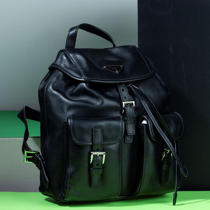 Prada Zaino Double Pocket in pelle, difetti, in ottime condizioni, dustbag