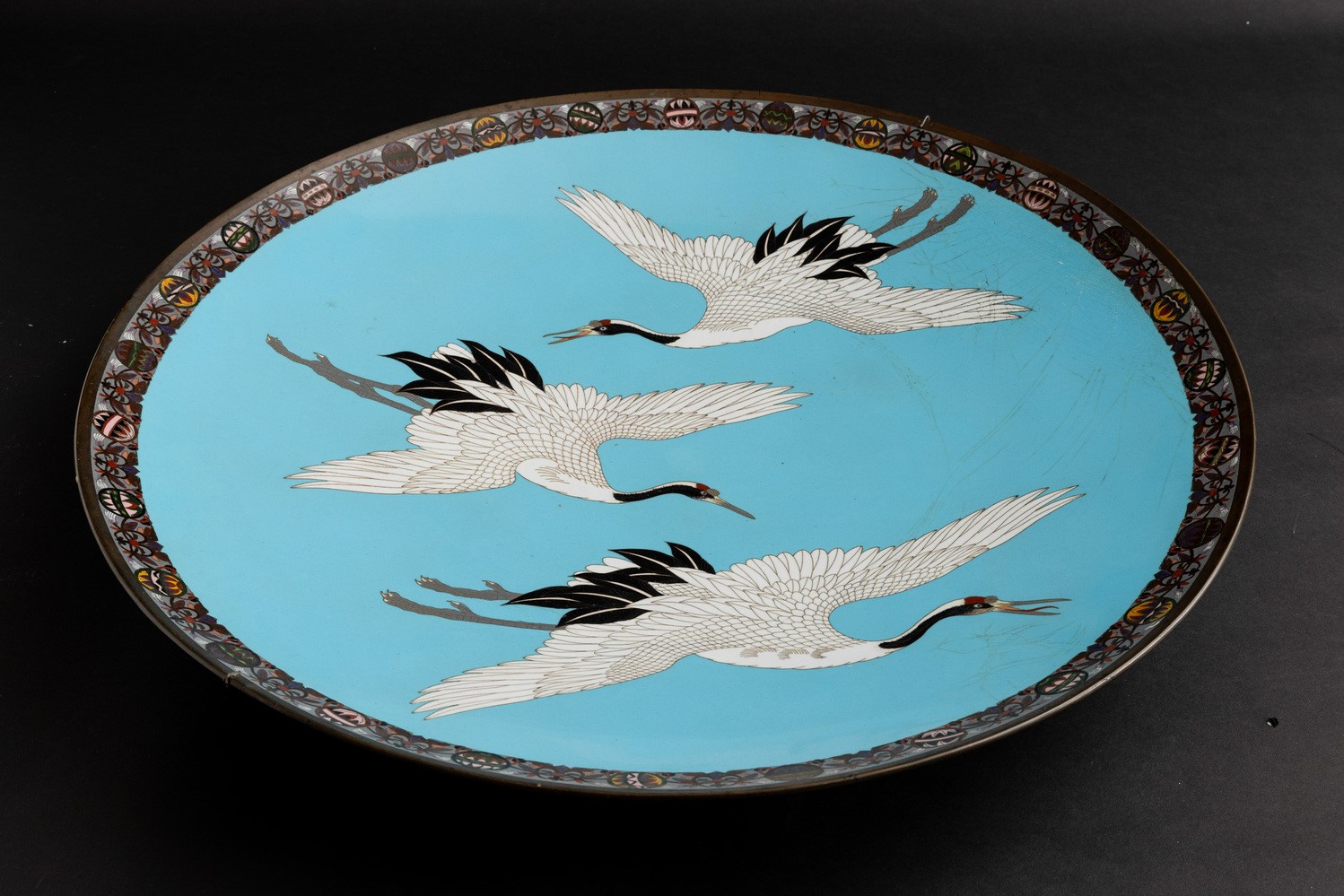 A large cloisonné plate, Japan