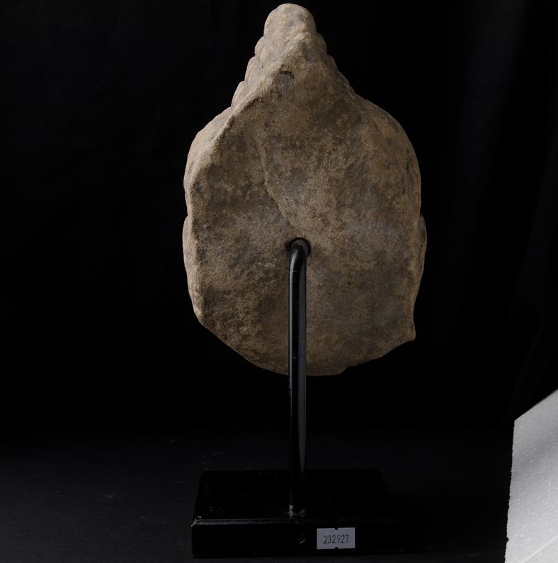 A stone Buddha head, Khmer, 1200s