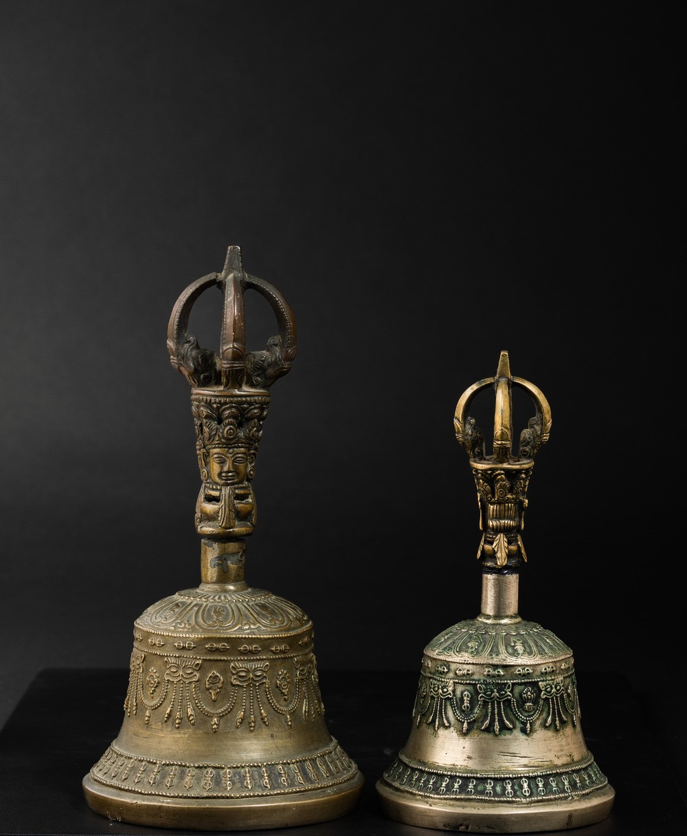 Due campane rituali in bronzo, Tibet, XIX secolo