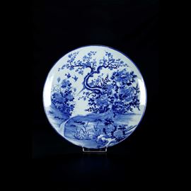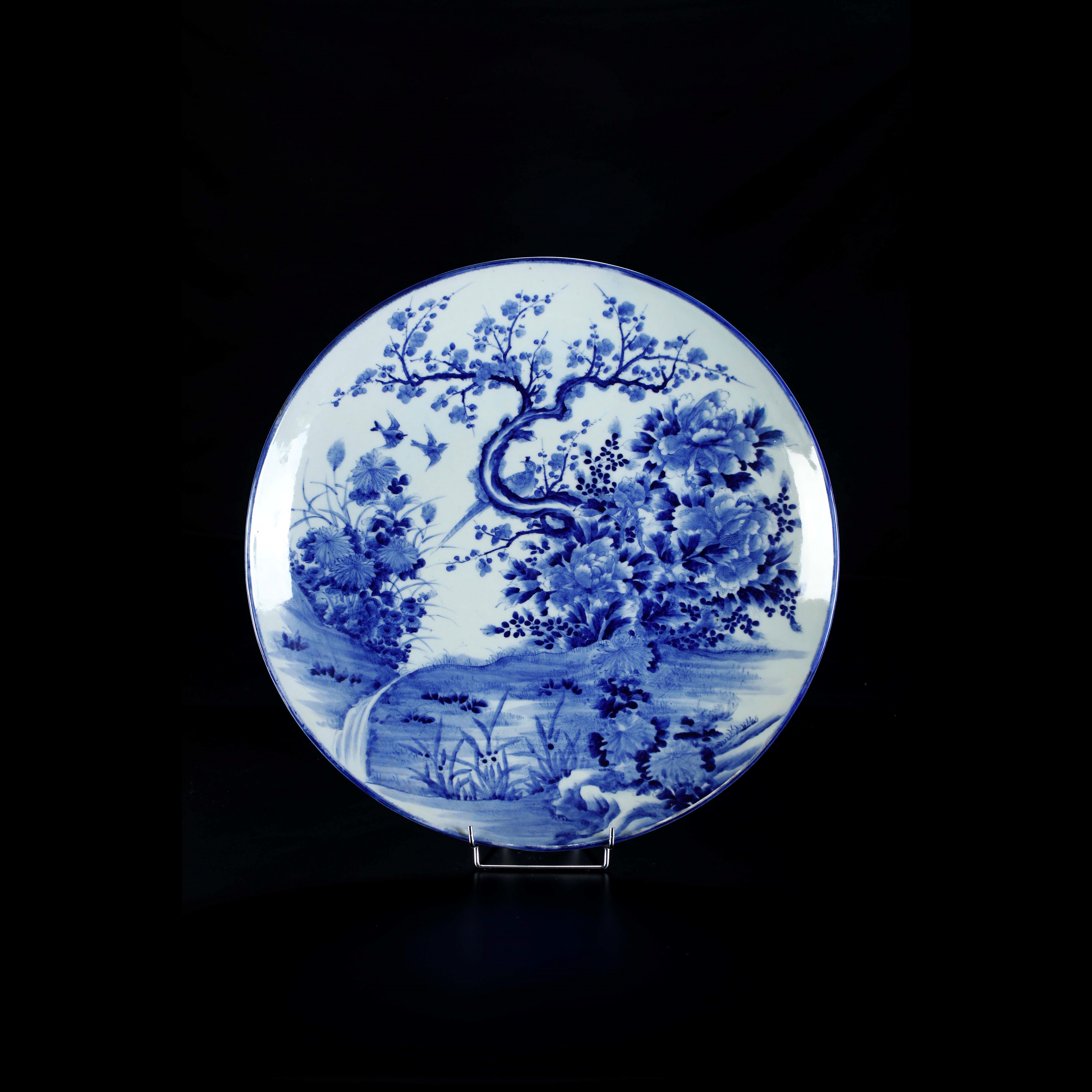 Grande piatto in porcellana bianca e blu con decoro naturalistico, Cina, Dinastia Qing, XIX secolo