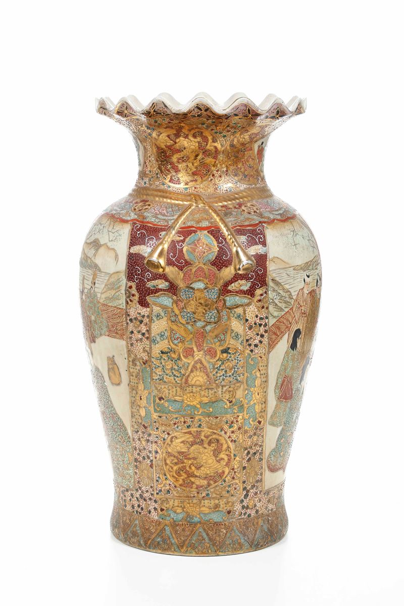Vaso in porcellana Satsuma con decori floreali e figure, Giappone, periodo Meiji (1868-1912)