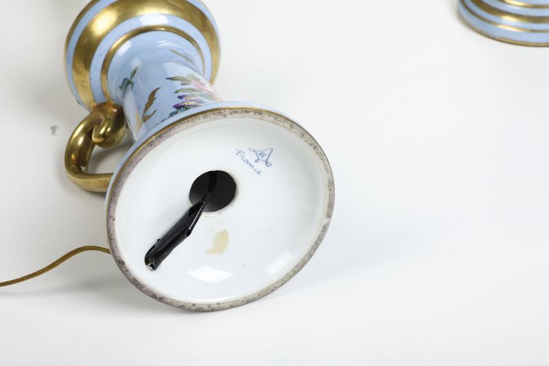 Porcellana e vetro. Marca: pseudo marca di Sèvres "France". Altezza cm 32 circa. Conservazione: ottima.