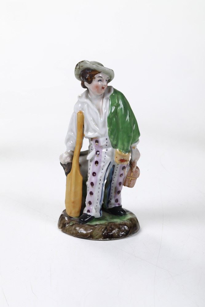 Al lotto si aggiunge la figurina di barcaiolo. Altezza cm 12,2; ottimo stato.