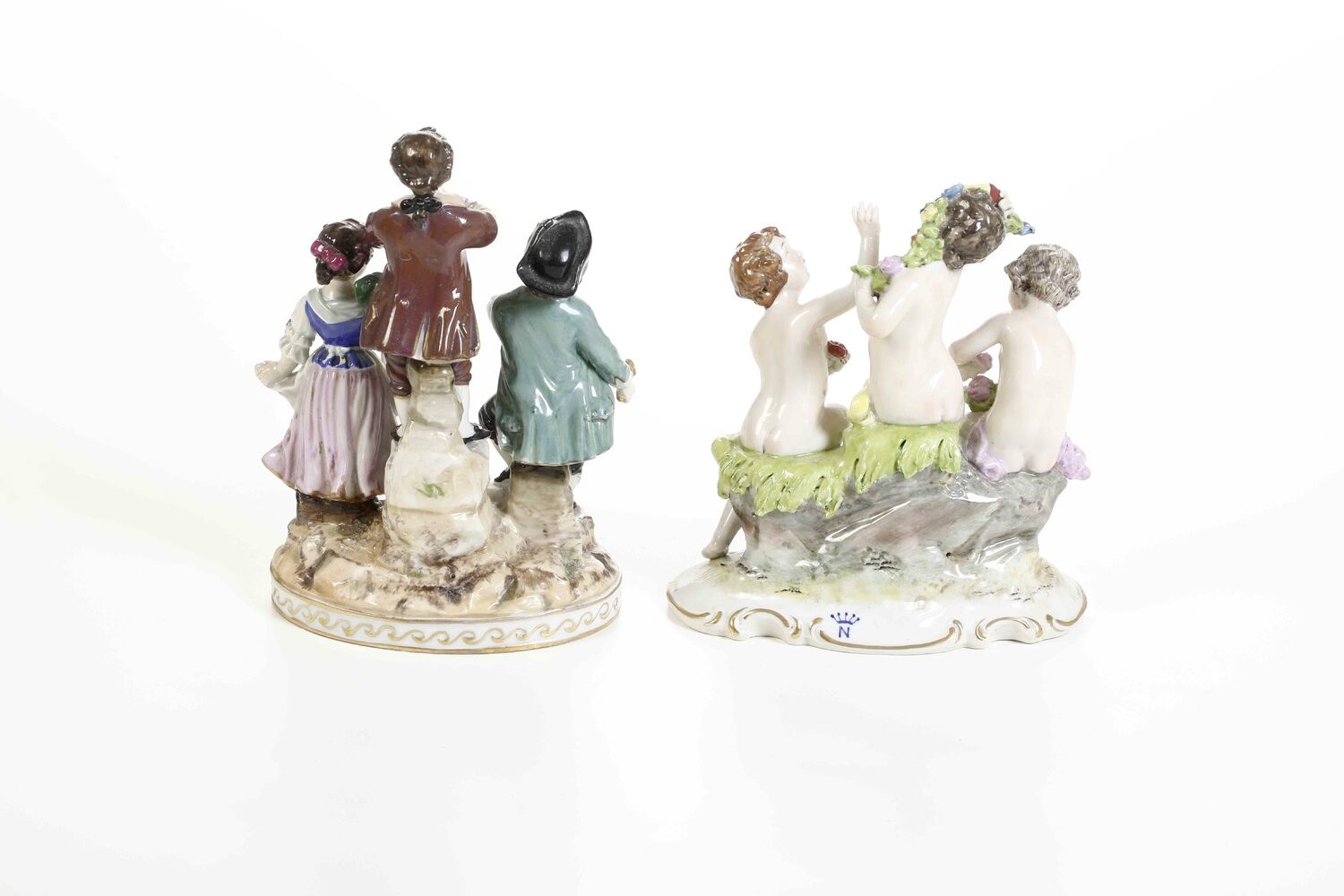 Porcellana policroma e dorata. Marca: "N" con corona e pseudo marca di Vienna con scudo. Altezza massima cm 17,3. Conservazione: ottima
