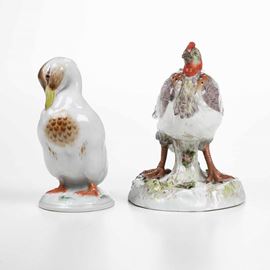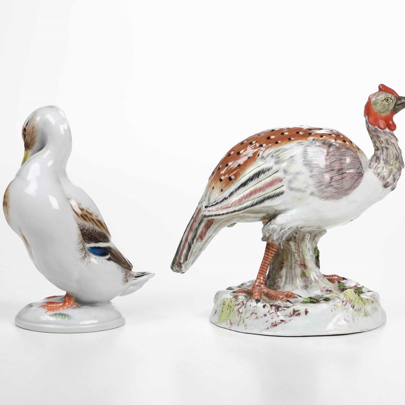 Al lotto si aggiunge la figurina di un altro volatile, probabilmente di manifattura tedesca (altezza cm 15; becco restaurato).