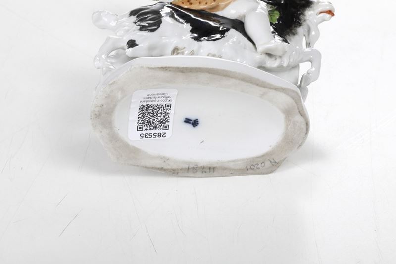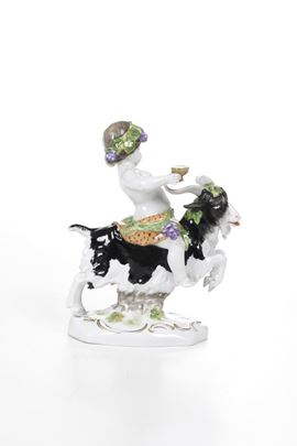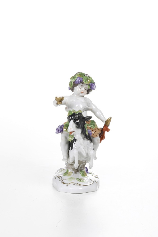Figurina di Giovane Bacco su caprone. Germania, Manifattura della Turingia, XX secolo.