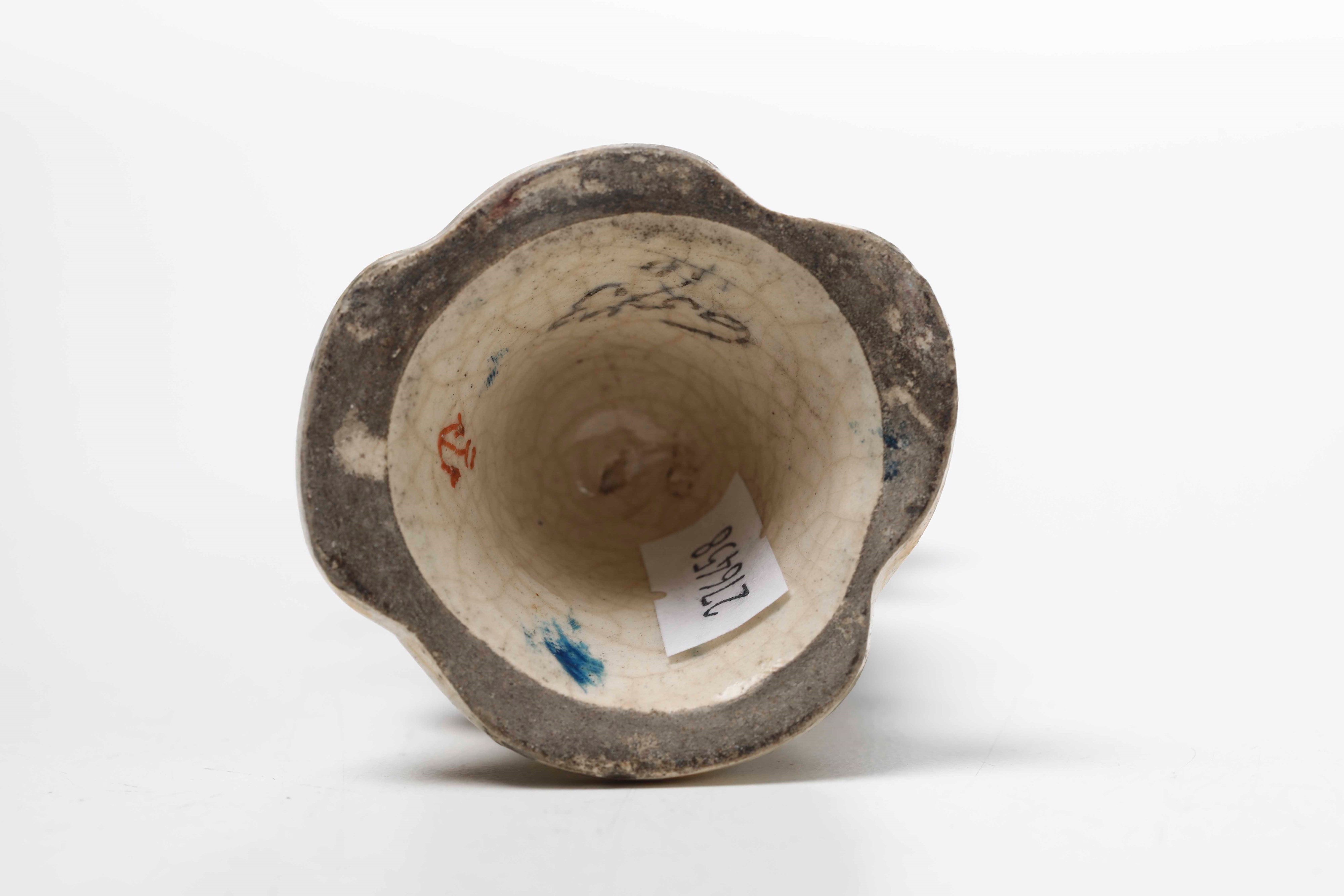 Terraglia policroma. Marca: ancora in rosso. Altezza cm 15,8. Conservazione: restauri.