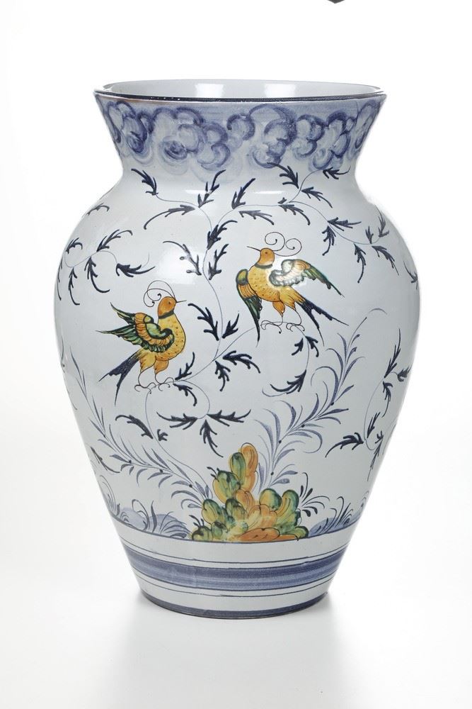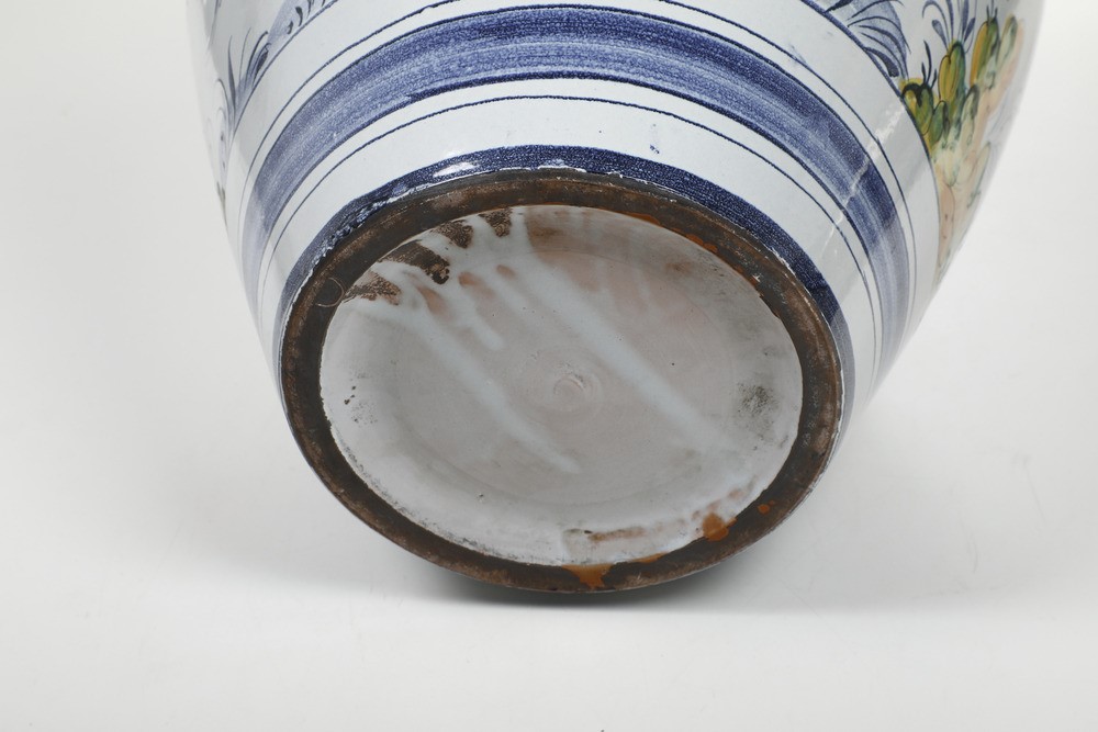 Maiolica policroma. Marca: assente. Altezza cm 52. Conservazione: ottima; qualche insignificante salto di smalto.